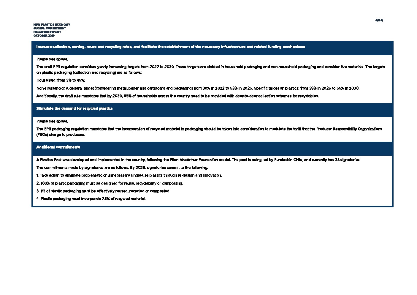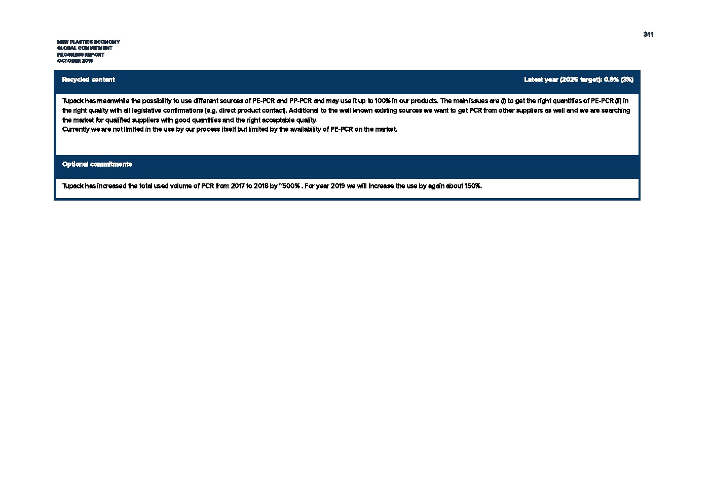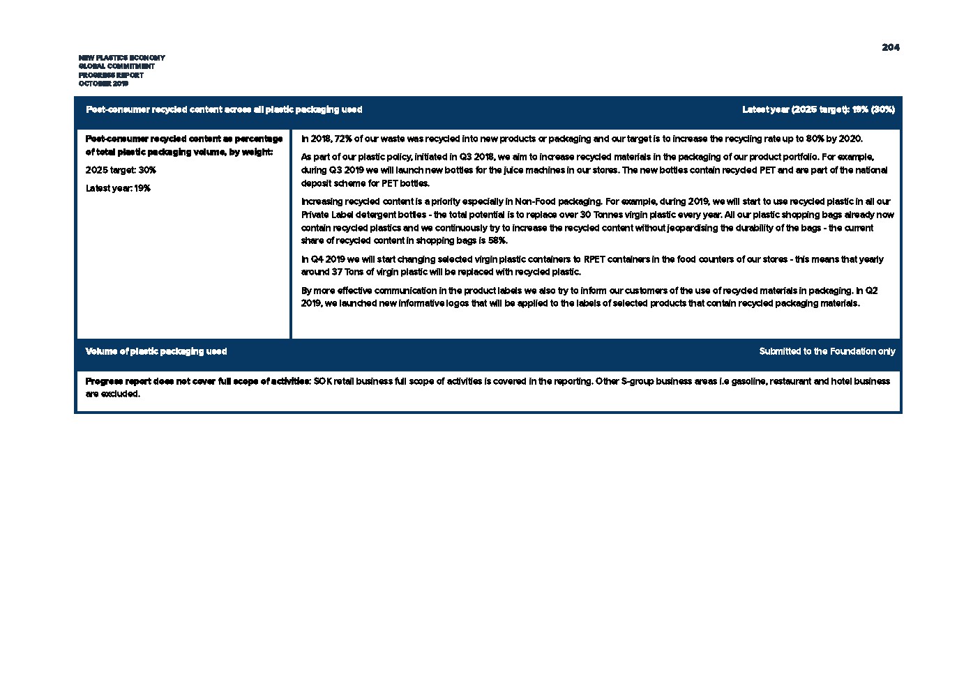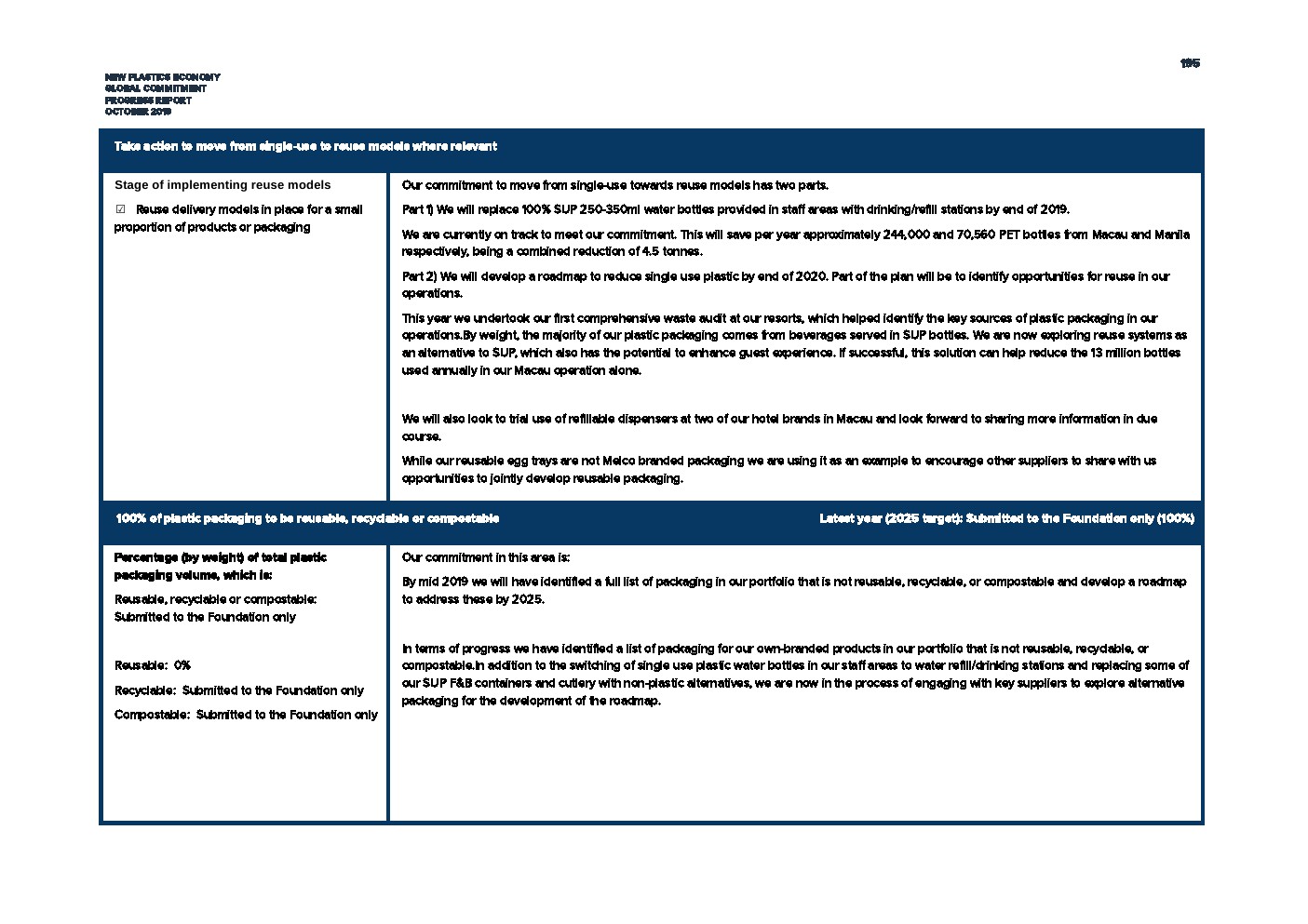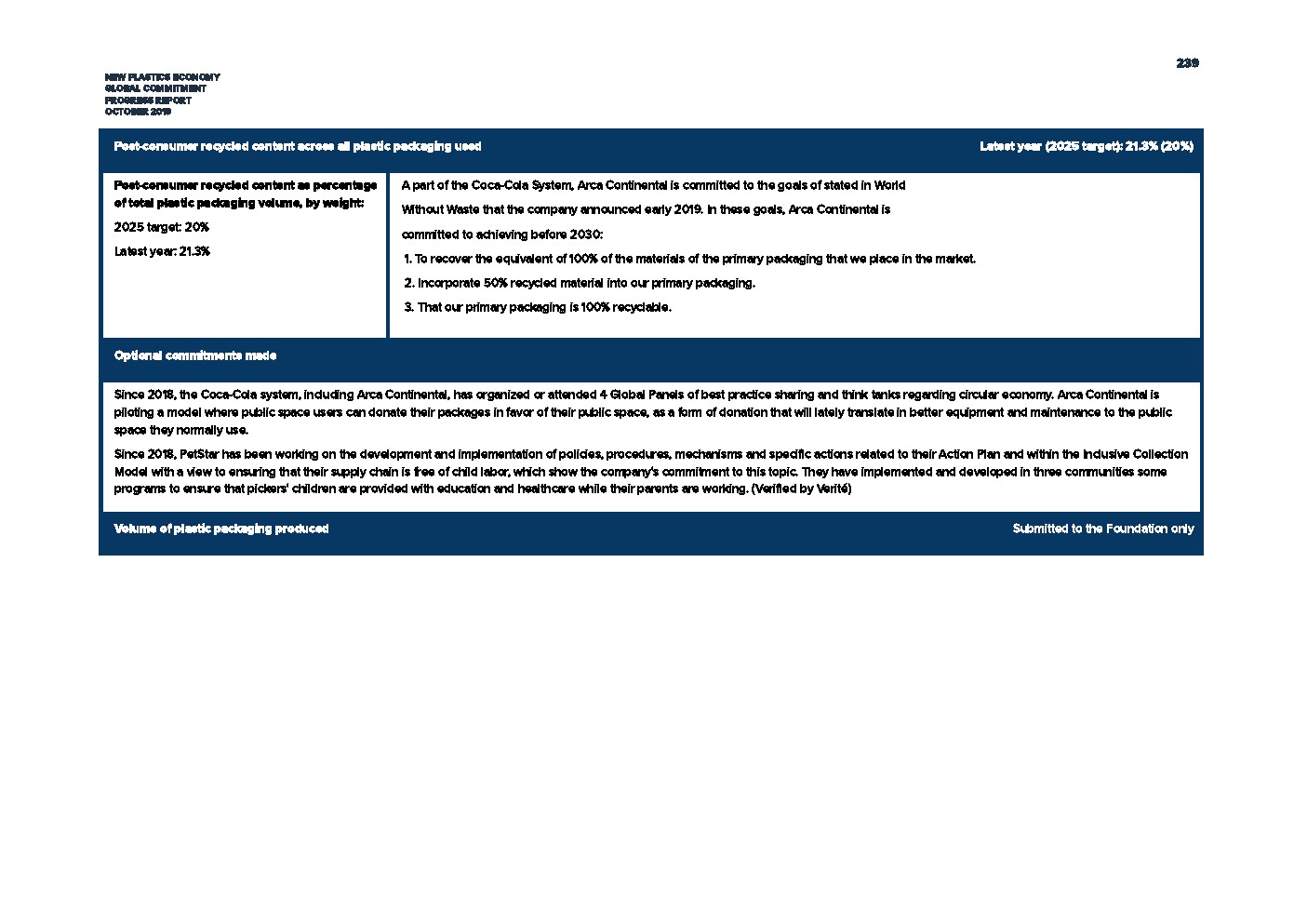 签署承诺的回收公司承诺到2025年将废塑料处理量翻两番。政府签约方还与行业和其他利益相关方合作,以实现2025年塑料包装回收率达到70%。