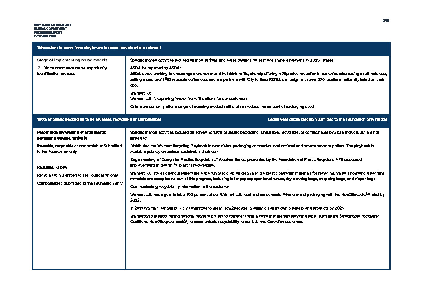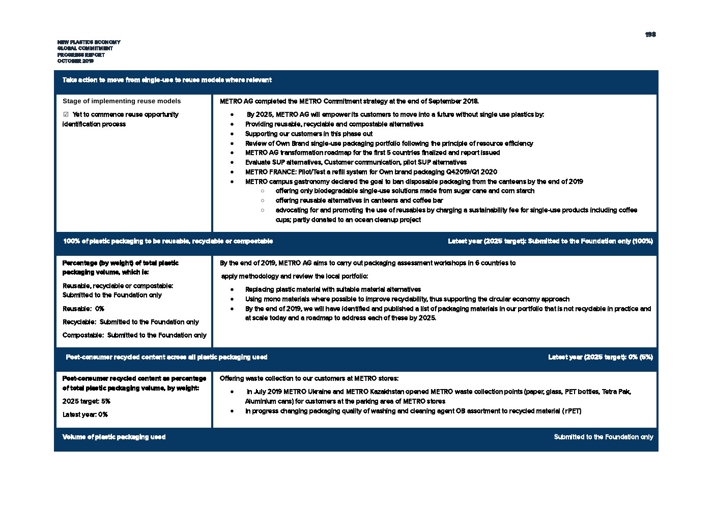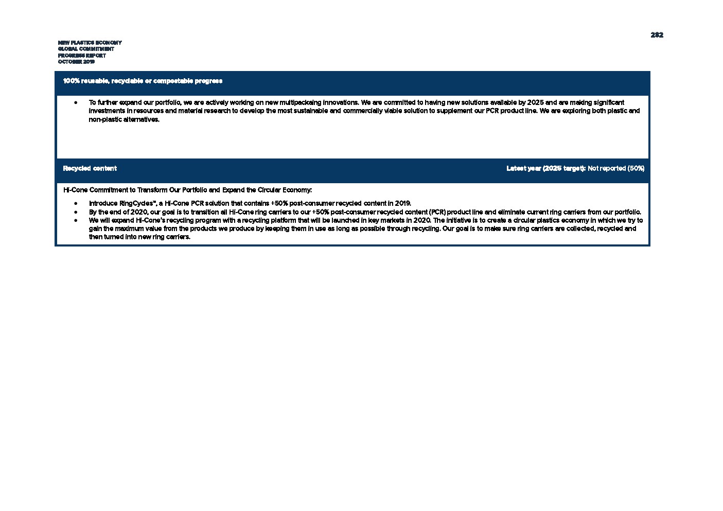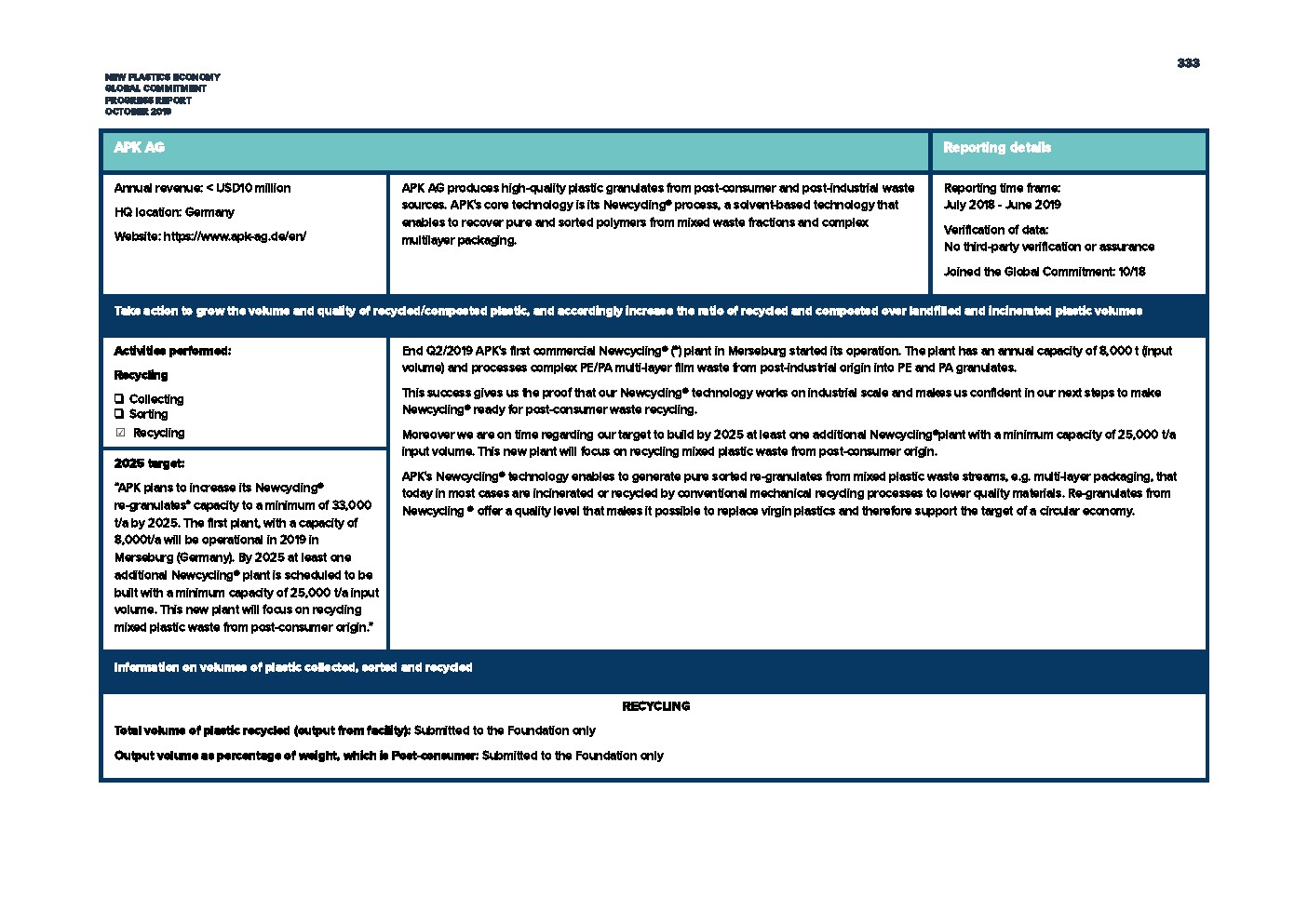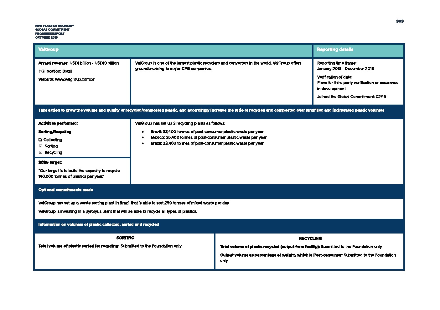 签署承诺的回收公司承诺到2025年将废塑料处理量翻两番。政府签约方还与行业和其他利益相关方合作,以实现2025年塑料包装回收率达到70%。