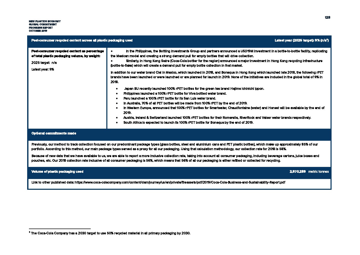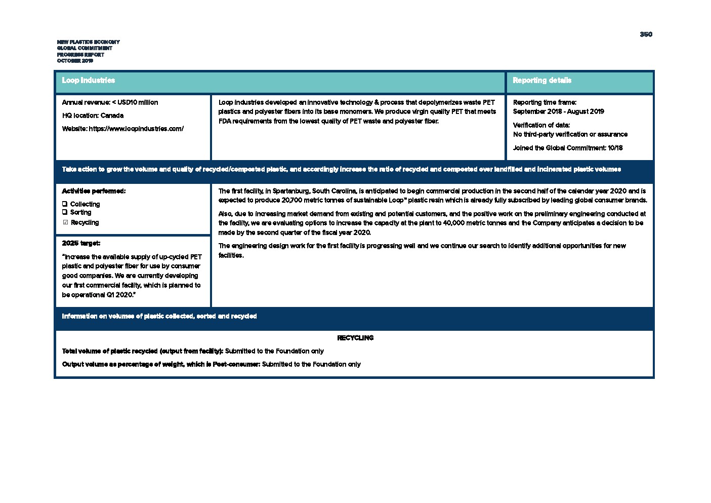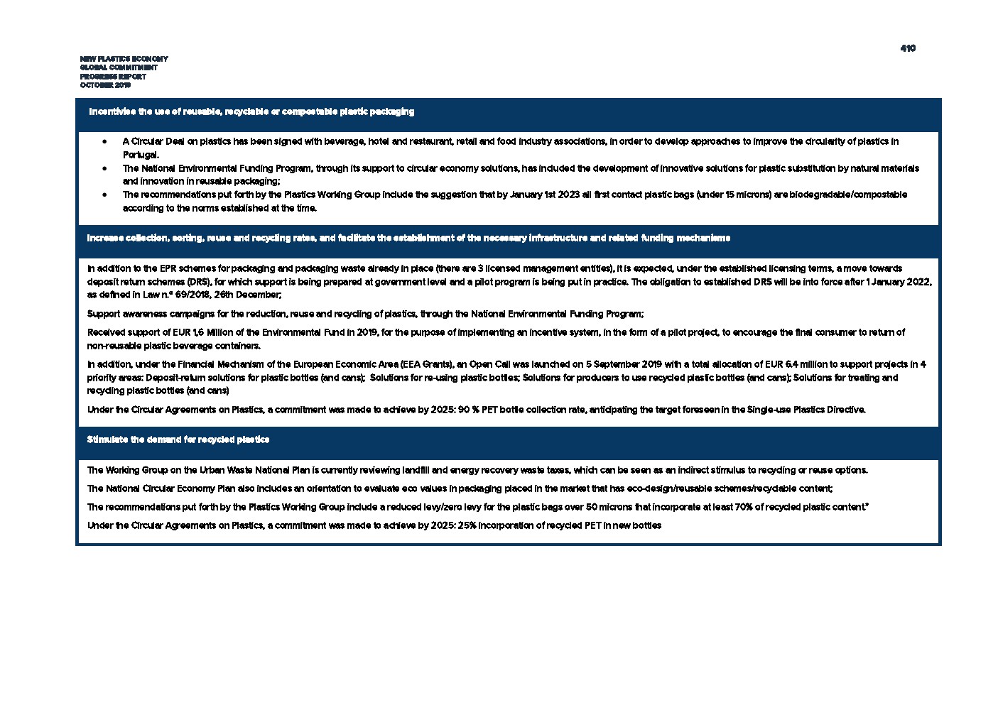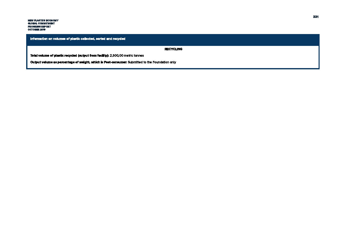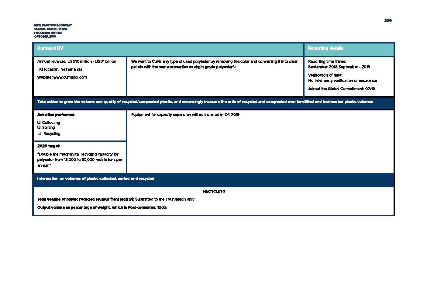 签署承诺的回收公司承诺到2025年将废塑料处理量翻两番。政府签约方还与行业和其他利益相关方合作,以实现2025年塑料包装回收率达到70%。