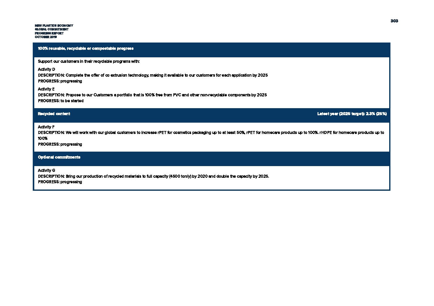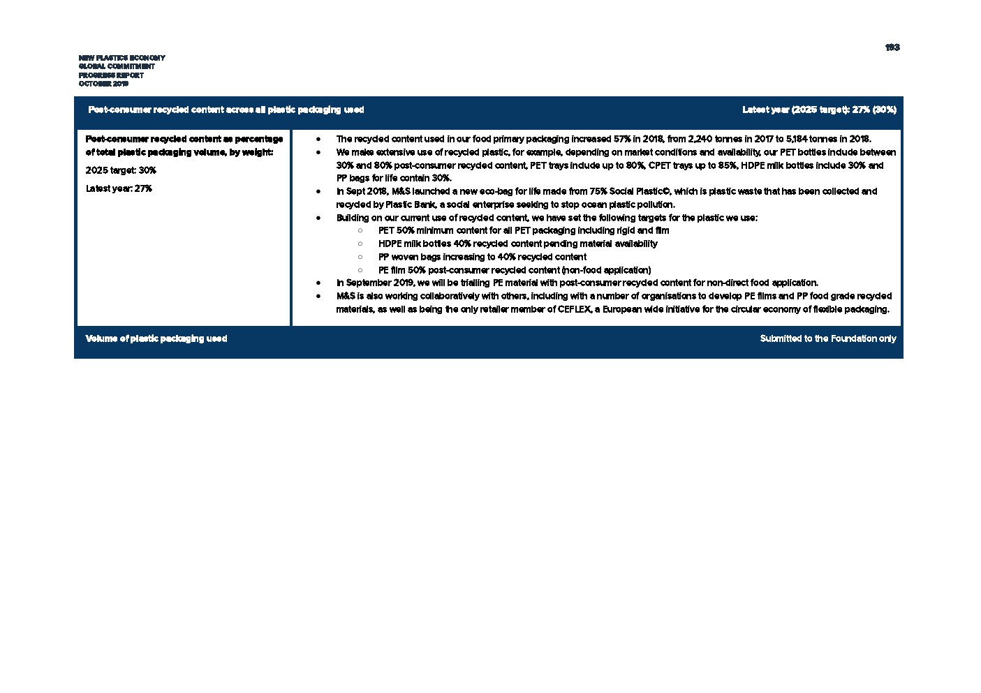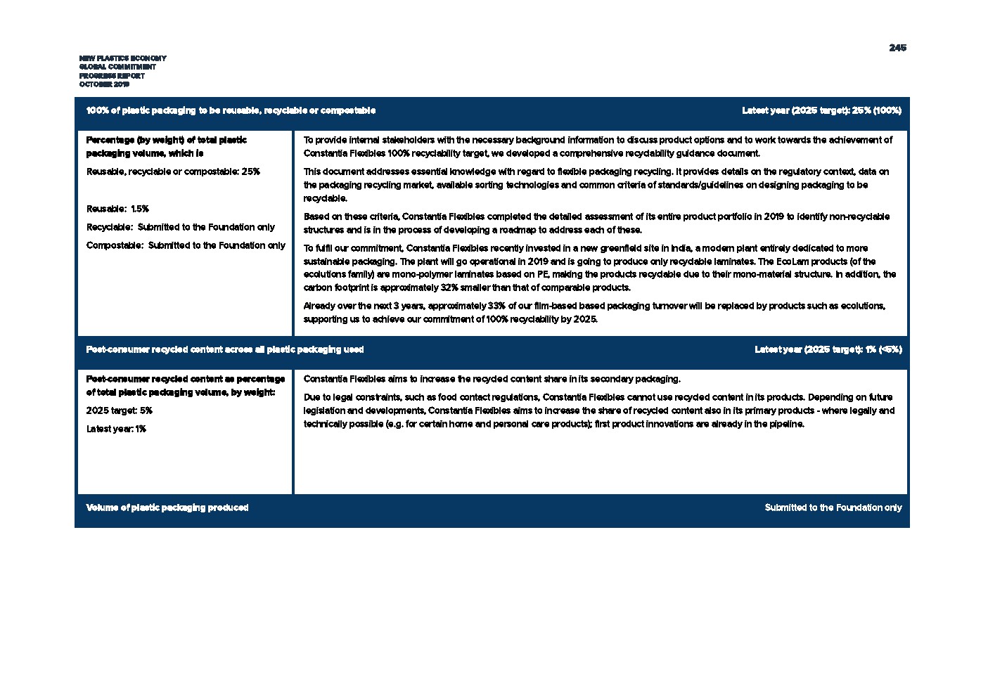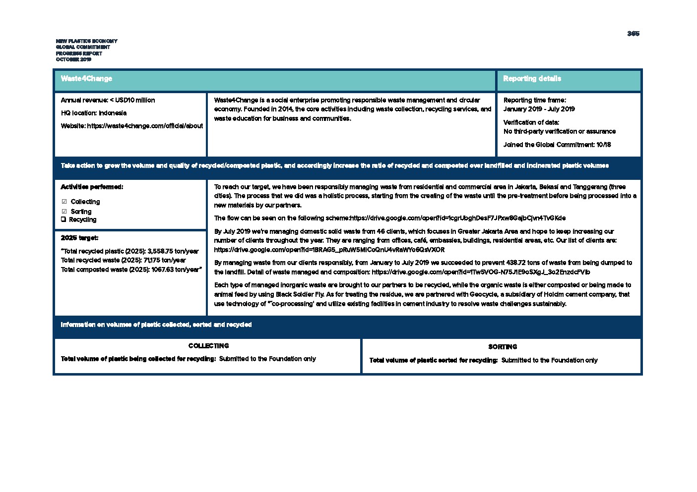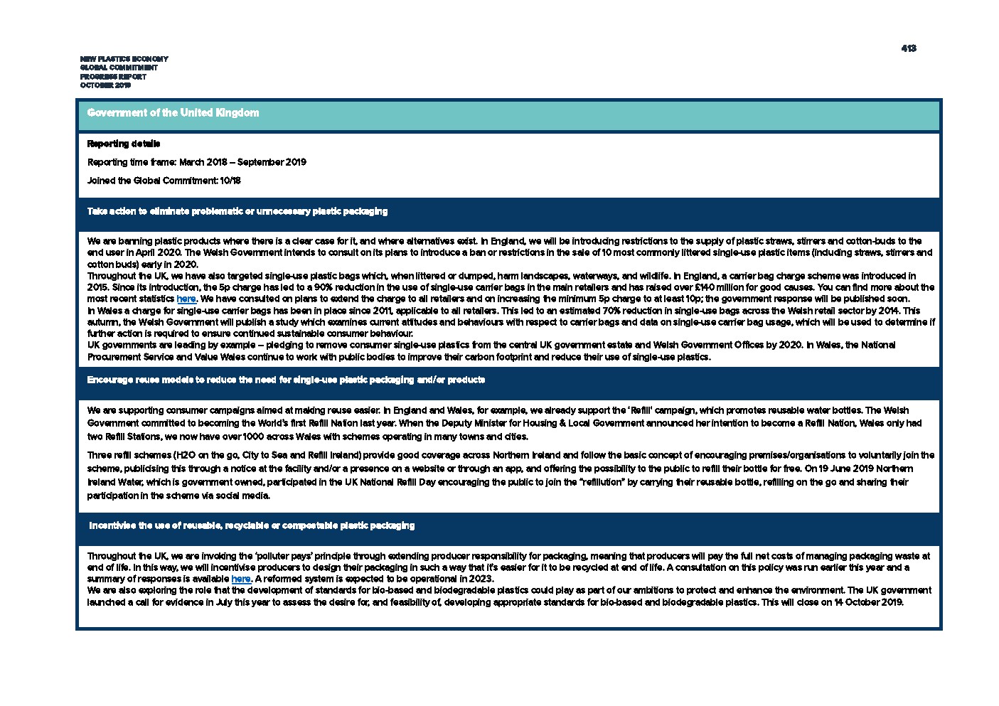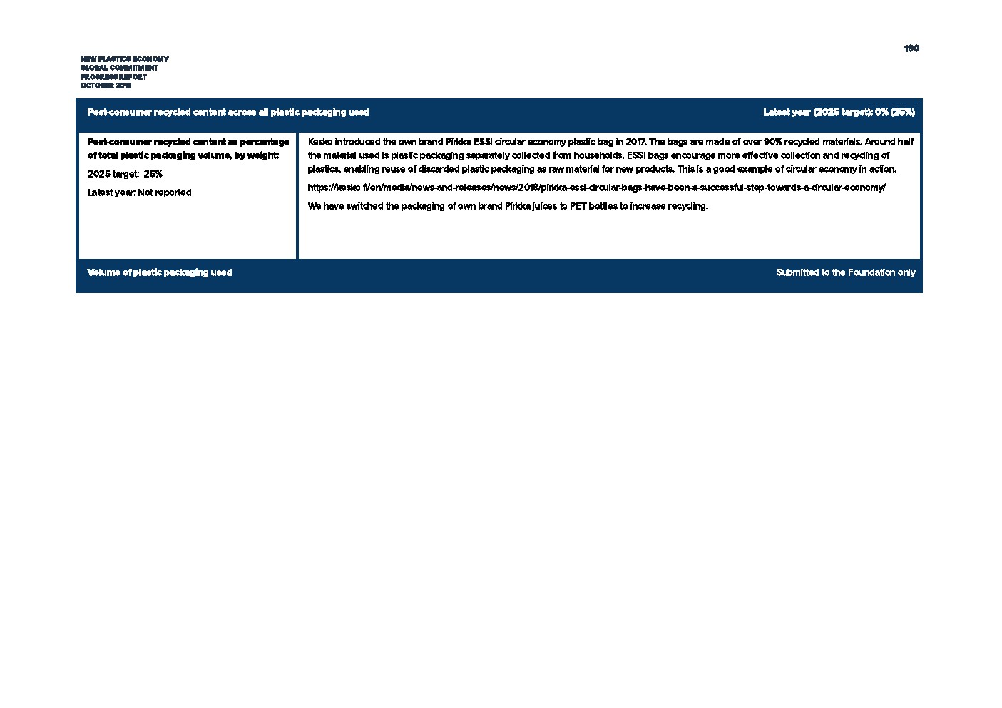 签署承诺的回收公司承诺到2025年将废塑料处理量翻两番。政府签约方还与行业和其他利益相关方合作,以实现2025年塑料包装回收率达到70%。