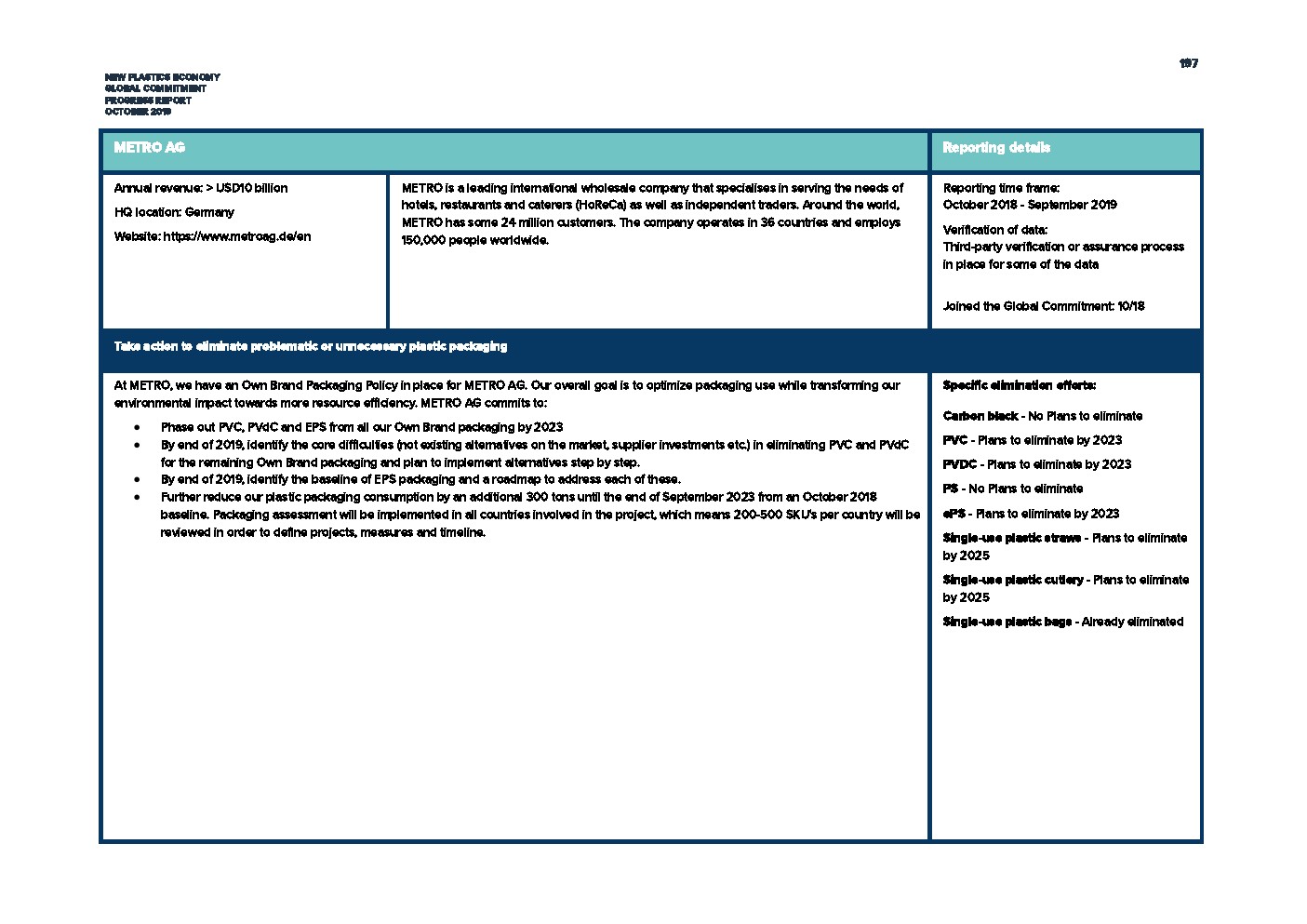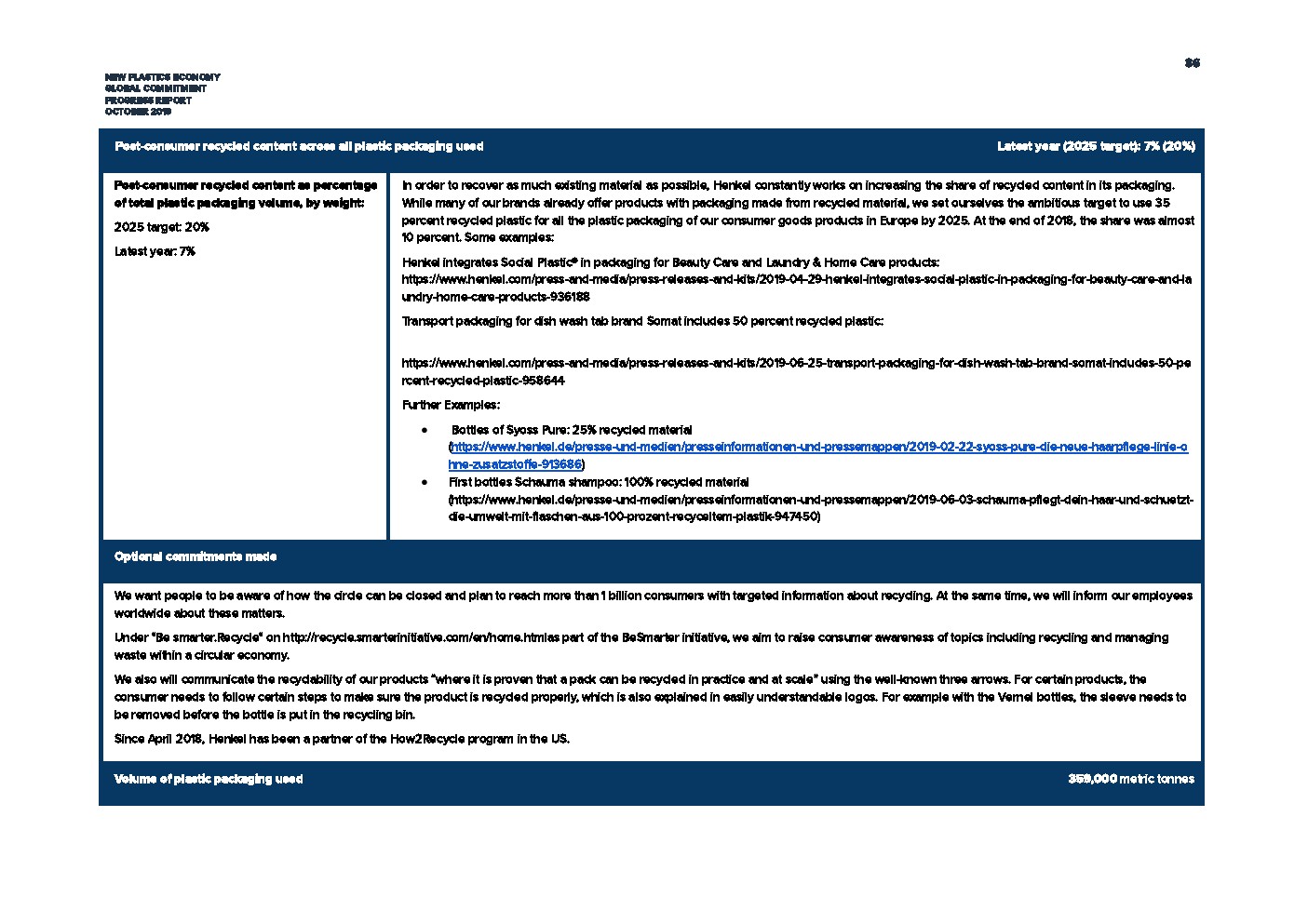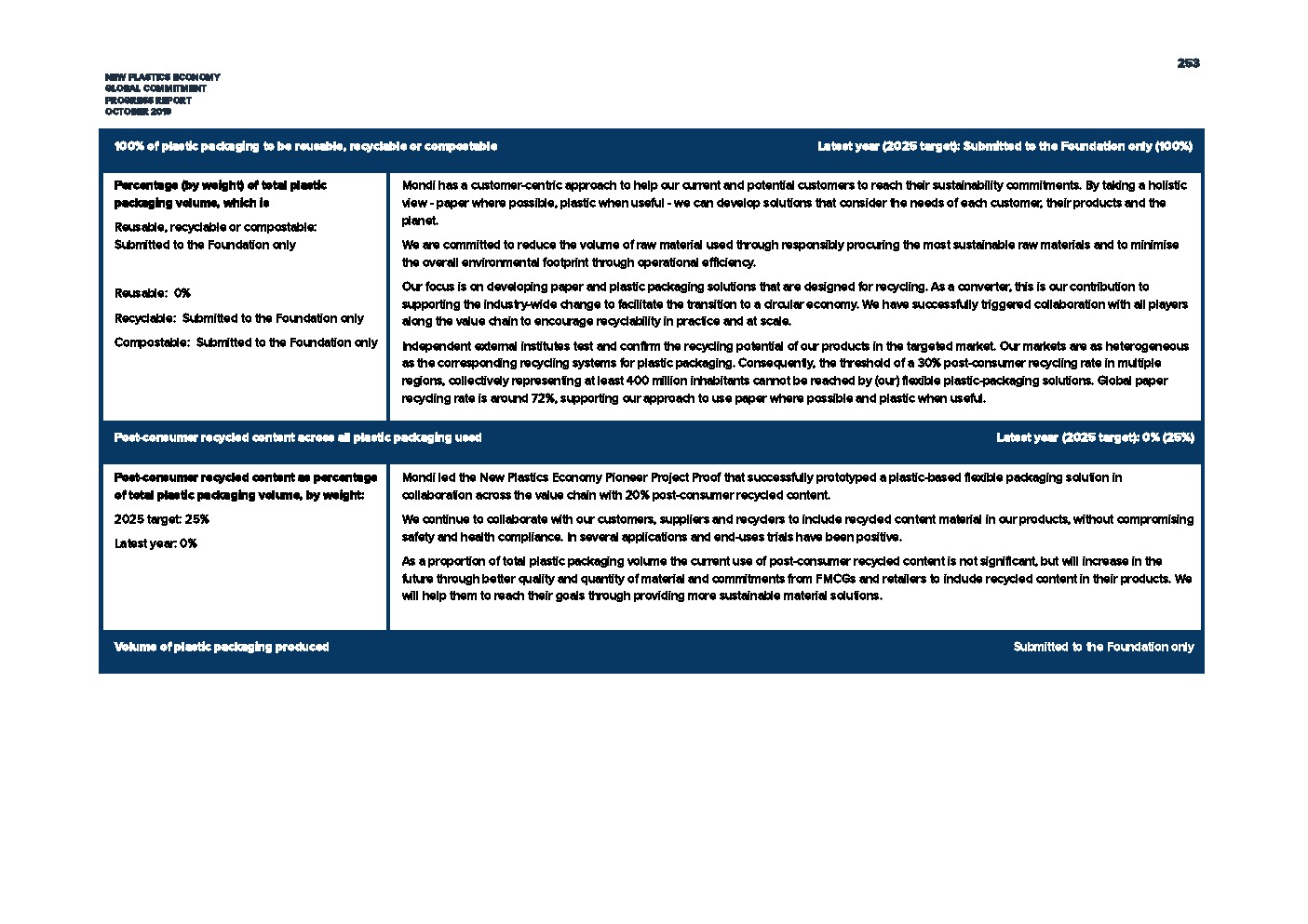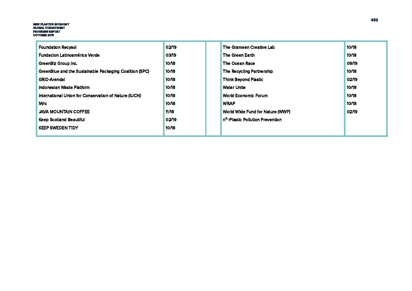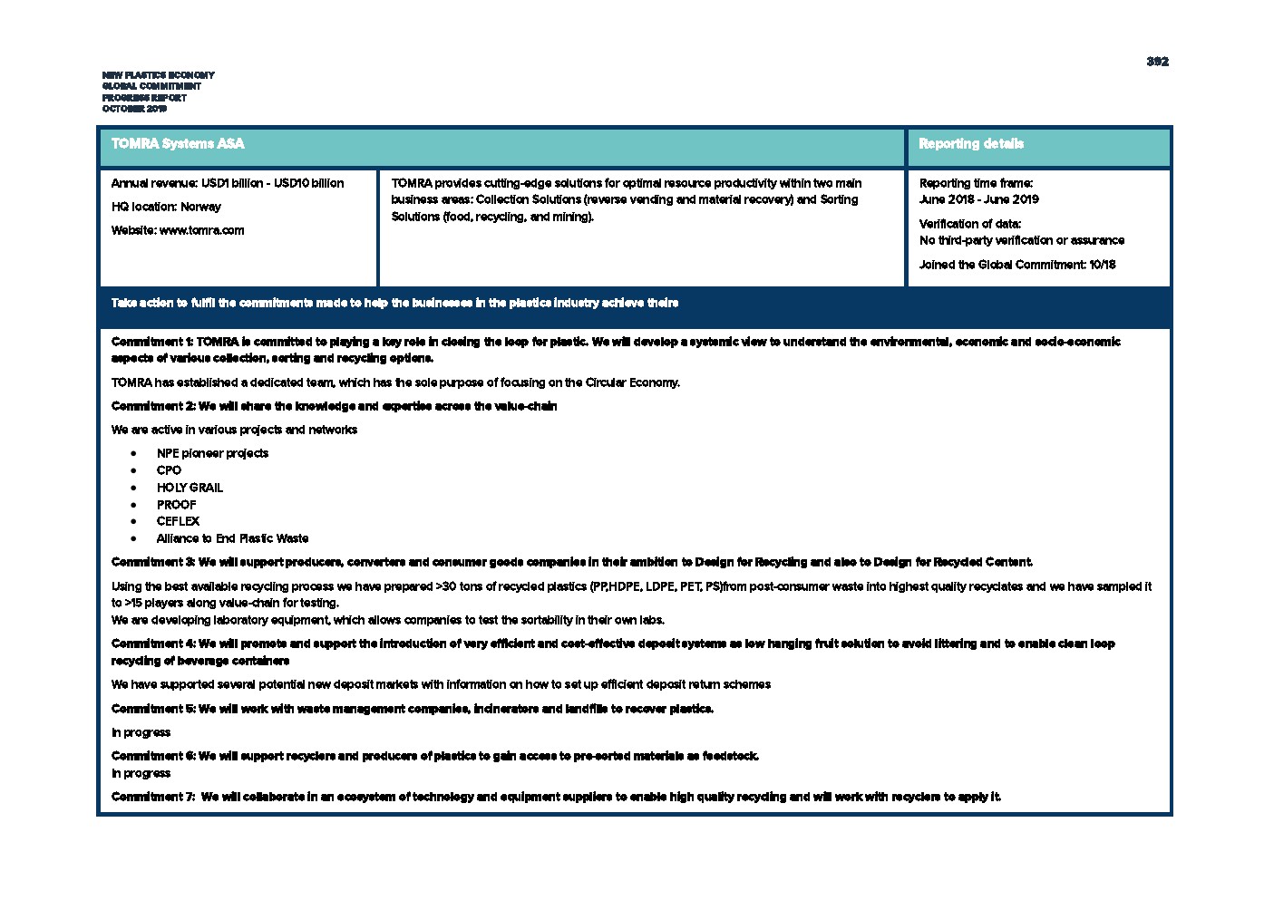签署承诺的回收公司承诺到2025年将废塑料处理量翻两番。政府签约方还与行业和其他利益相关方合作,以实现2025年塑料包装回收率达到70%。