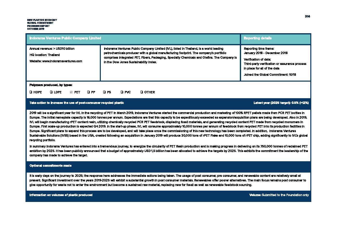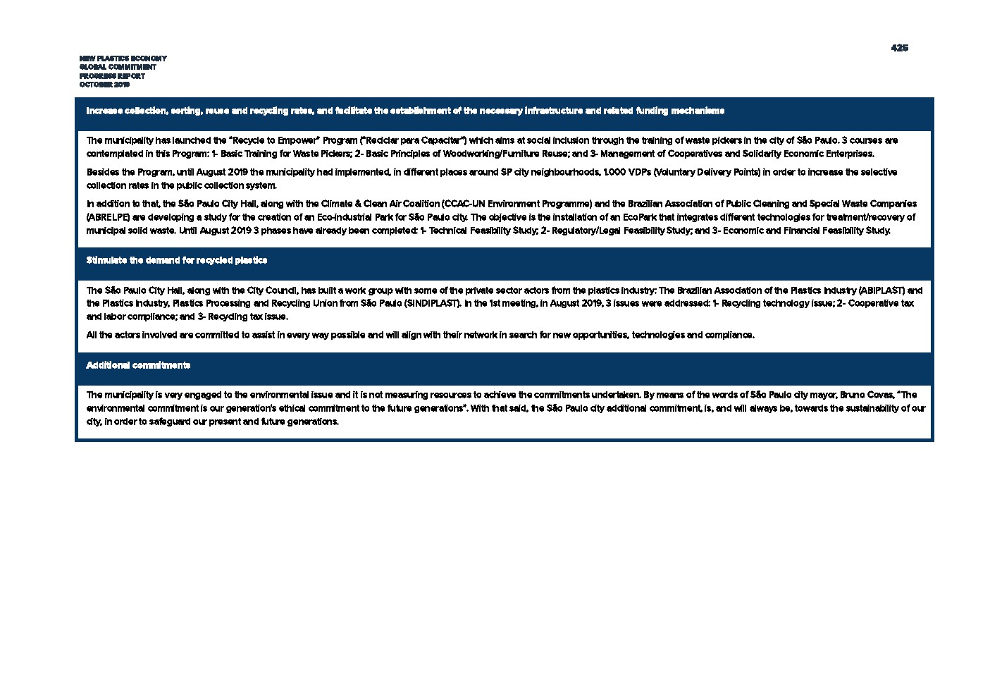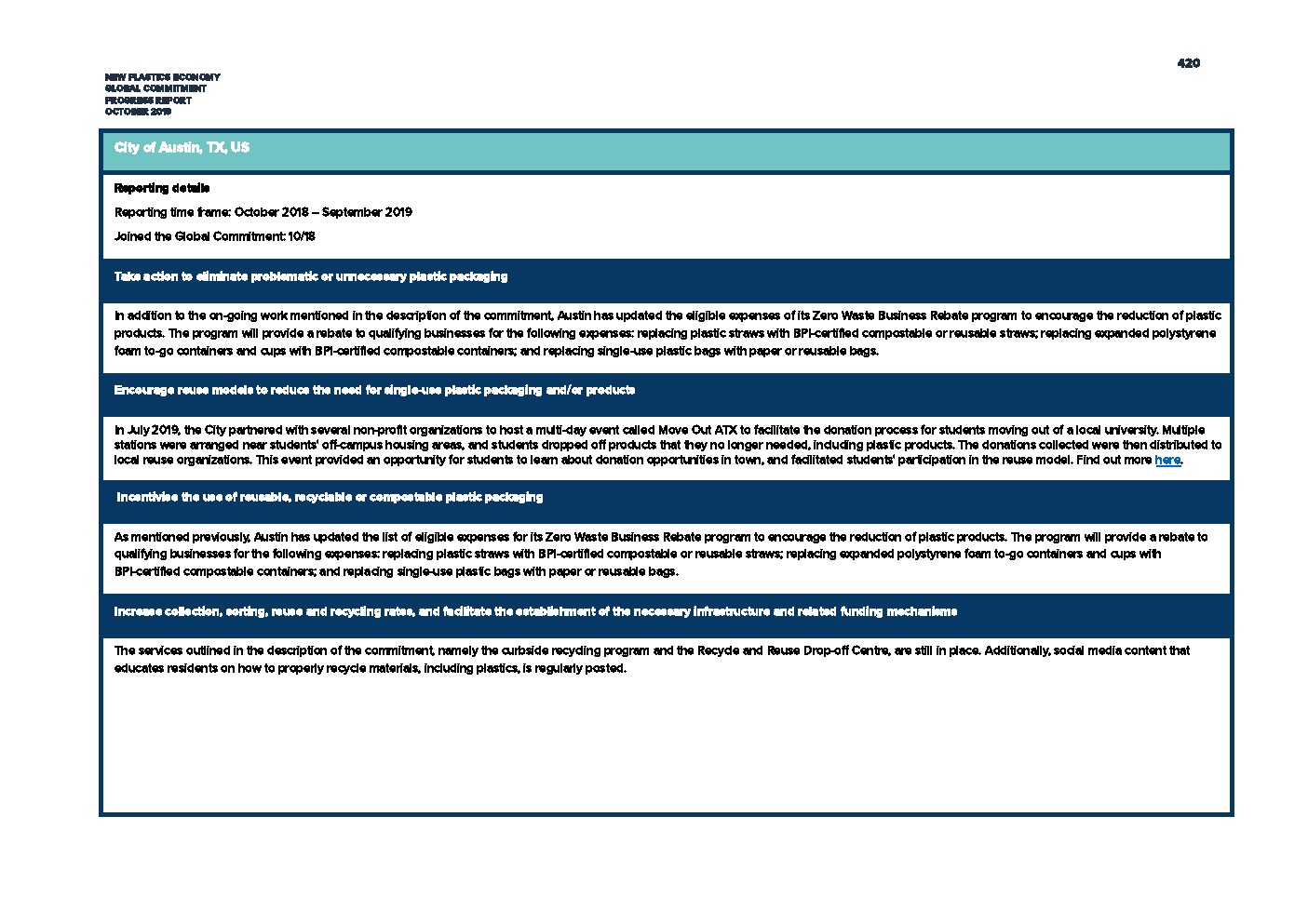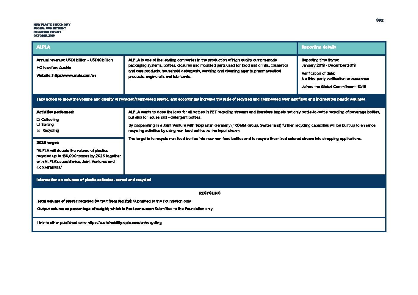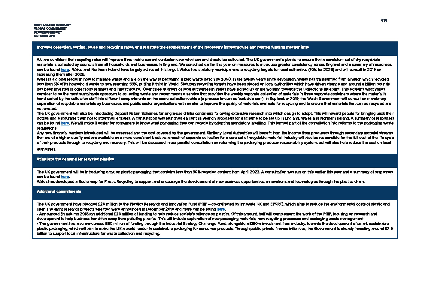 签署承诺的回收公司承诺到2025年将废塑料处理量翻两番。政府签约方还与行业和其他利益相关方合作,以实现2025年塑料包装回收率达到70%。