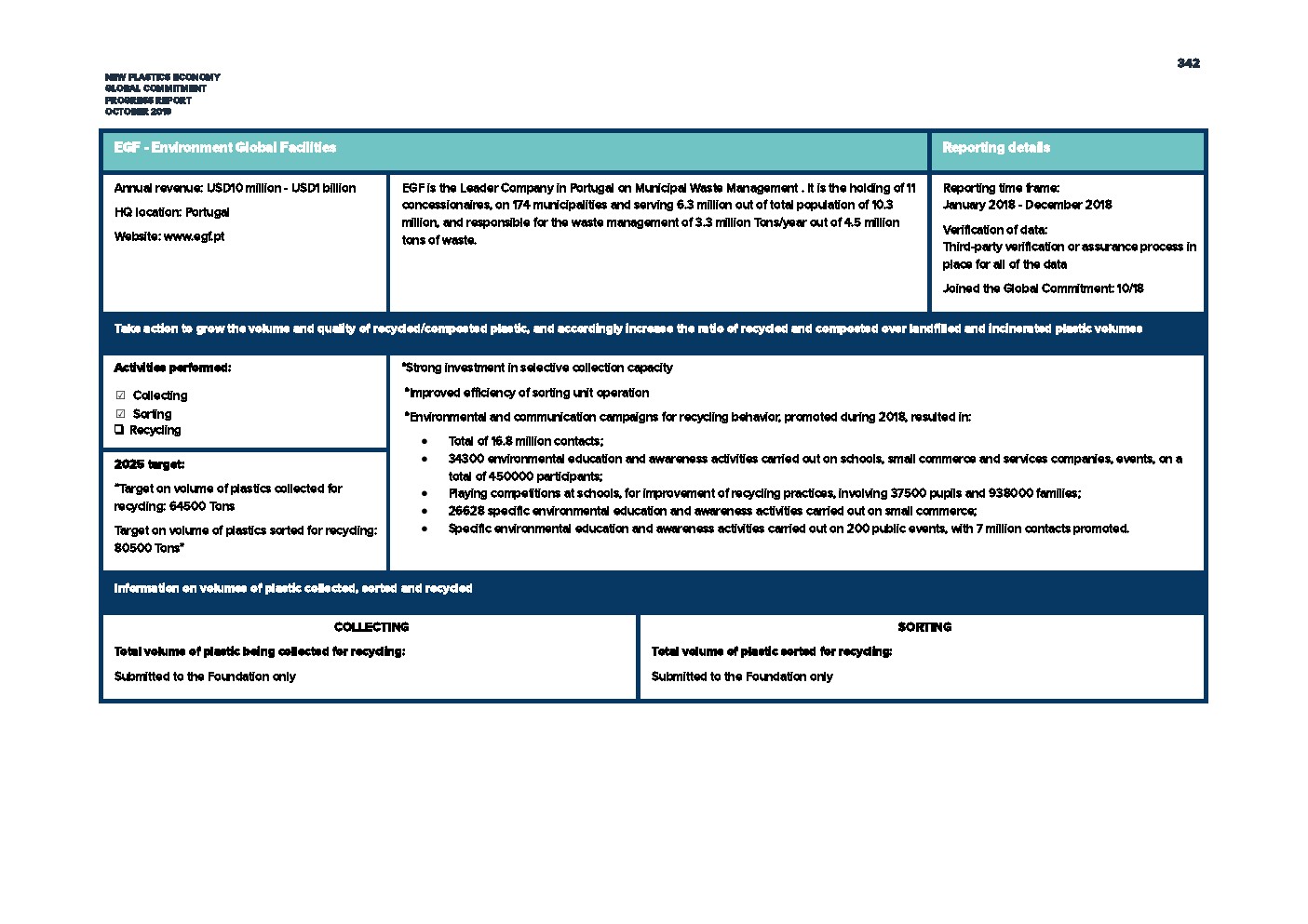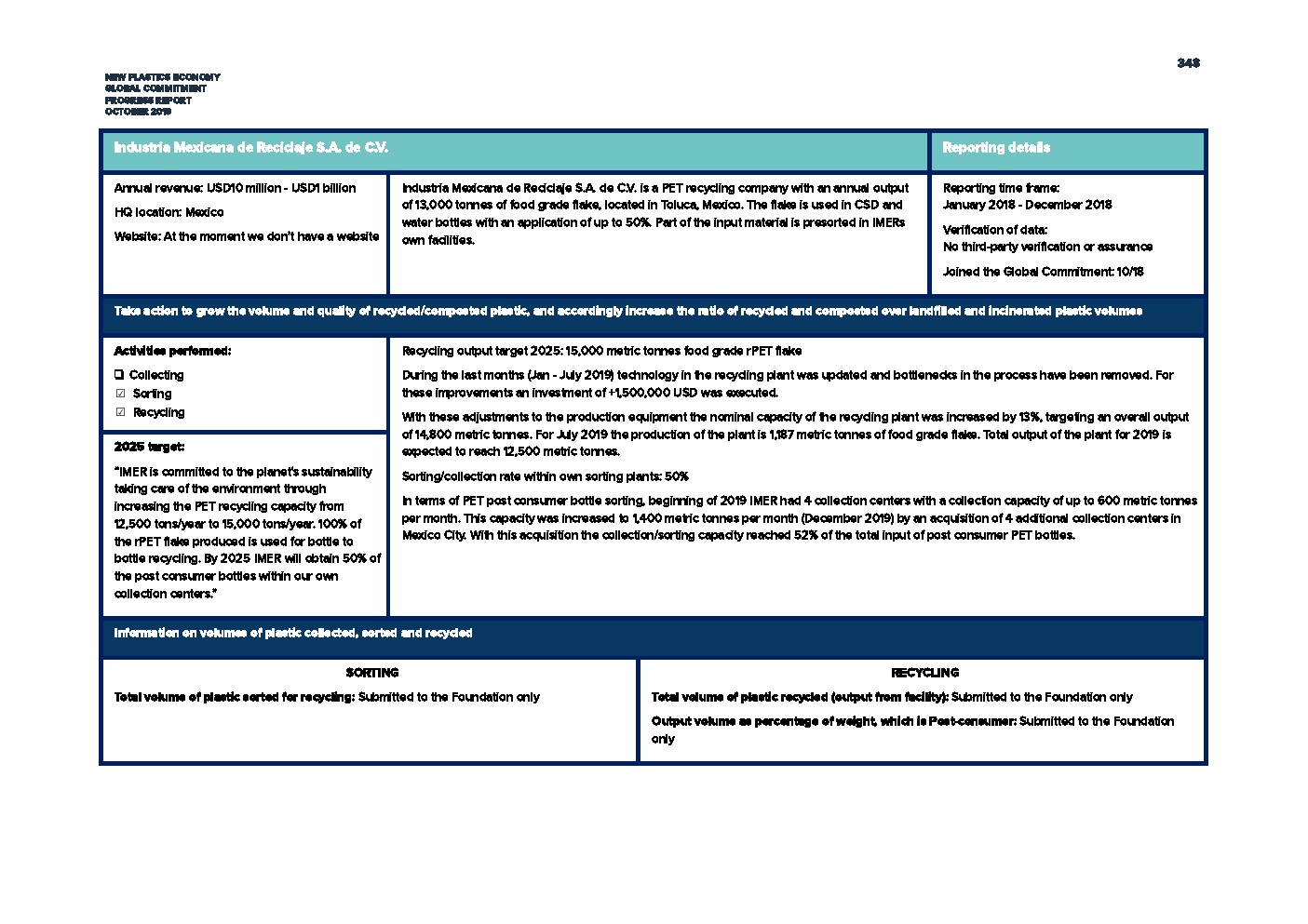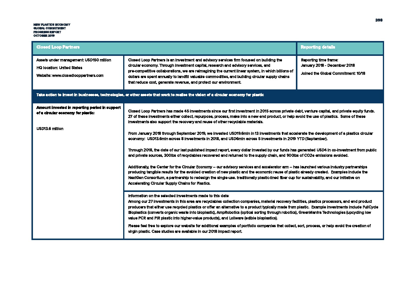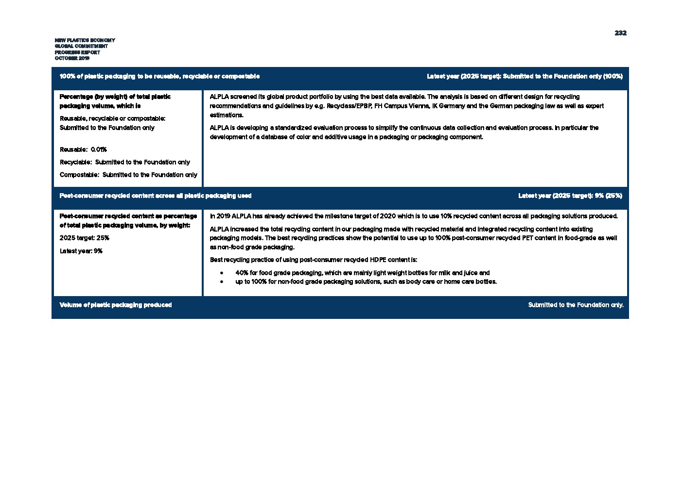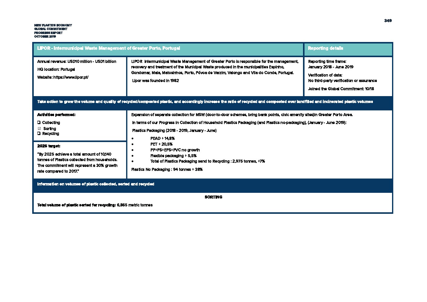 签署承诺的回收公司承诺到2025年将废塑料处理量翻两番。政府签约方还与行业和其他利益相关方合作,以实现2025年塑料包装回收率达到70%。