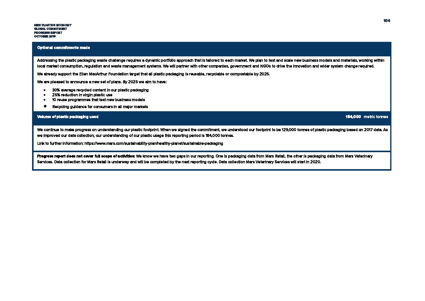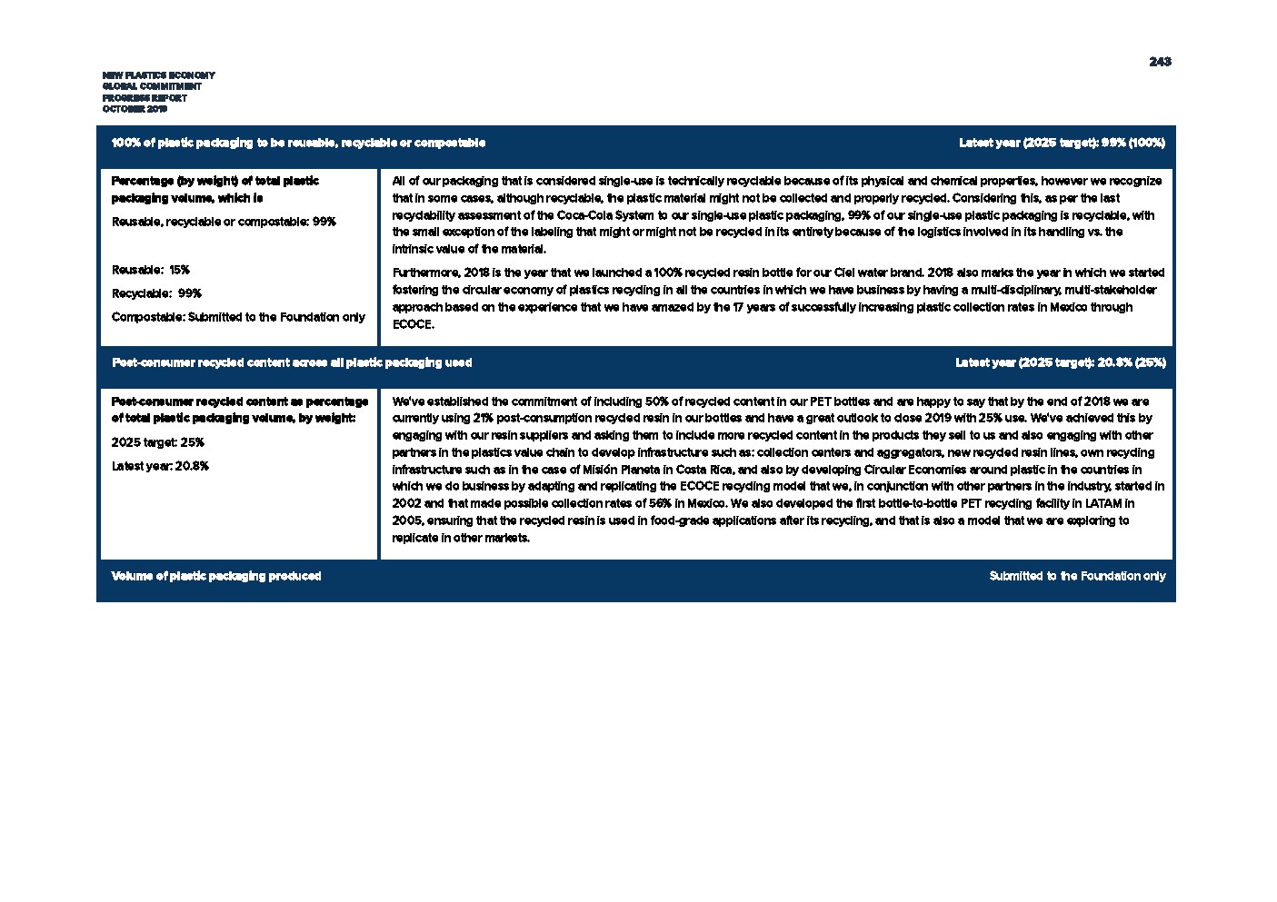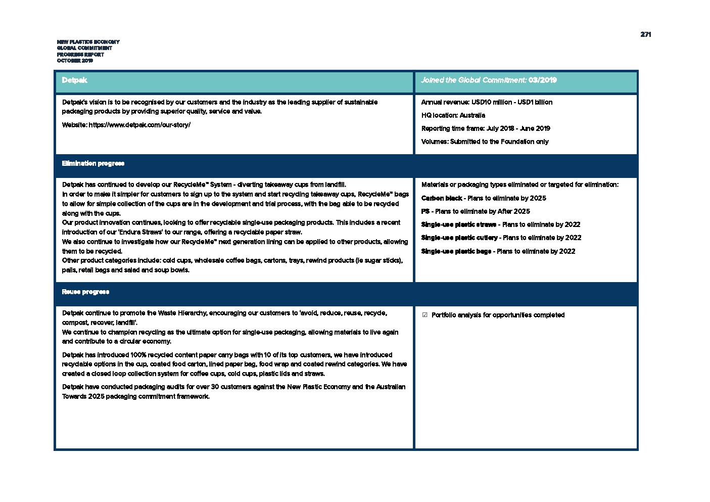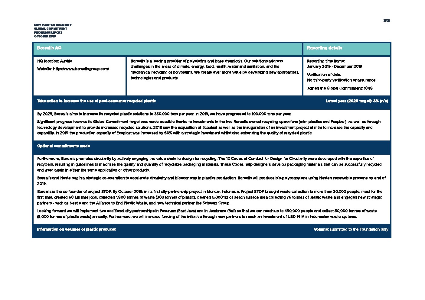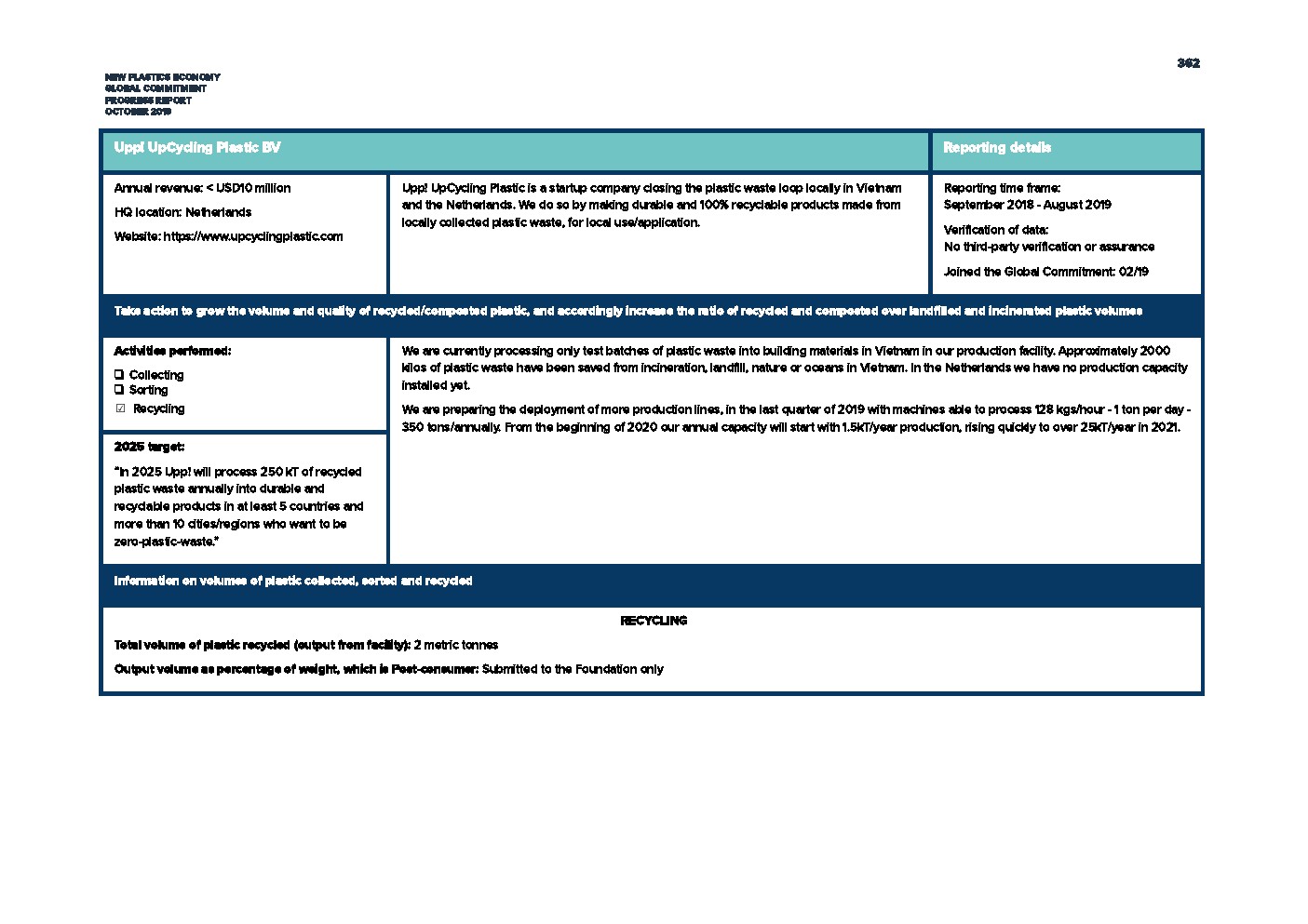 签署承诺的回收公司承诺到2025年将废塑料处理量翻两番。政府签约方还与行业和其他利益相关方合作,以实现2025年塑料包装回收率达到70%。