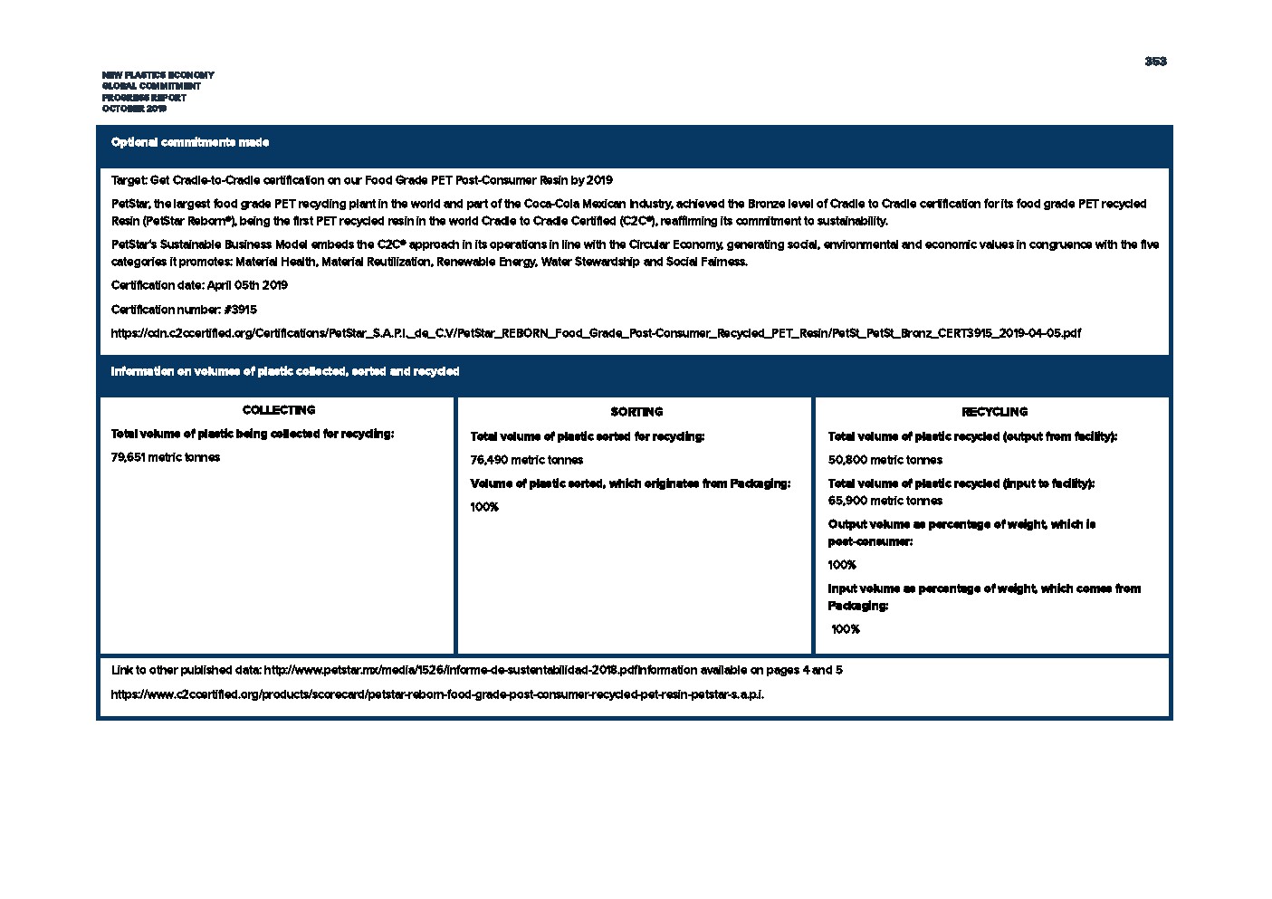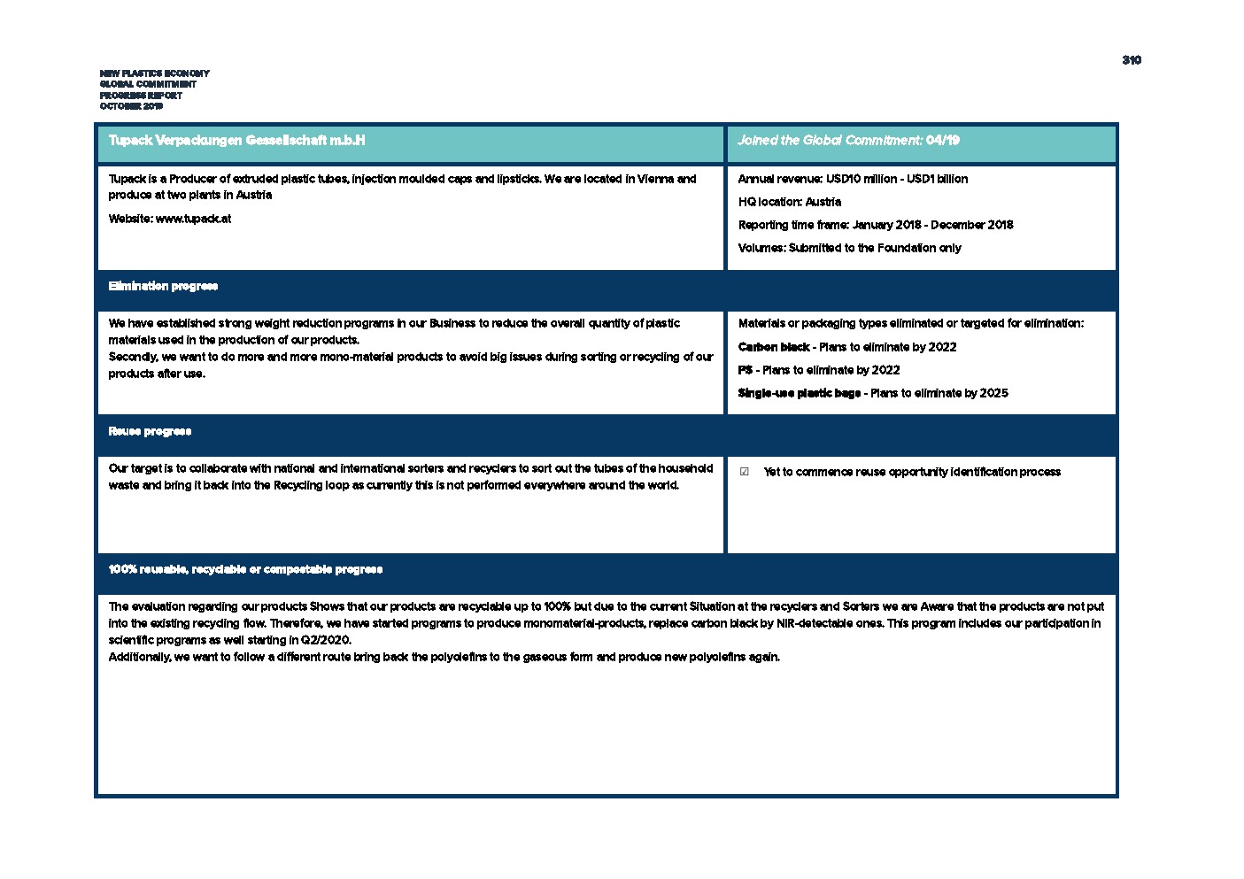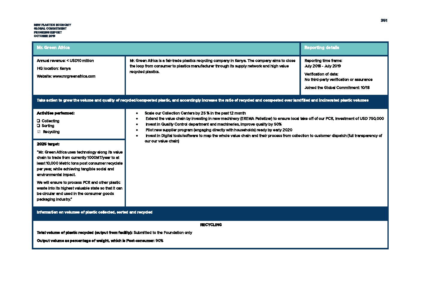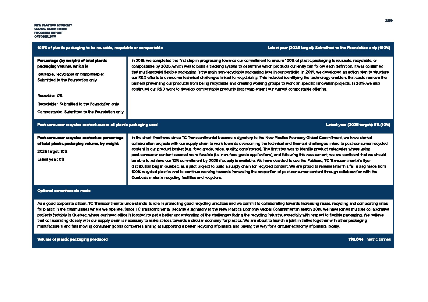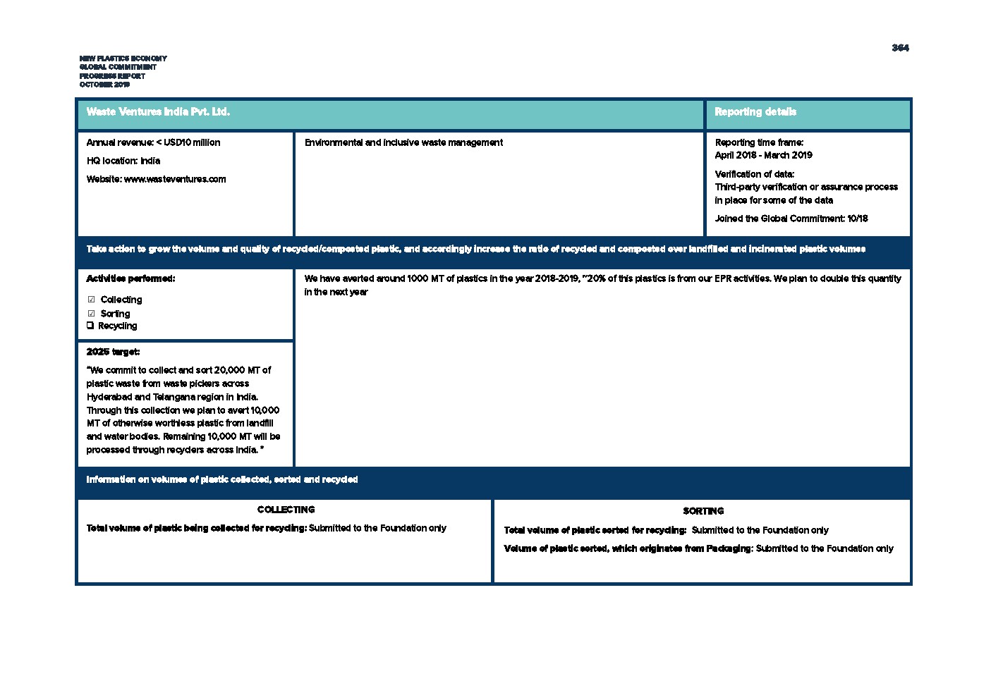 签署承诺的回收公司承诺到2025年将废塑料处理量翻两番。政府签约方还与行业和其他利益相关方合作,以实现2025年塑料包装回收率达到70%。