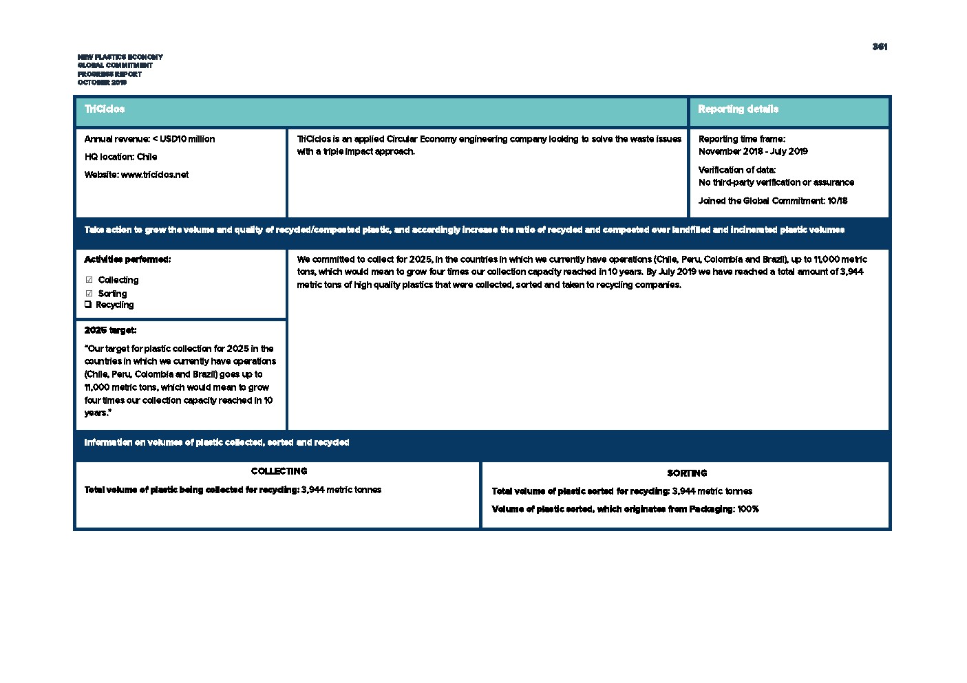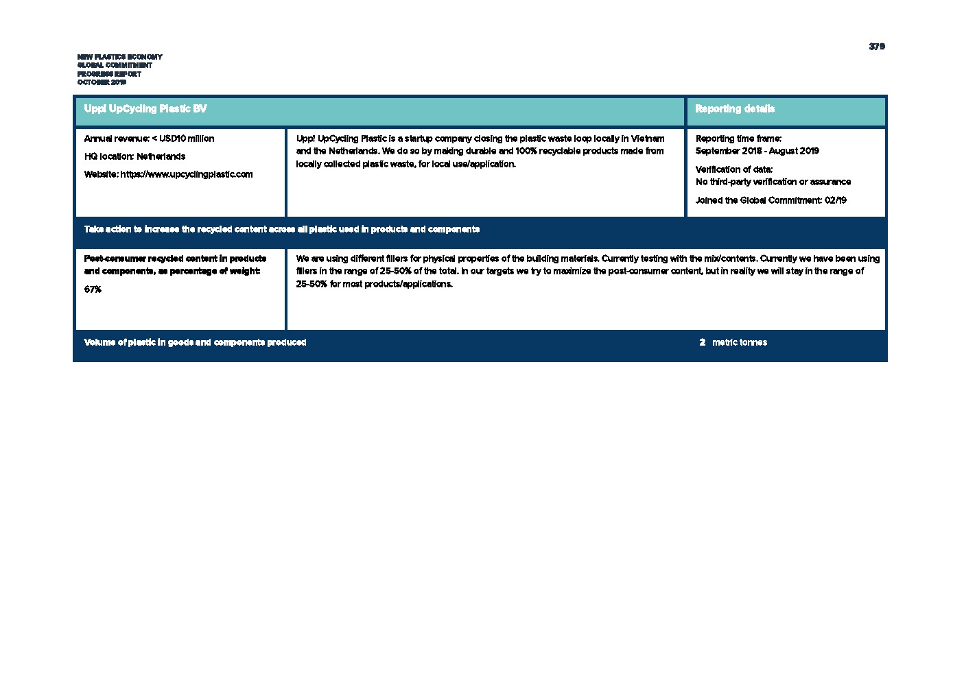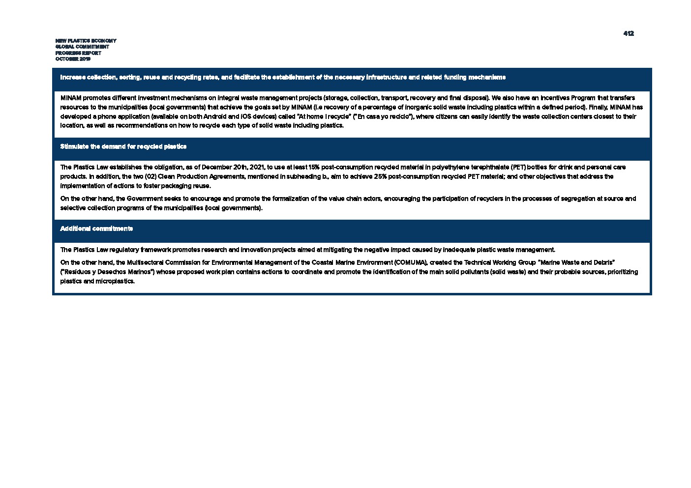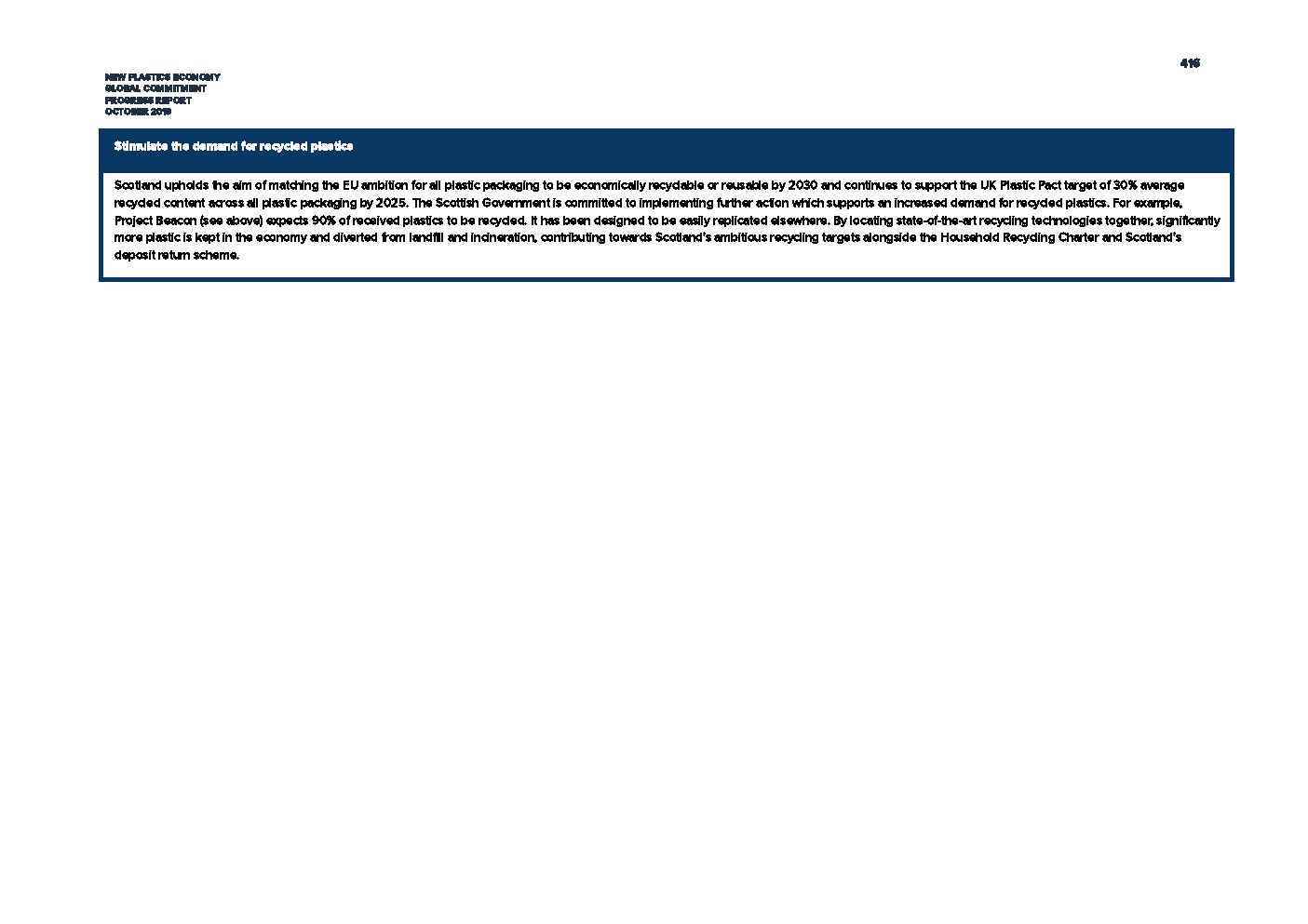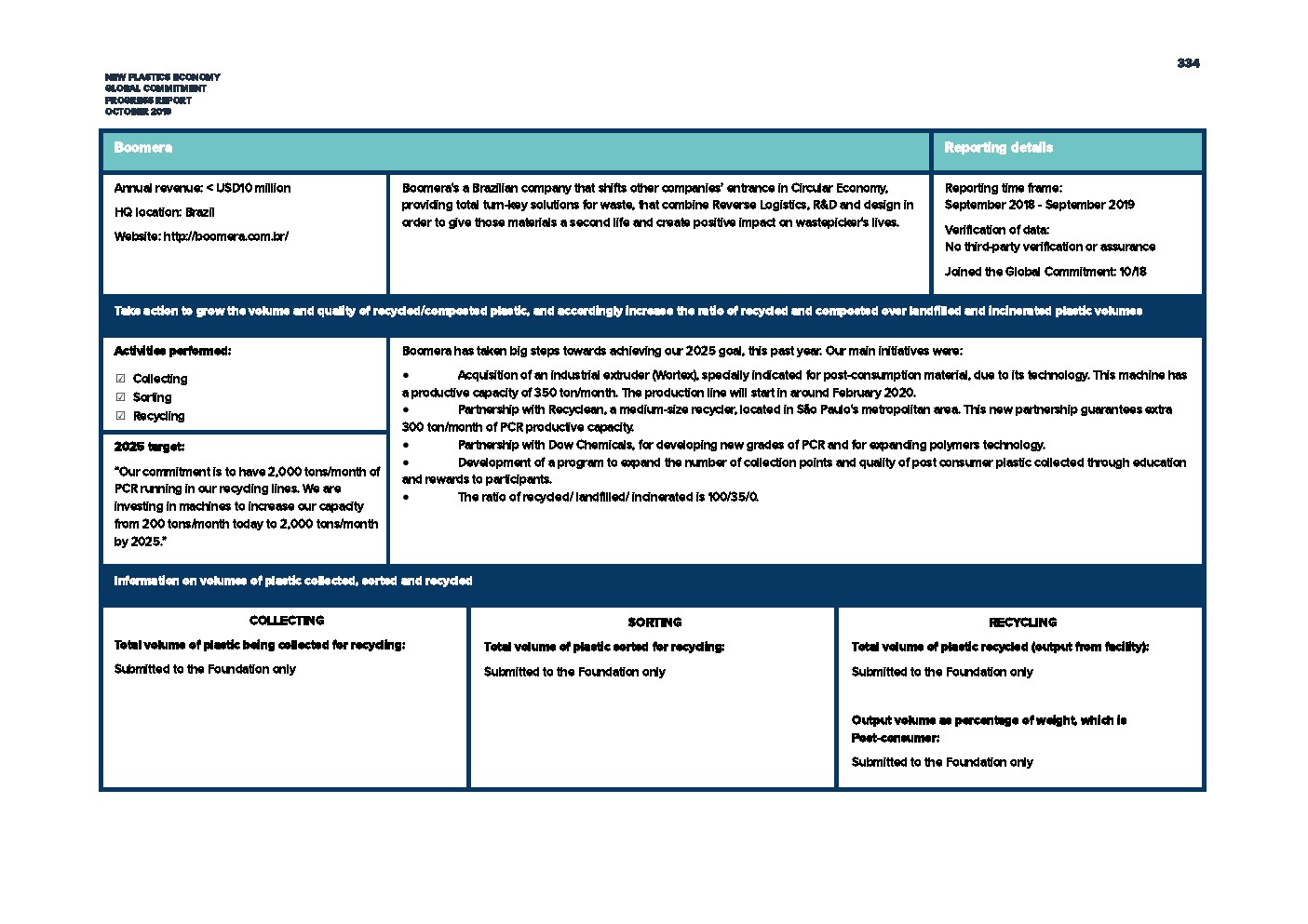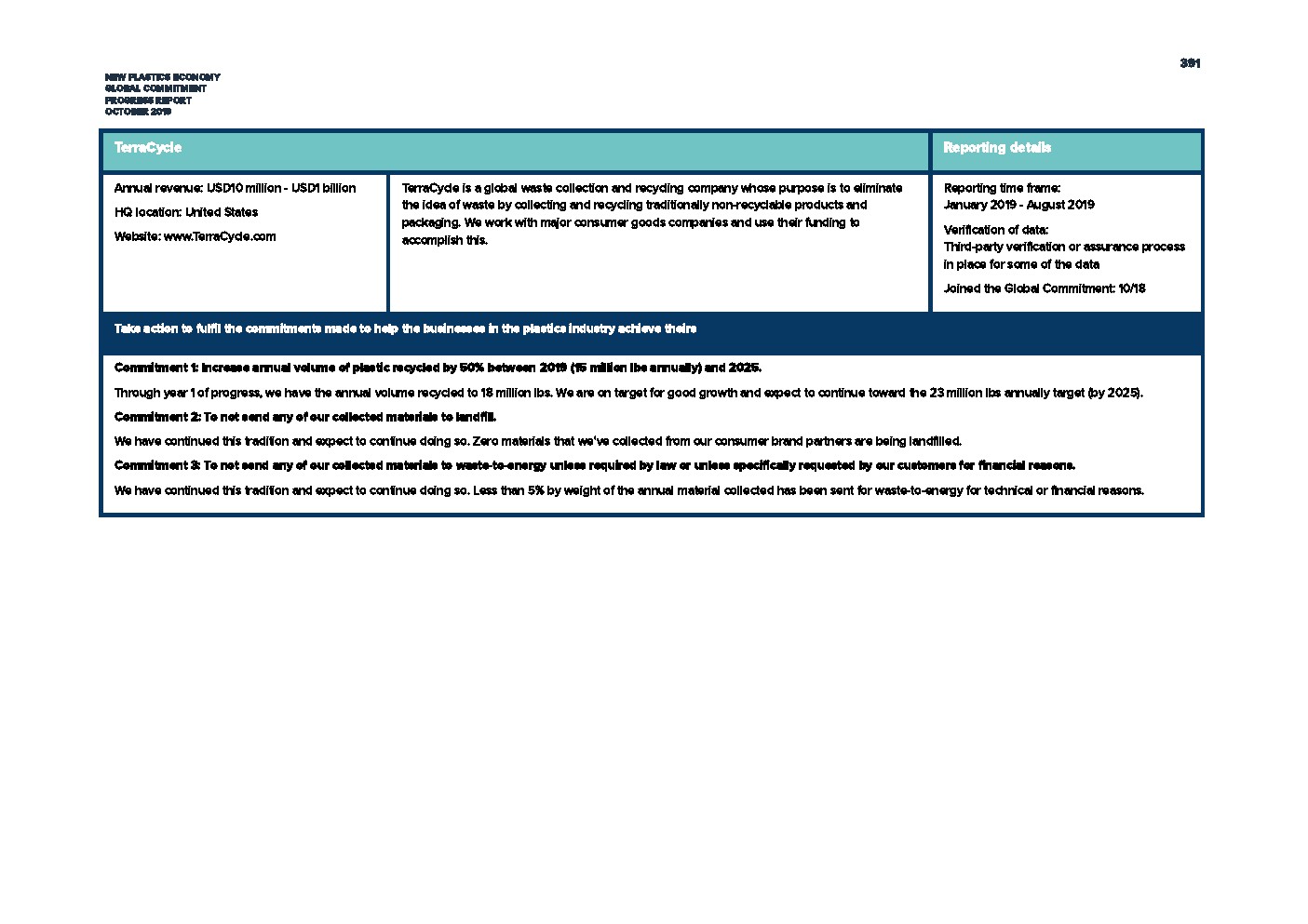 签署承诺的回收公司承诺到2025年将废塑料处理量翻两番。政府签约方还与行业和其他利益相关方合作,以实现2025年塑料包装回收率达到70%。