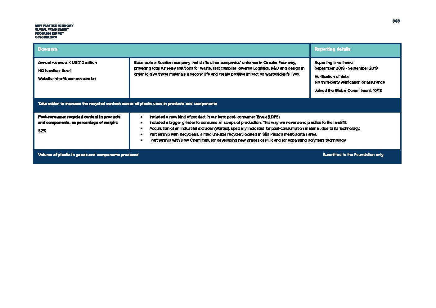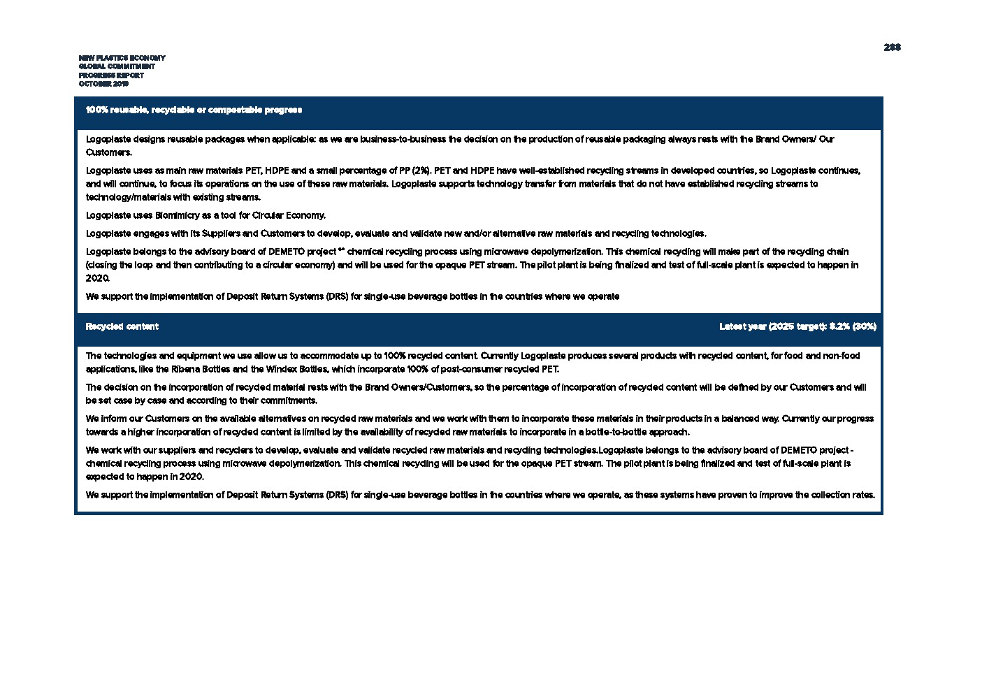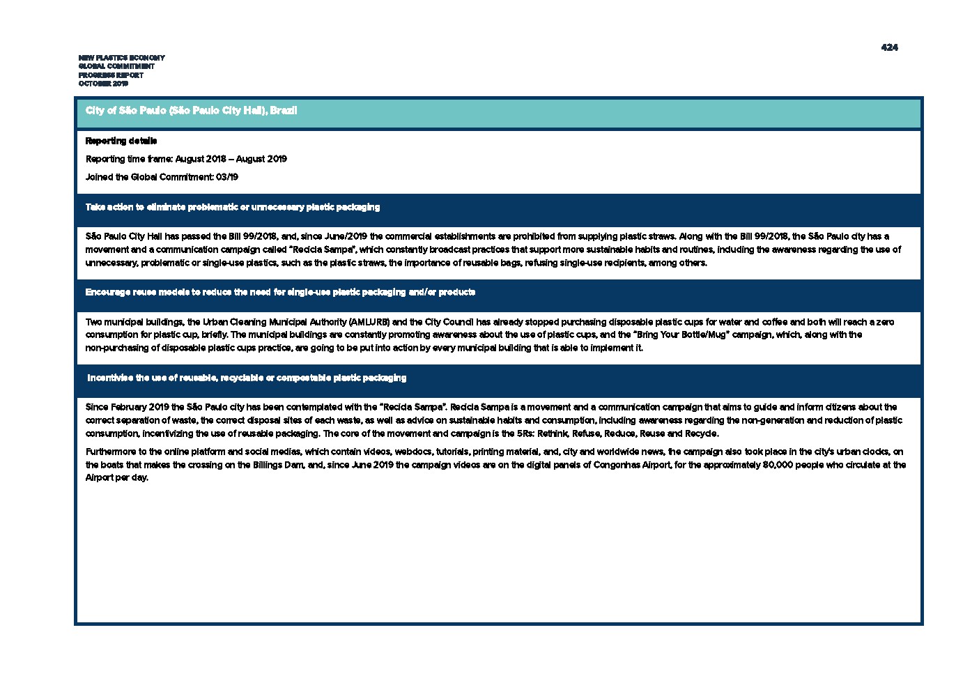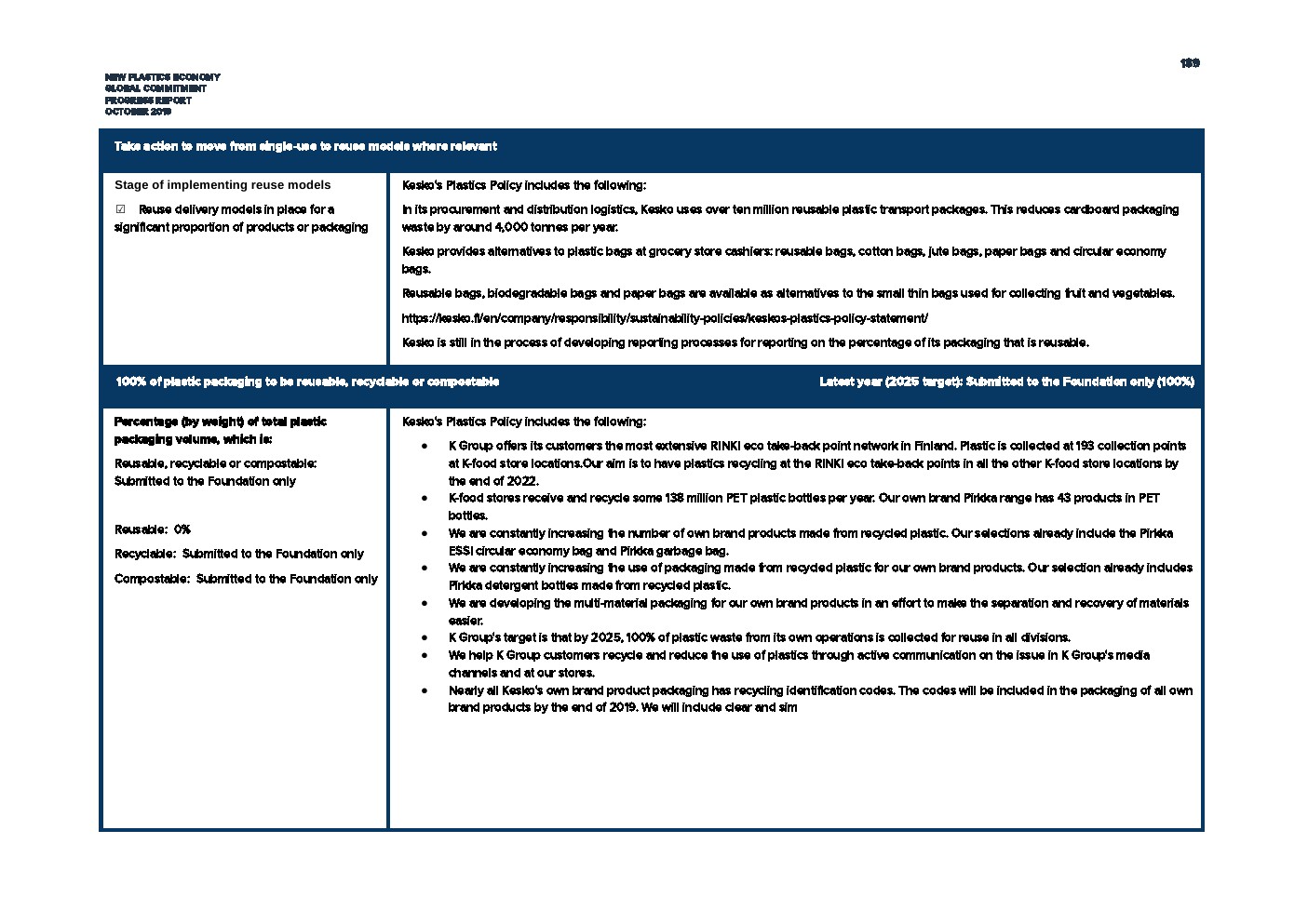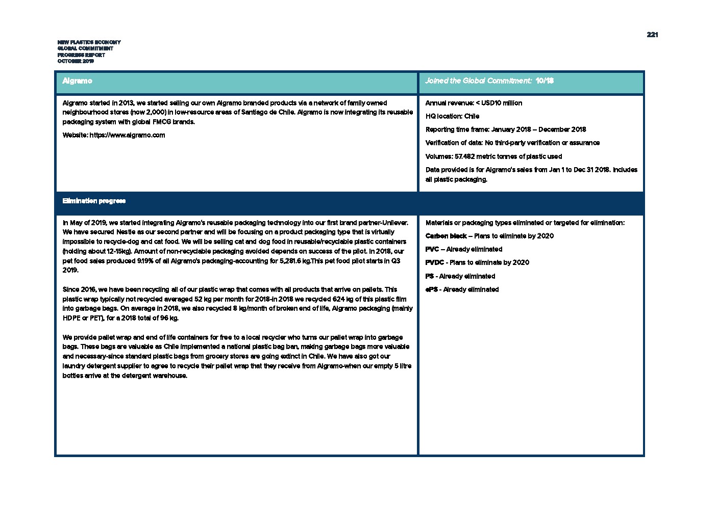 签署承诺的回收公司承诺到2025年将废塑料处理量翻两番。政府签约方还与行业和其他利益相关方合作,以实现2025年塑料包装回收率达到70%。