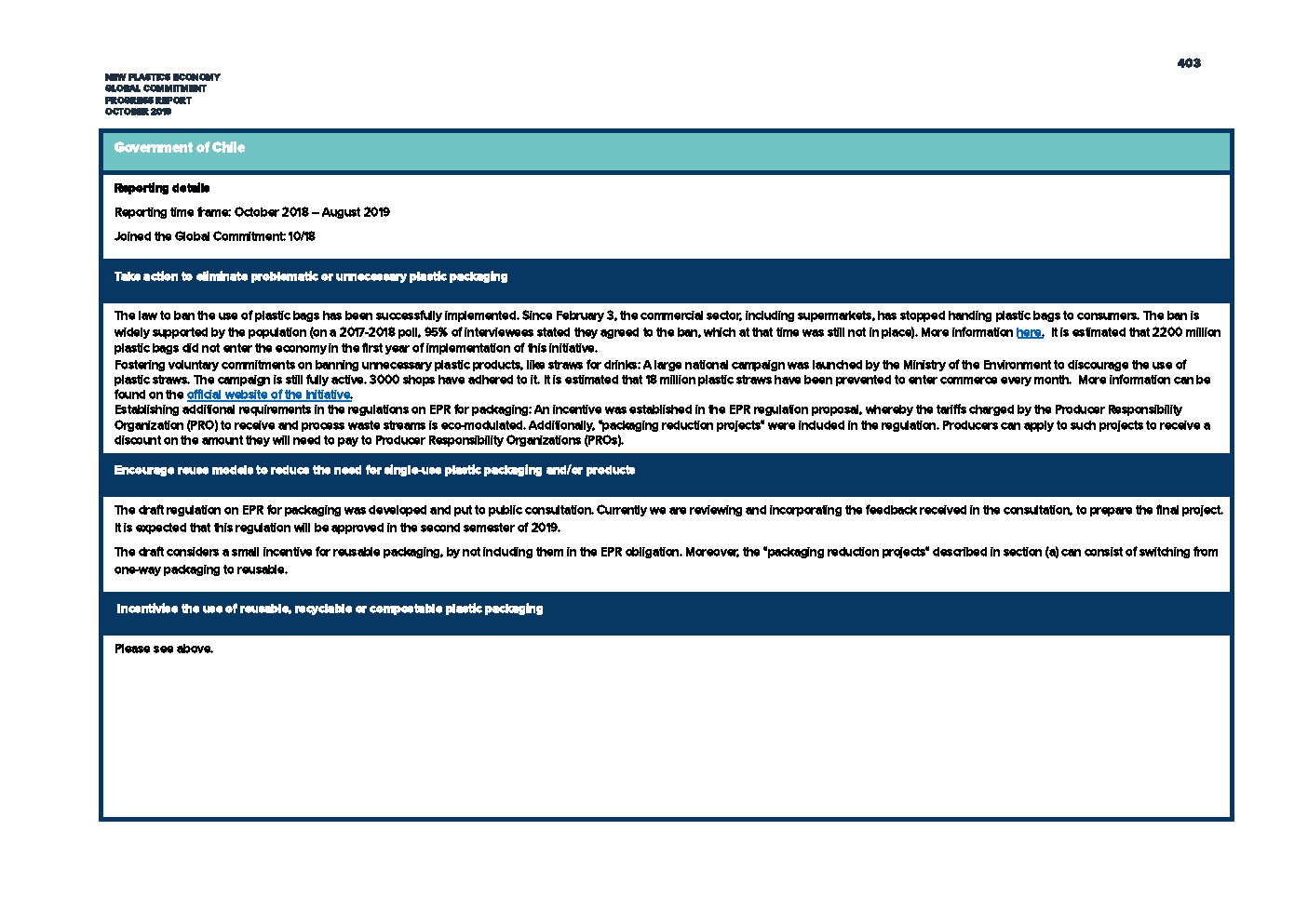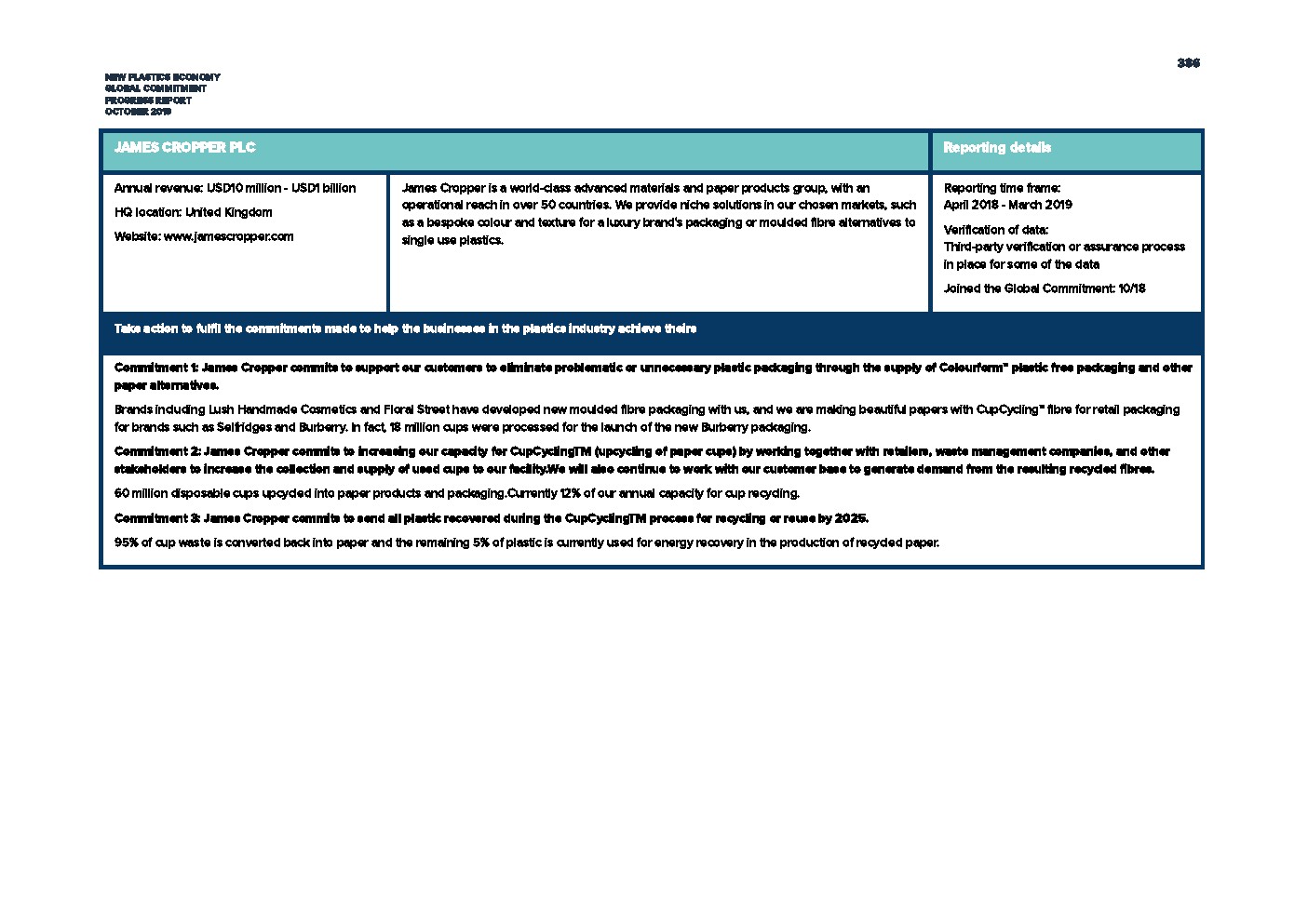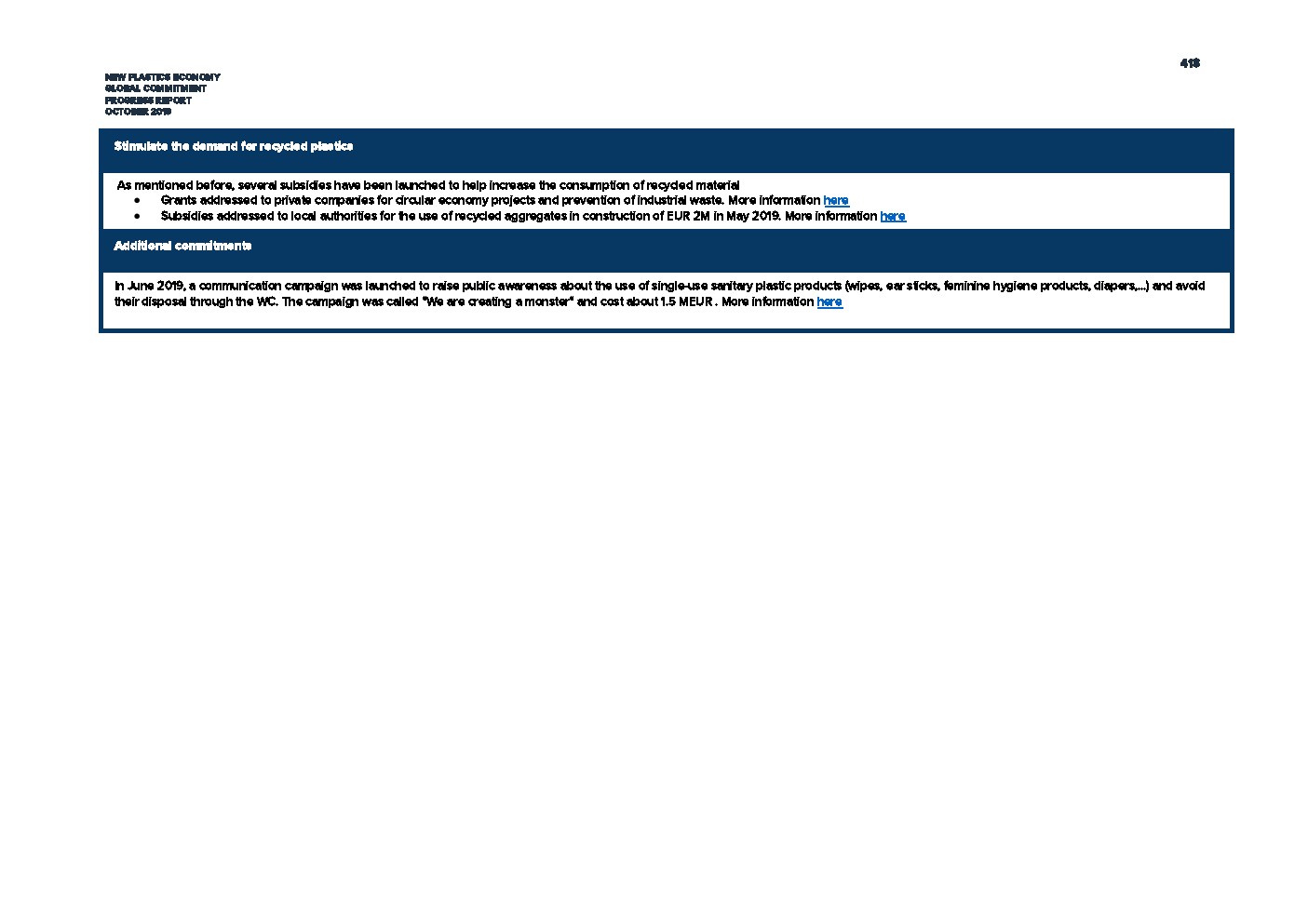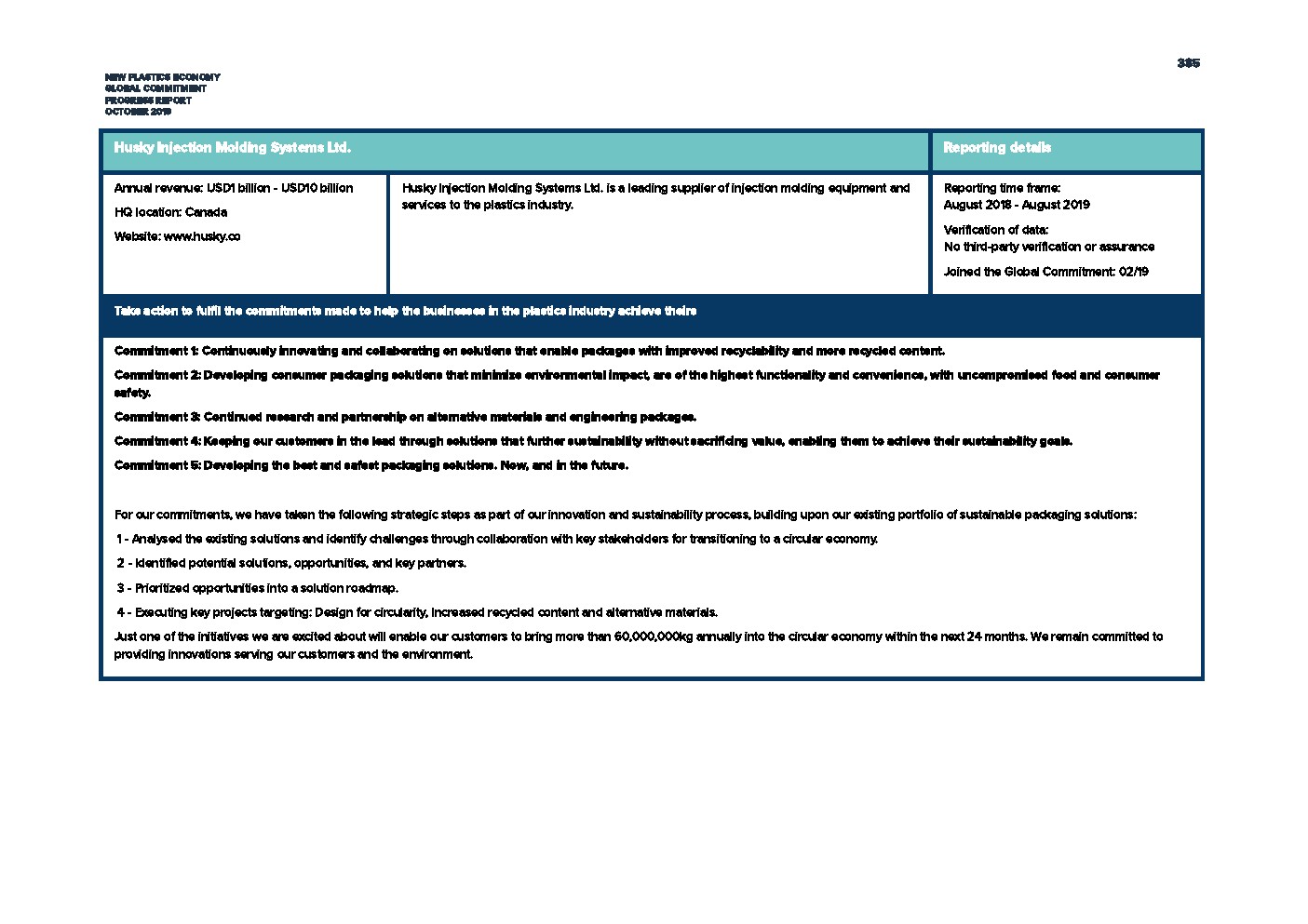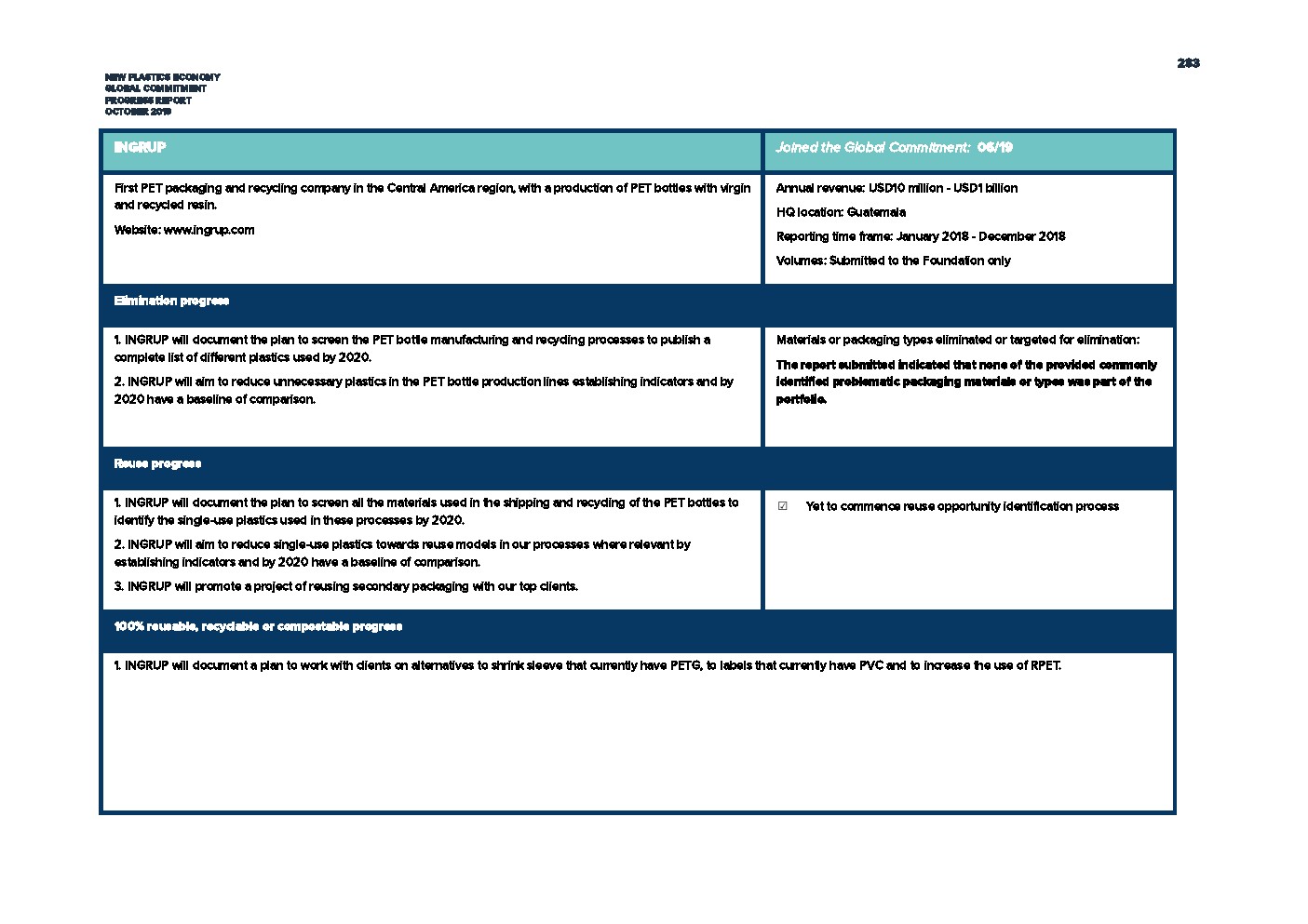 签署承诺的回收公司承诺到2025年将废塑料处理量翻两番。政府签约方还与行业和其他利益相关方合作,以实现2025年塑料包装回收率达到70%。