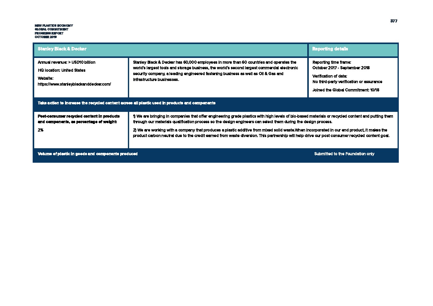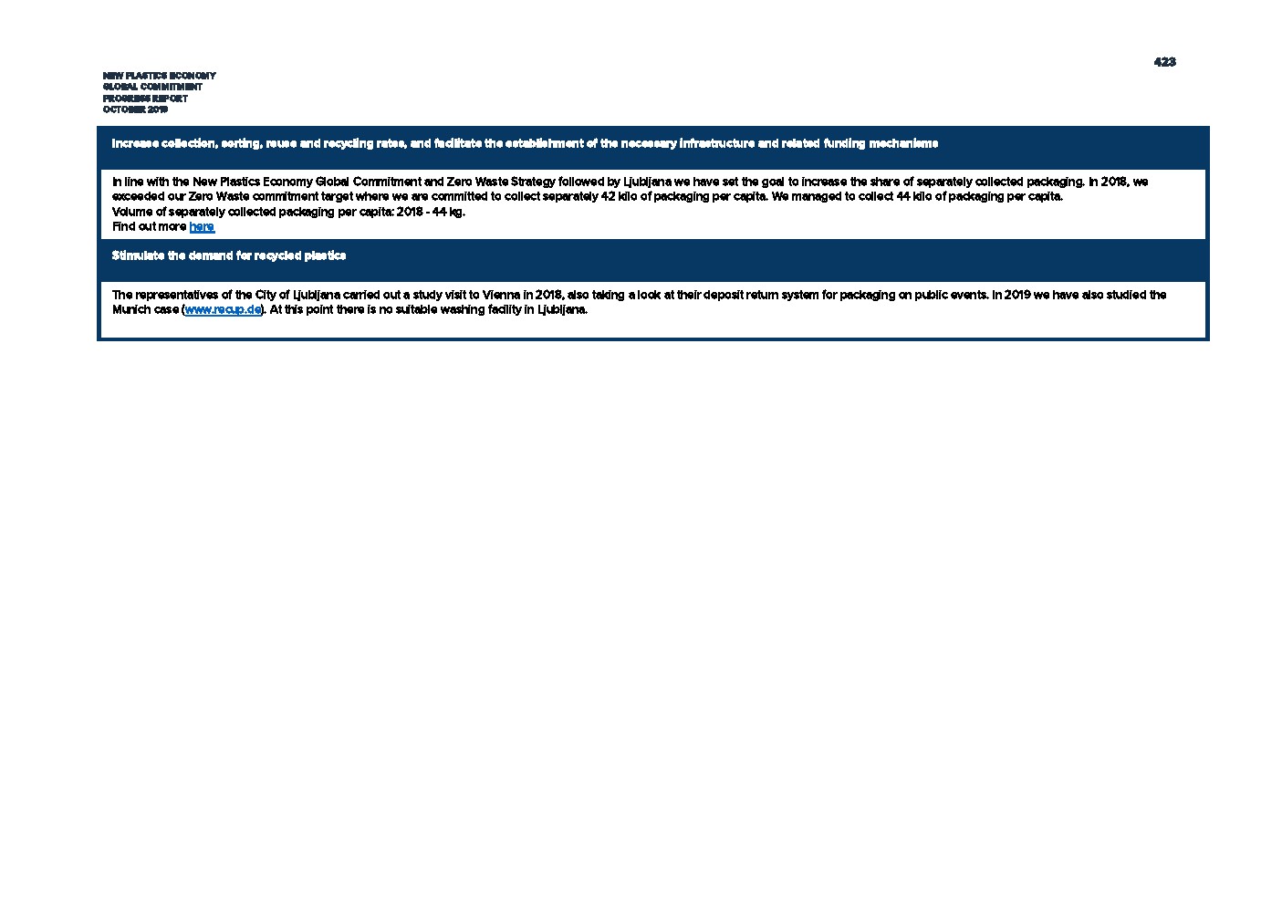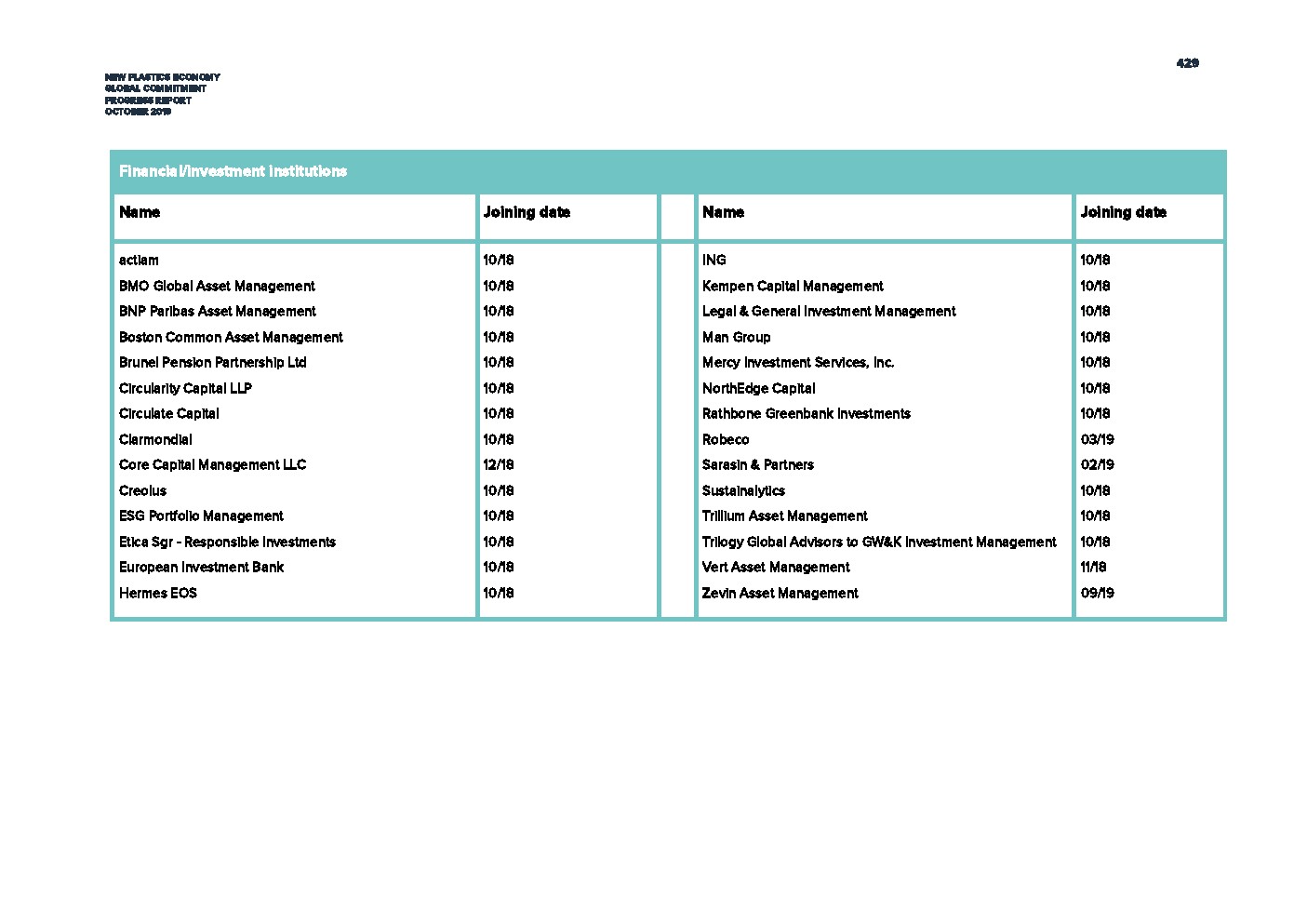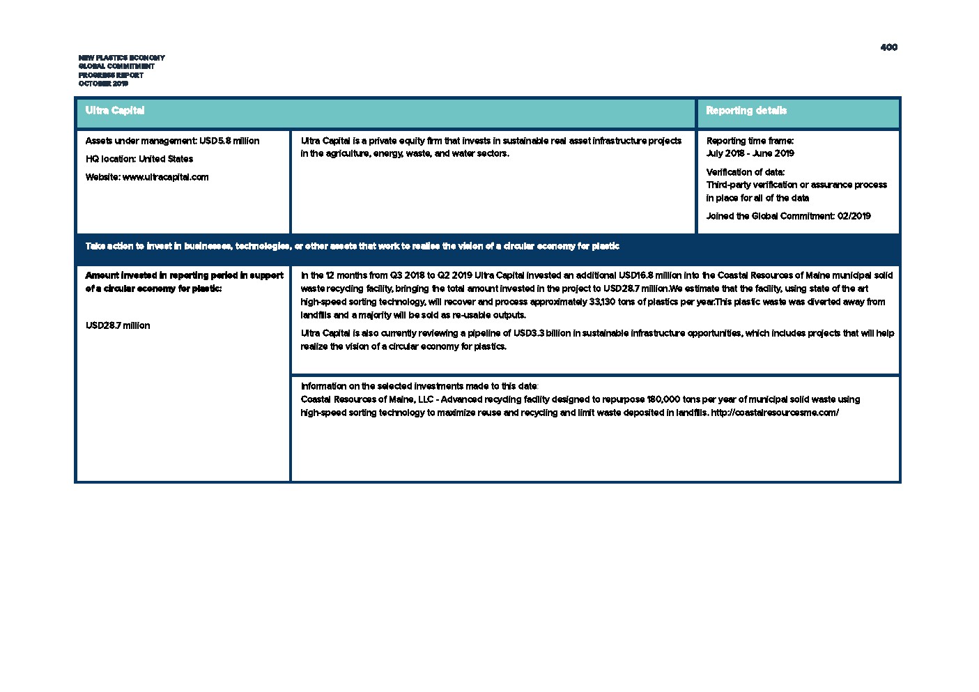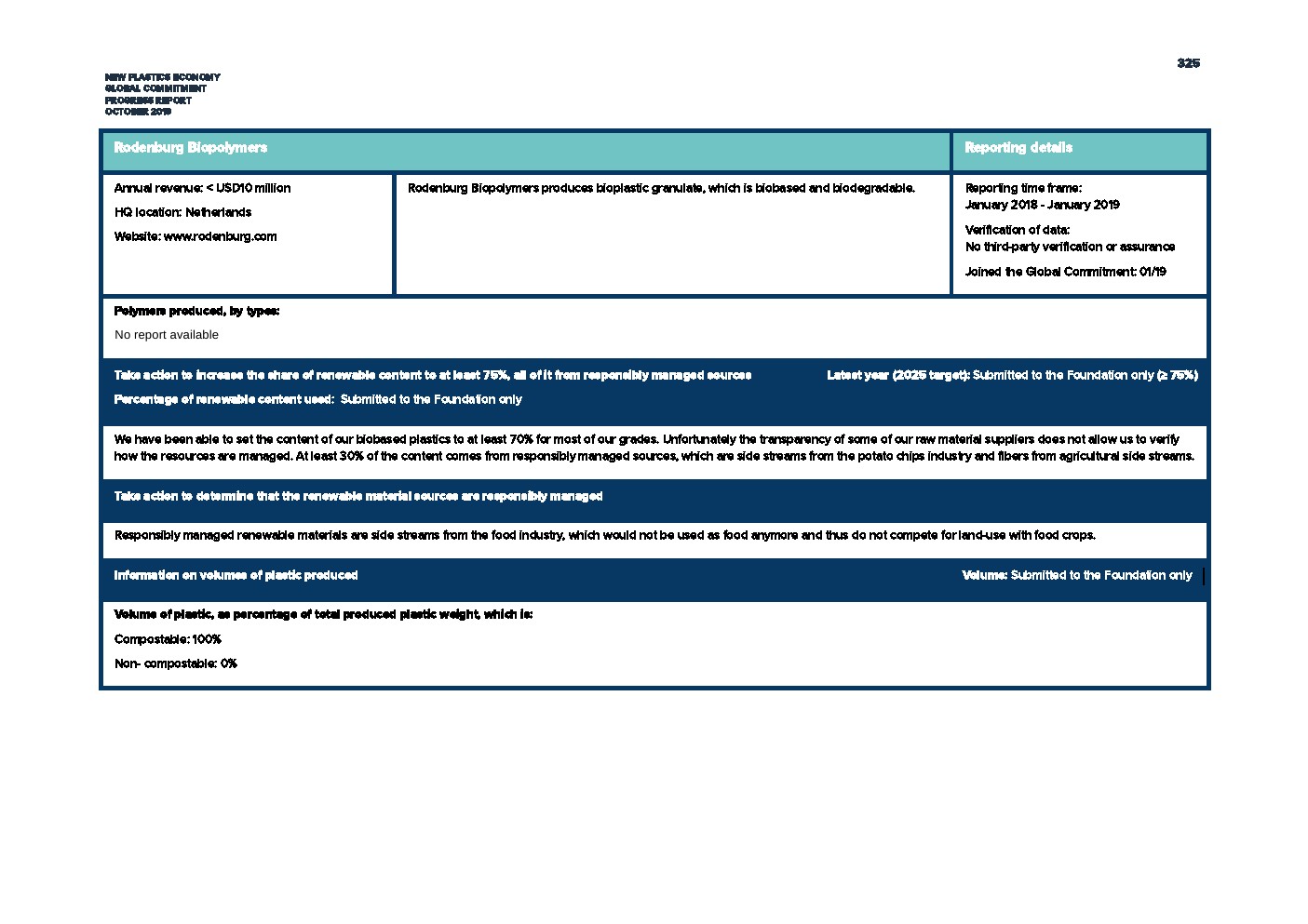 签署承诺的回收公司承诺到2025年将废塑料处理量翻两番。政府签约方还与行业和其他利益相关方合作,以实现2025年塑料包装回收率达到70%。