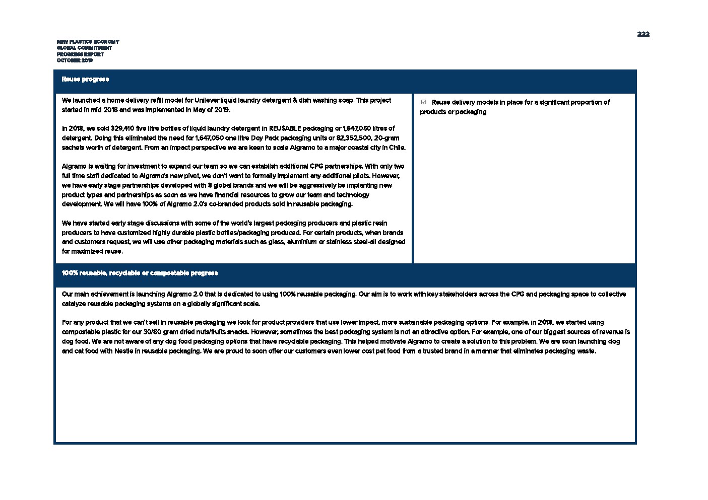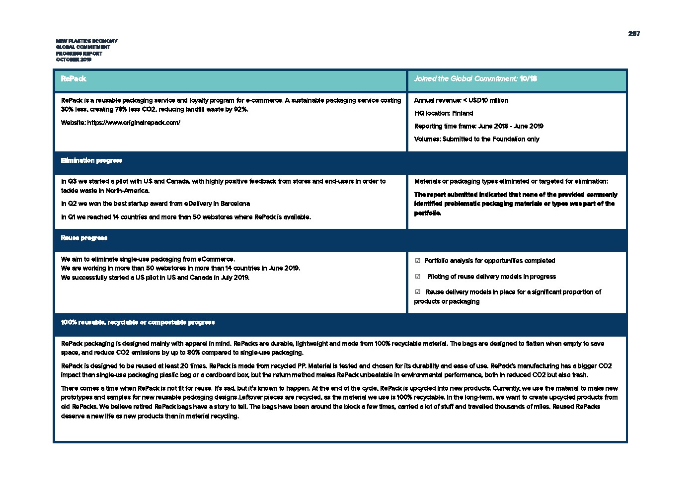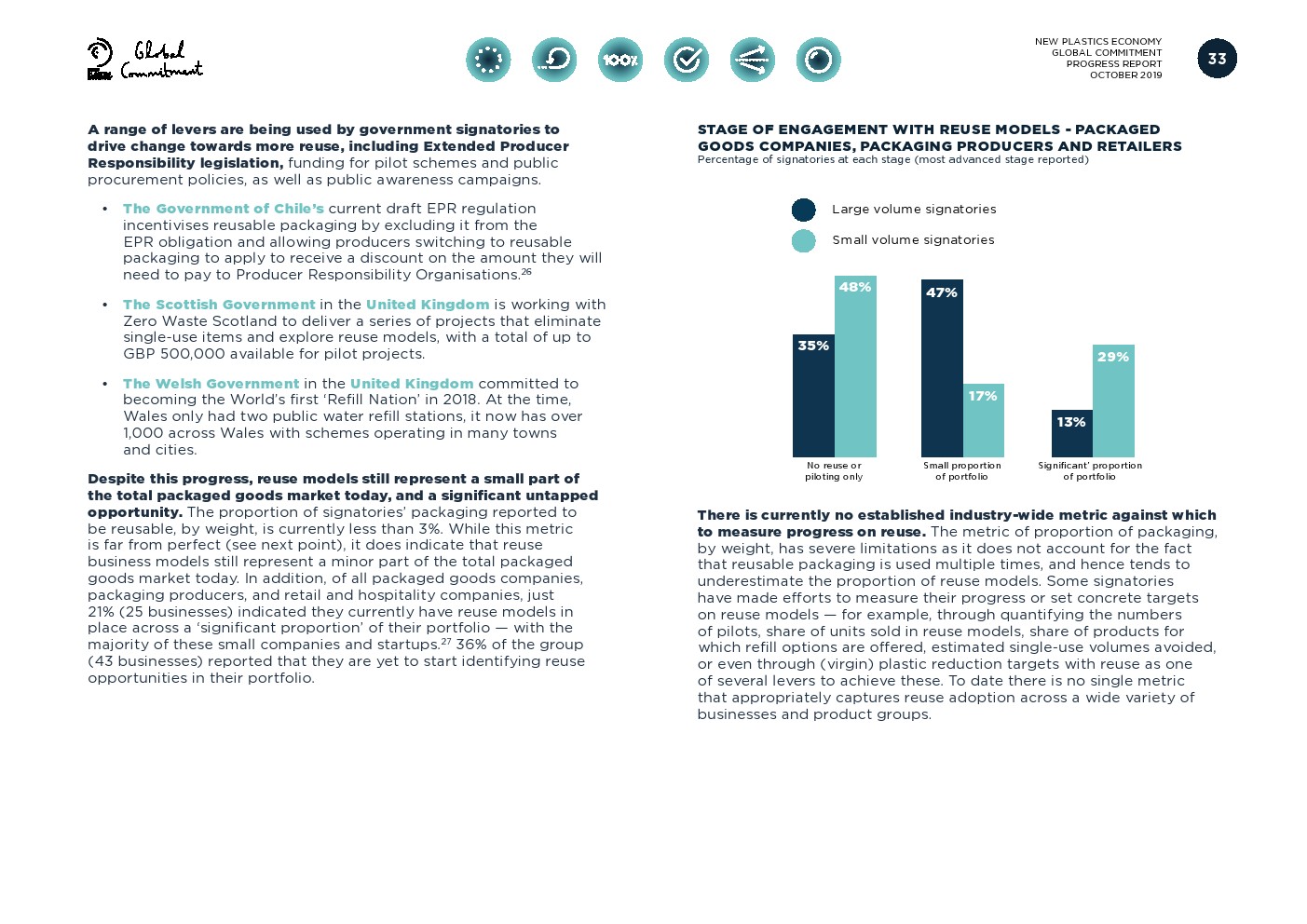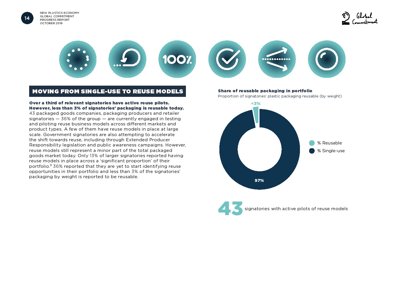 目前,只有不到3%的包装是可重复使用。全球有43家包装商品公司、包装生产商和零售商从事跨市场和产品类型的重复使用模型测试和试验。