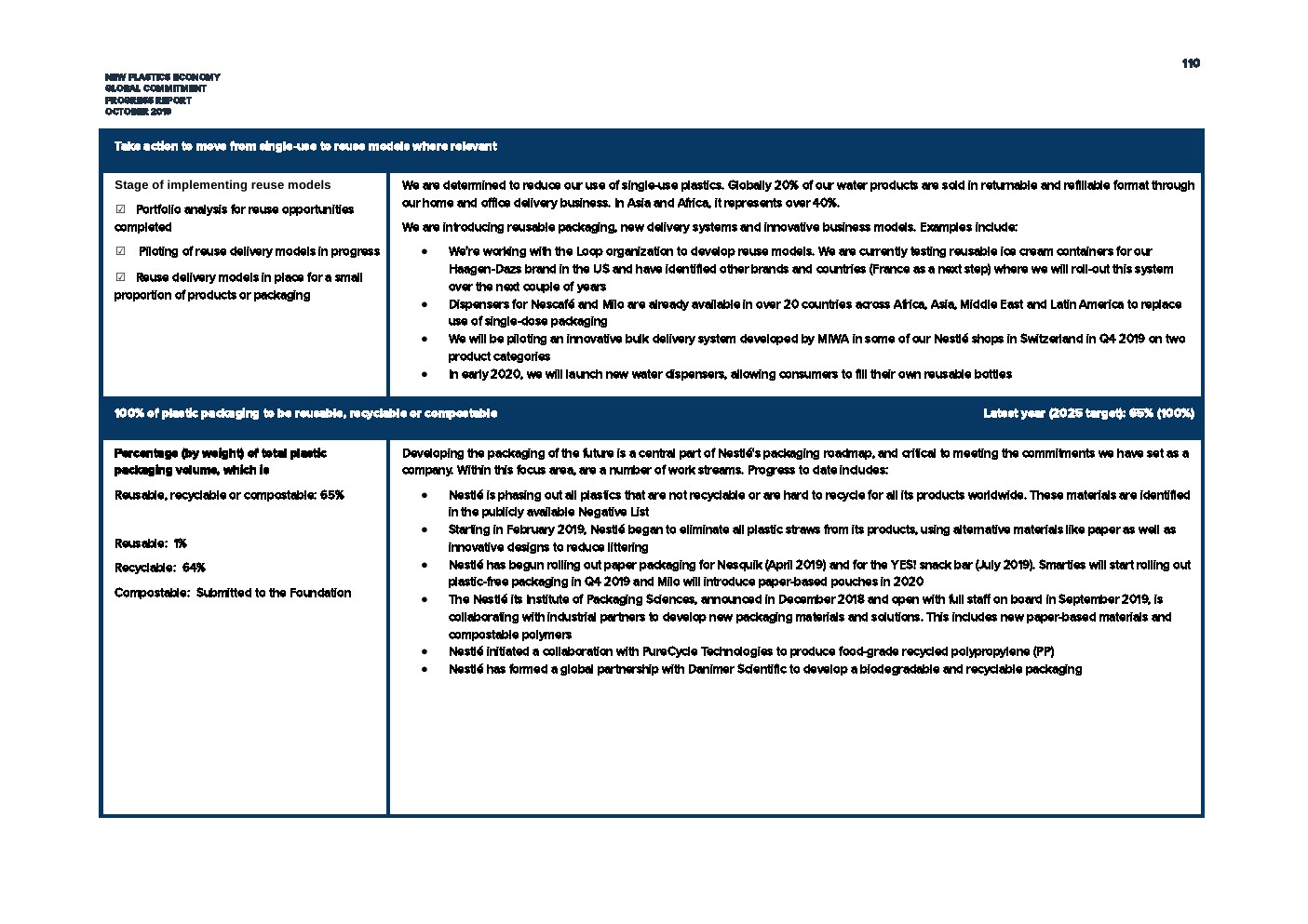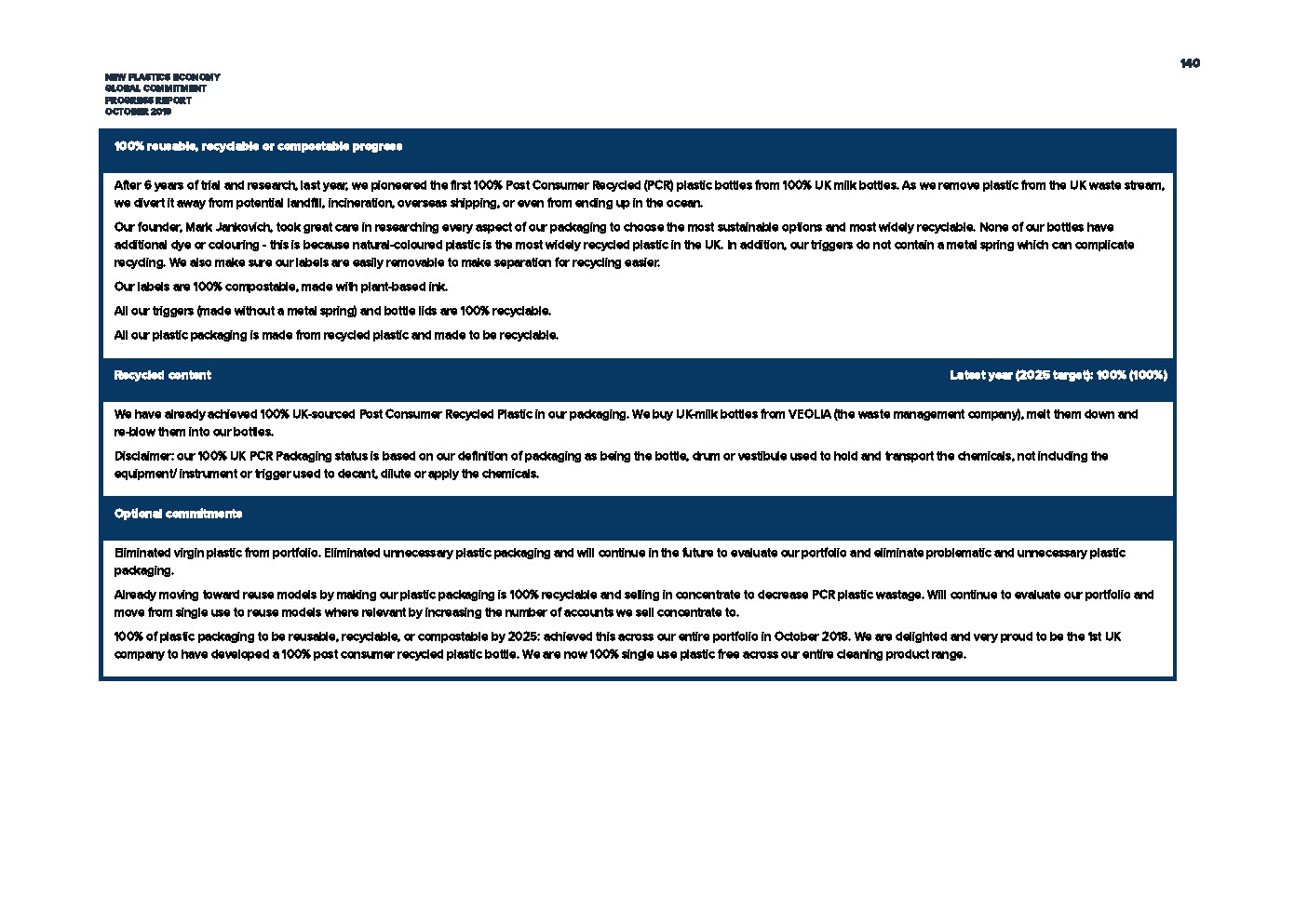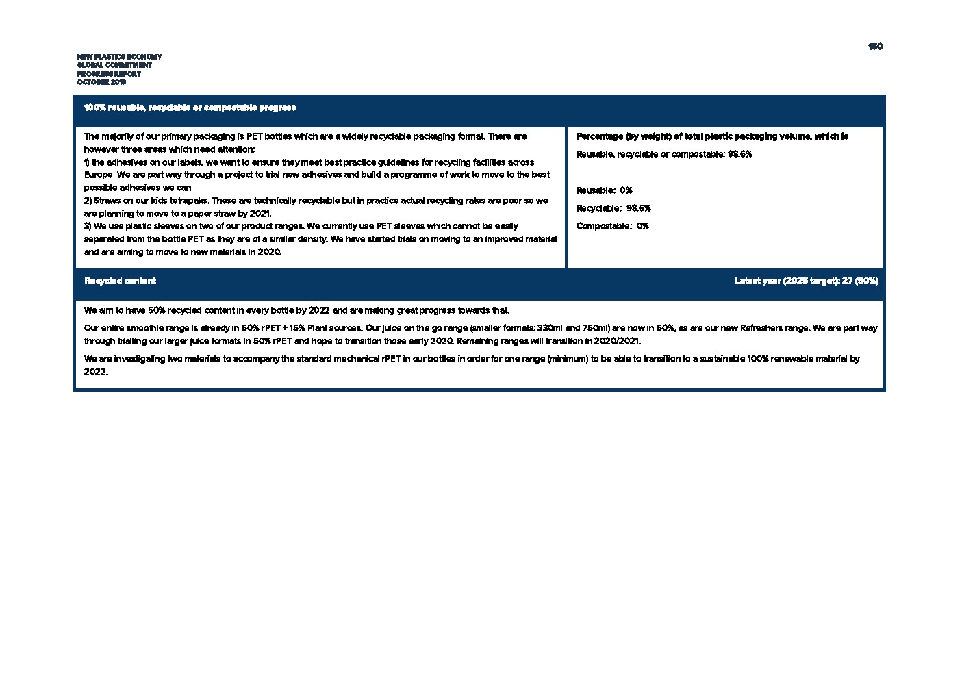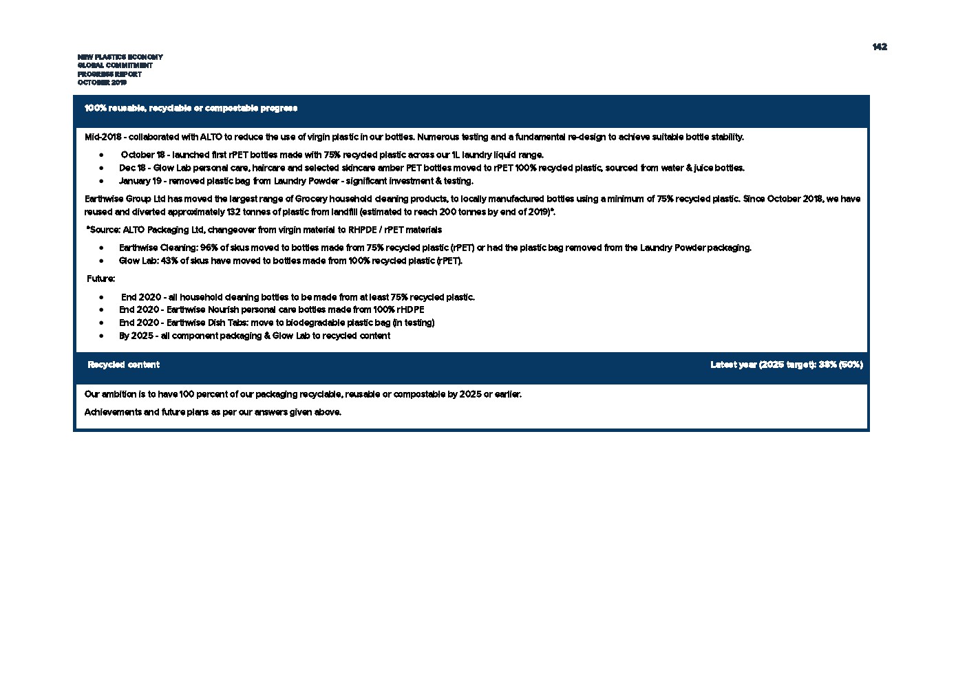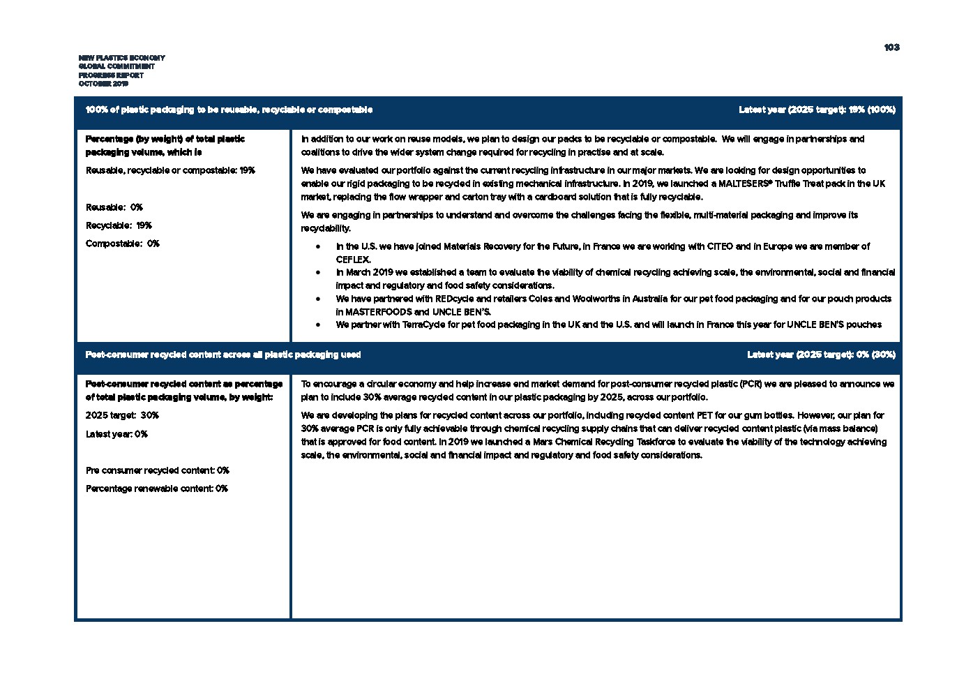 目前,60%的塑料包装是可重复使用、可回收或堆肥的。承诺计划在2025年实现100%可重复使用、可循环再造或可堆肥塑料包装。