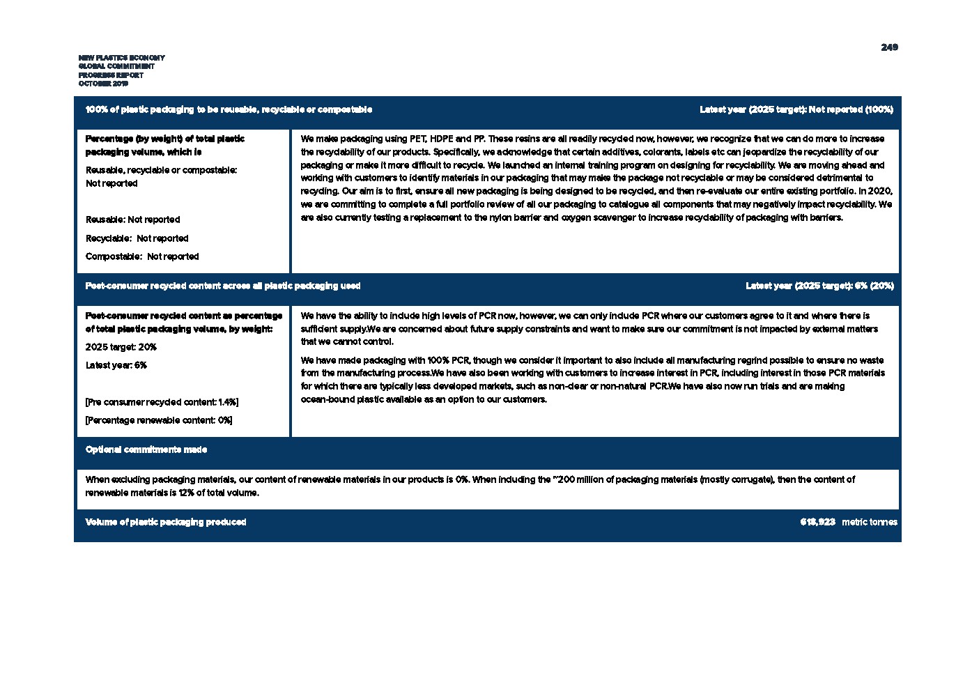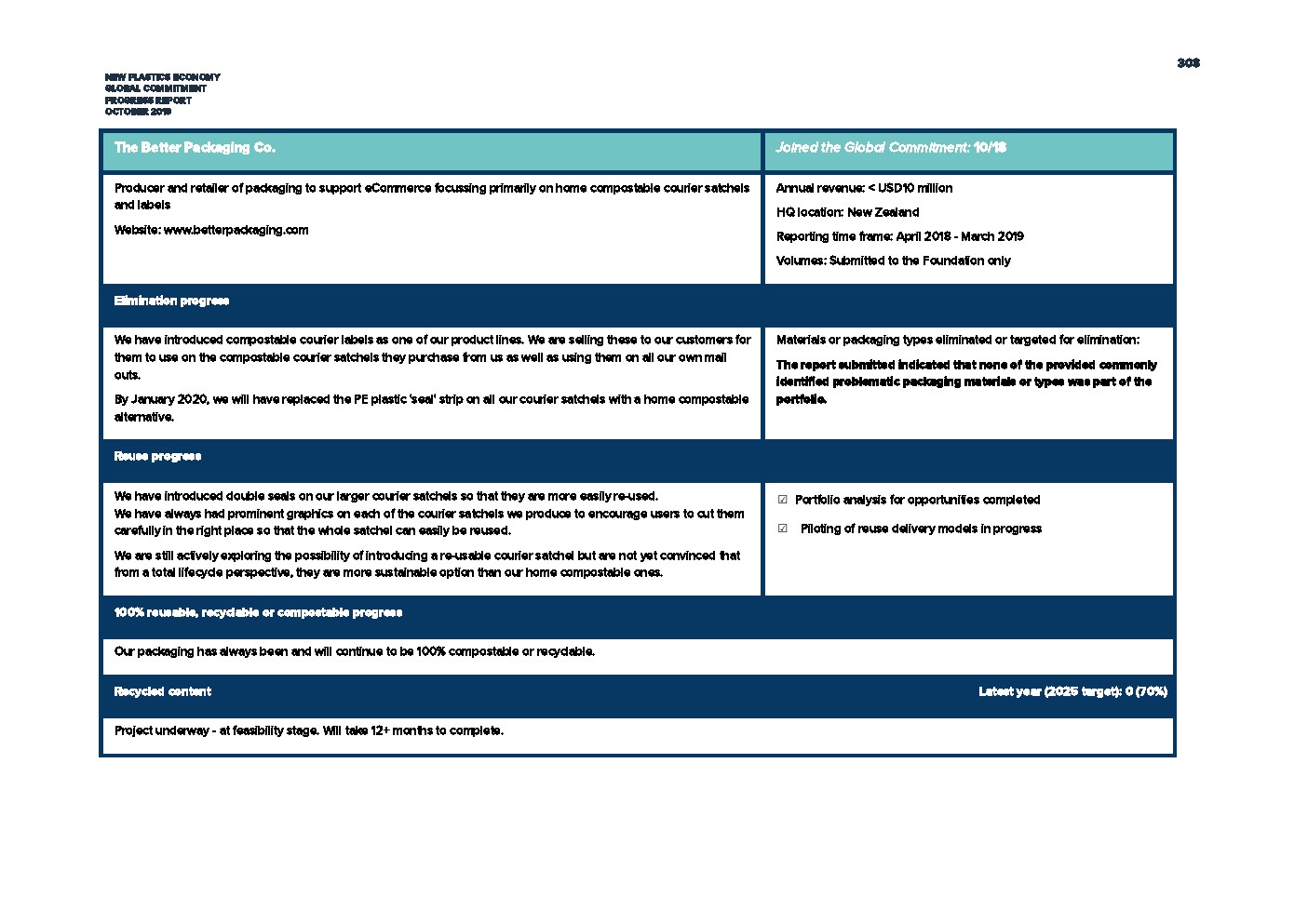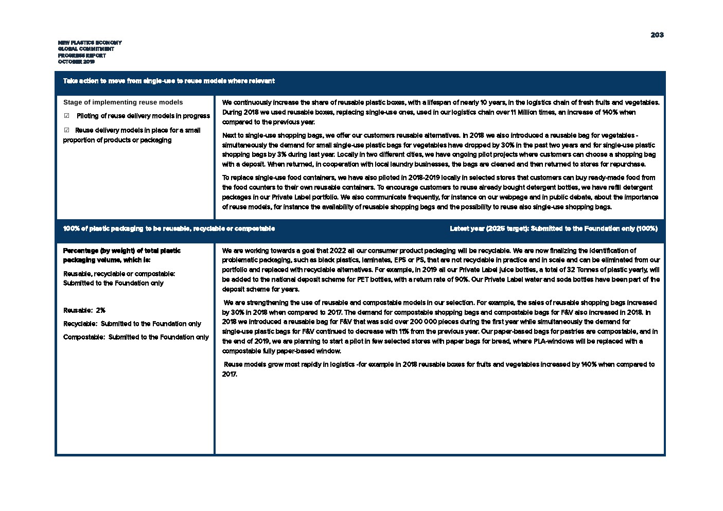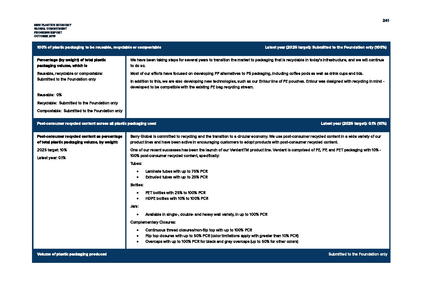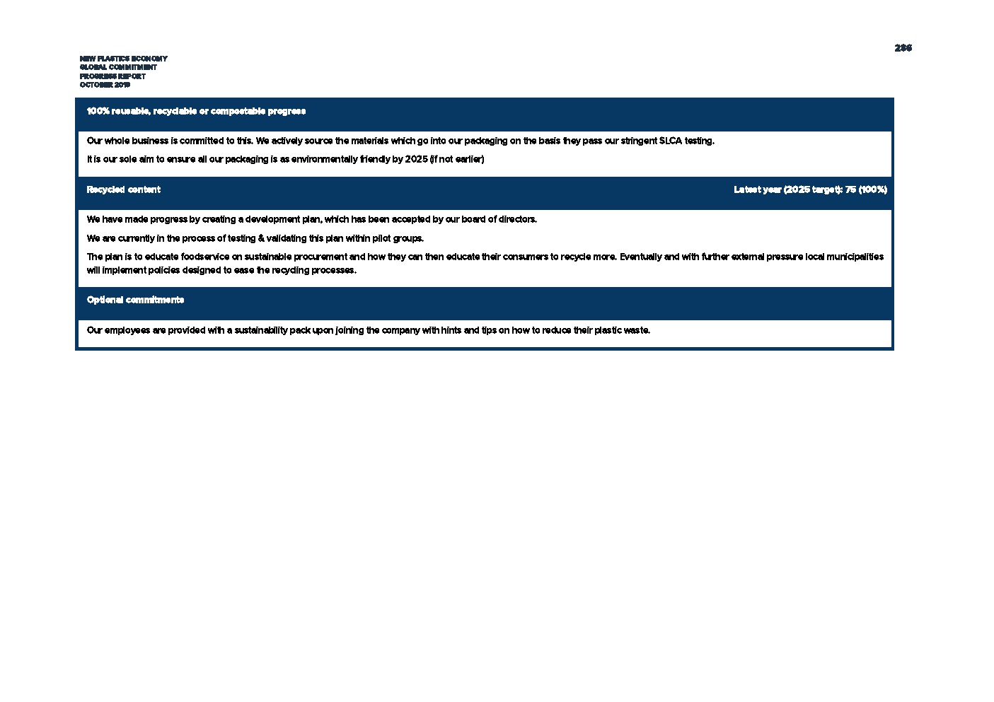 目前,60%的塑料包装是可重复使用、可回收或堆肥的。承诺计划在2025年实现100%可重复使用、可循环再造或可堆肥塑料包装。