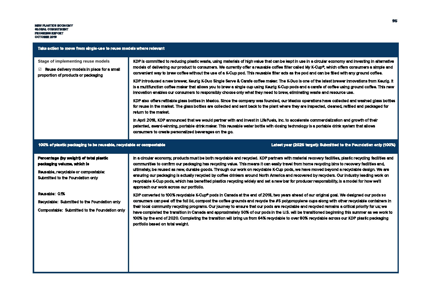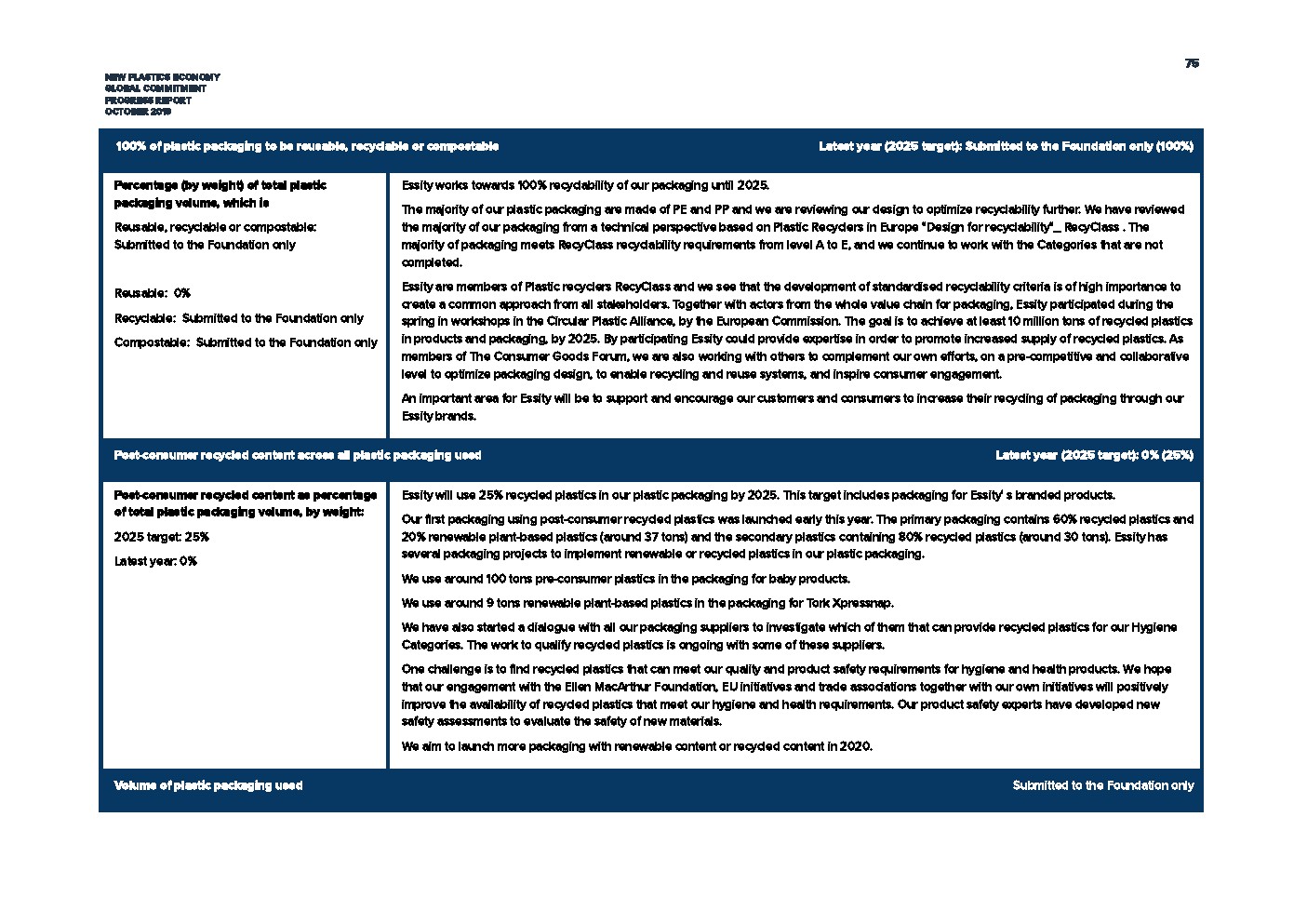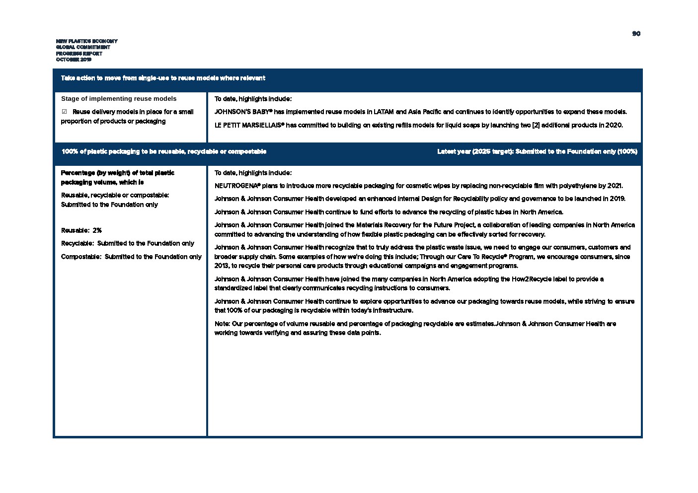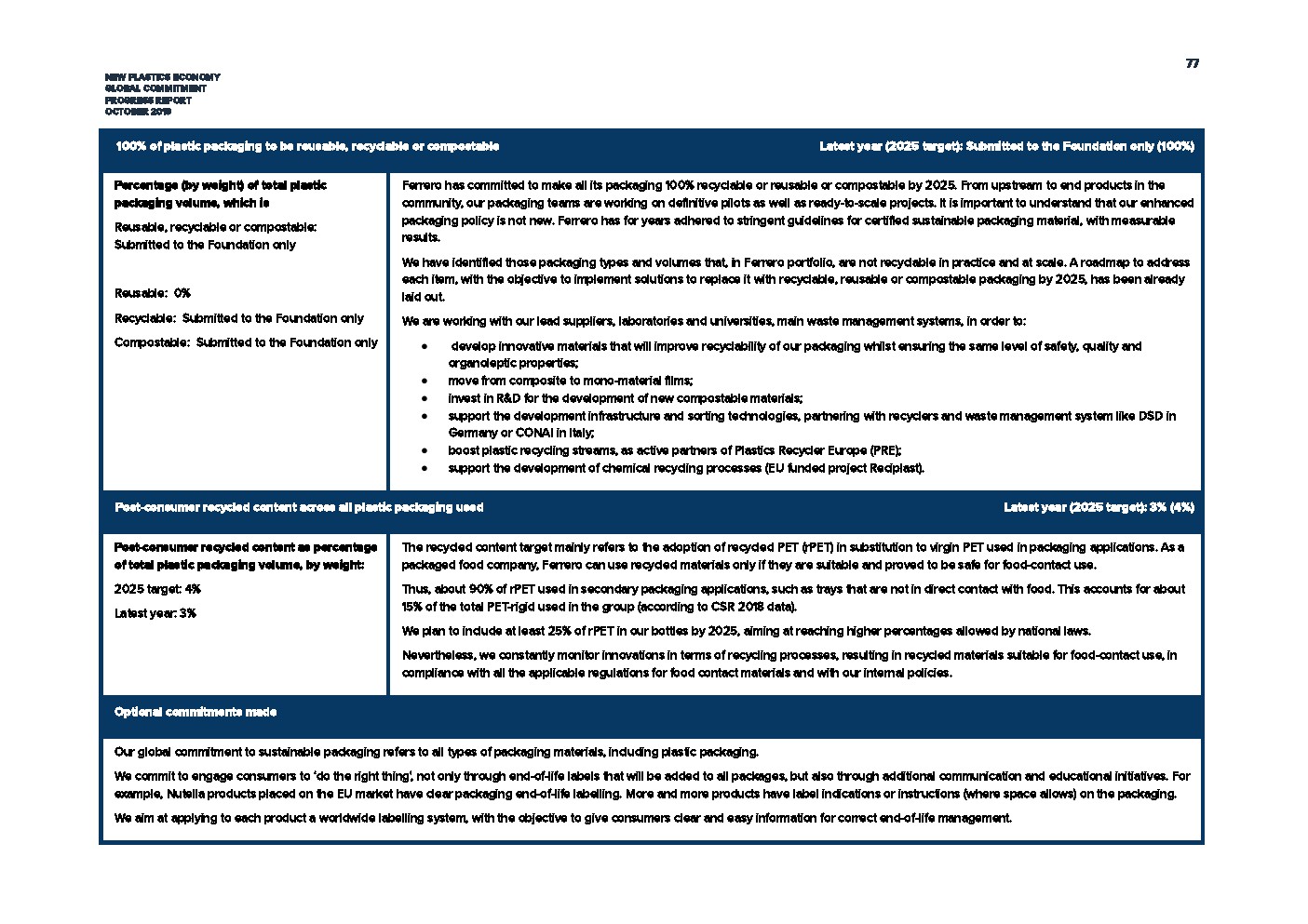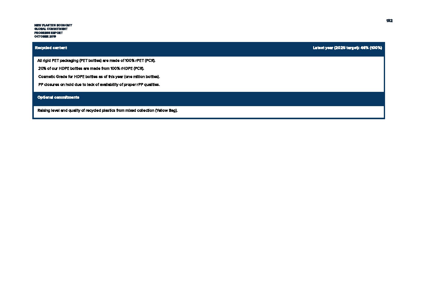 目前,60%的塑料包装是可重复使用、可回收或堆肥的。承诺计划在2025年实现100%可重复使用、可循环再造或可堆肥塑料包装。