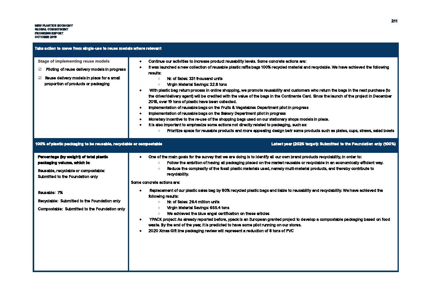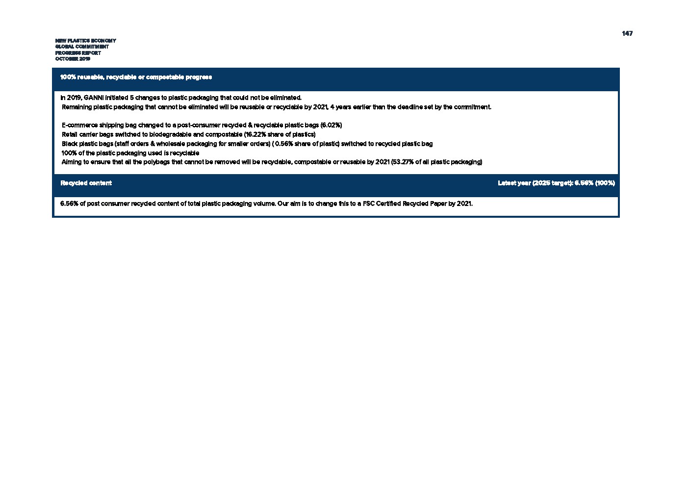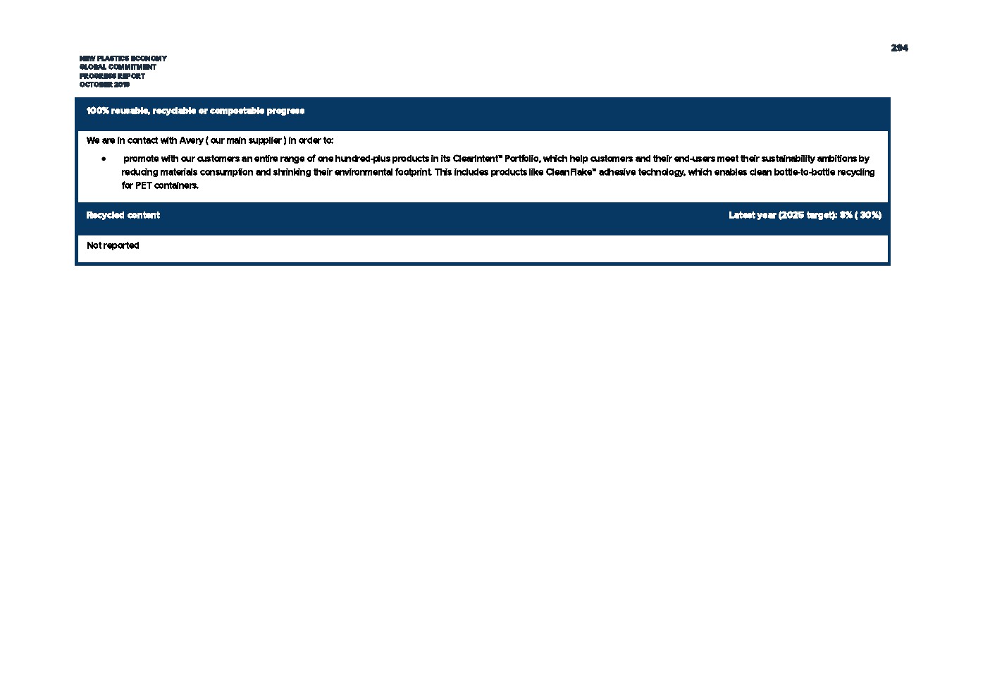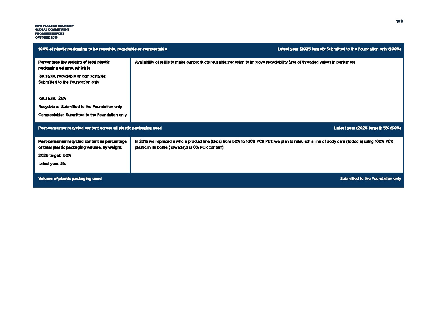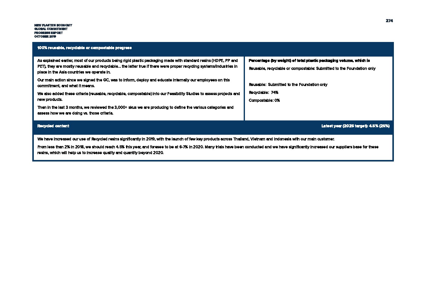 目前,60%的塑料包装是可重复使用、可回收或堆肥的。承诺计划在2025年实现100%可重复使用、可循环再造或可堆肥塑料包装。