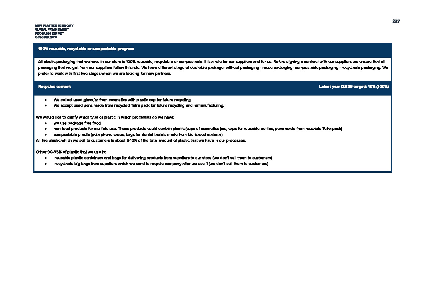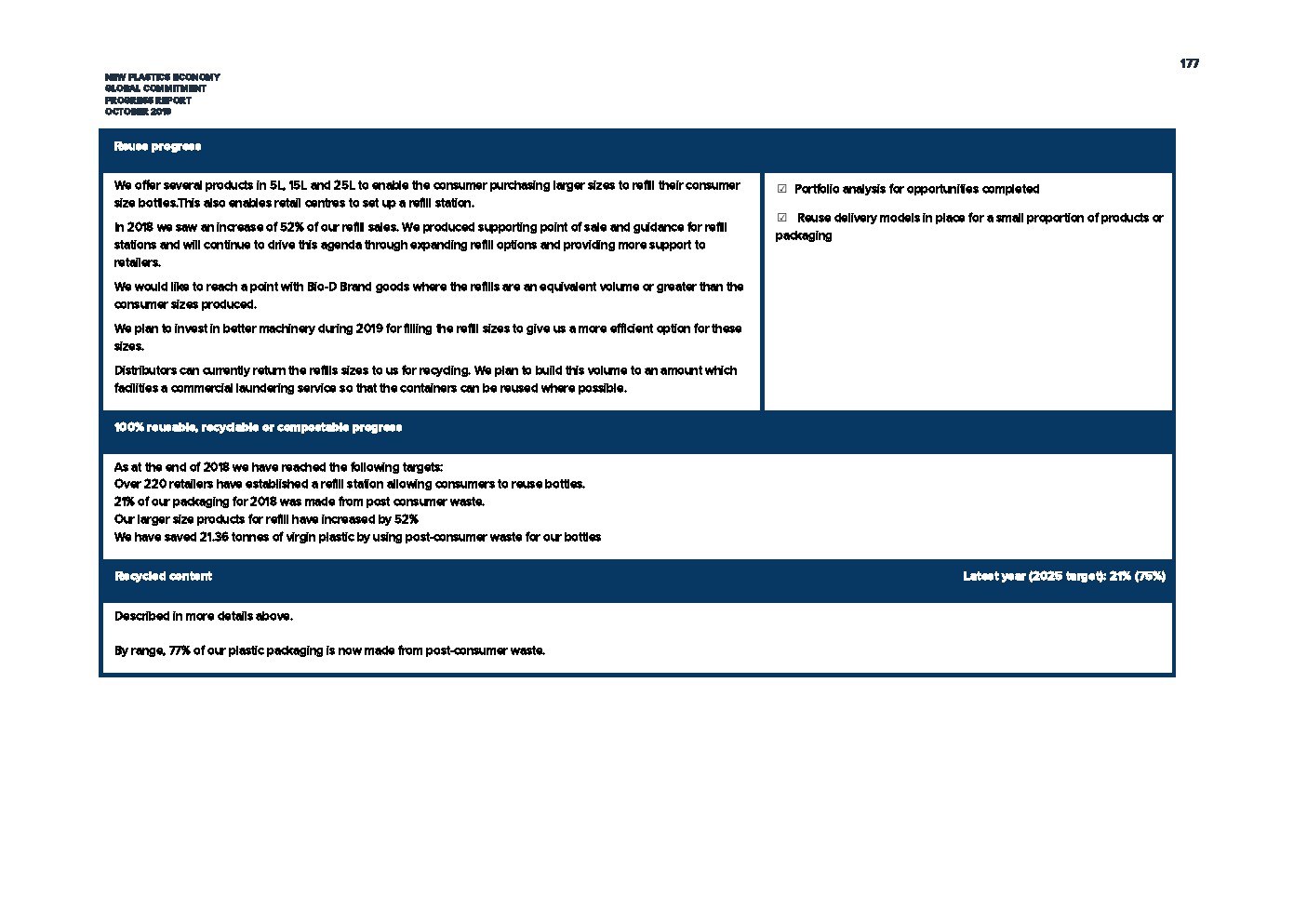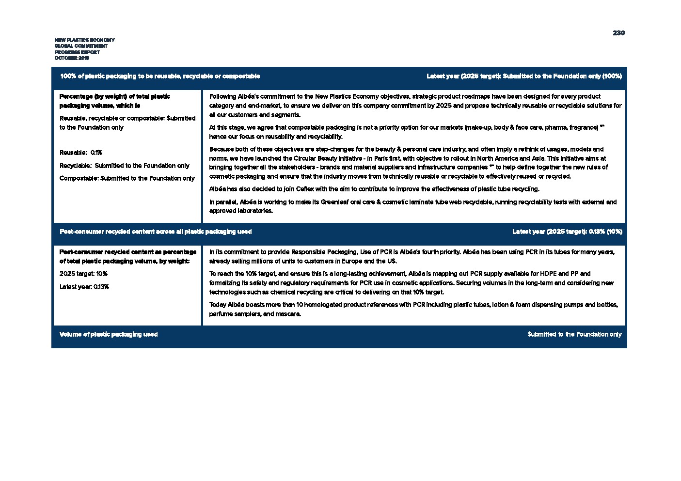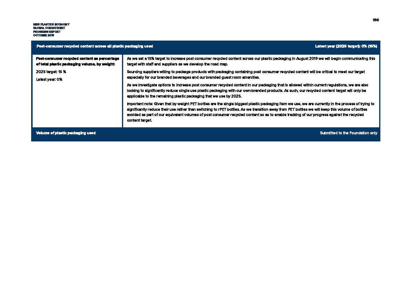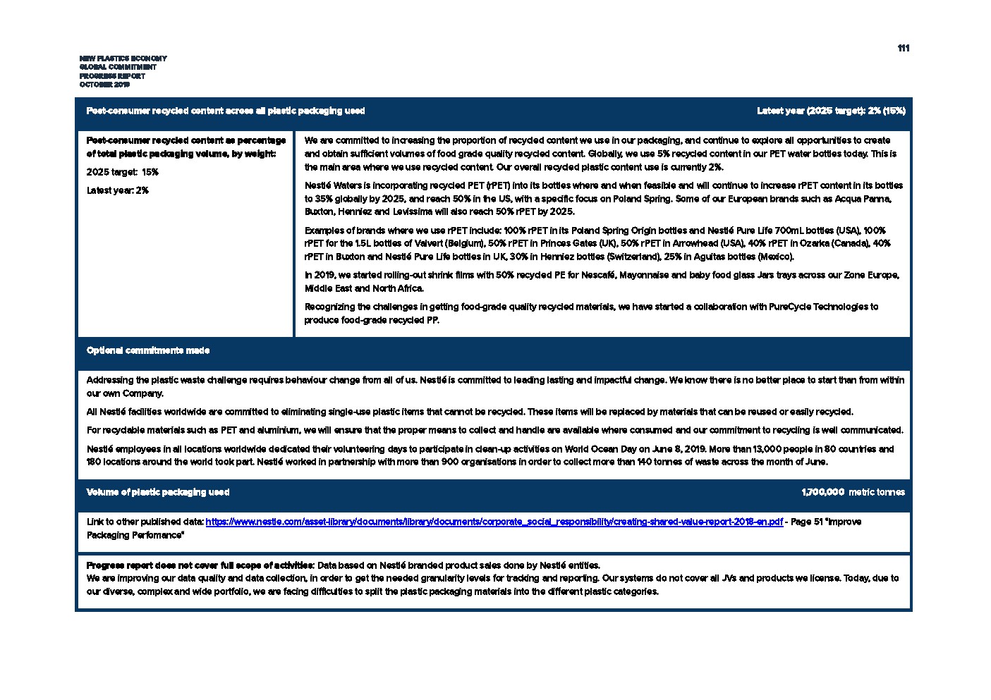 目前,60%的塑料包装是可重复使用、可回收或堆肥的。承诺计划在2025年实现100%可重复使用、可循环再造或可堆肥塑料包装。