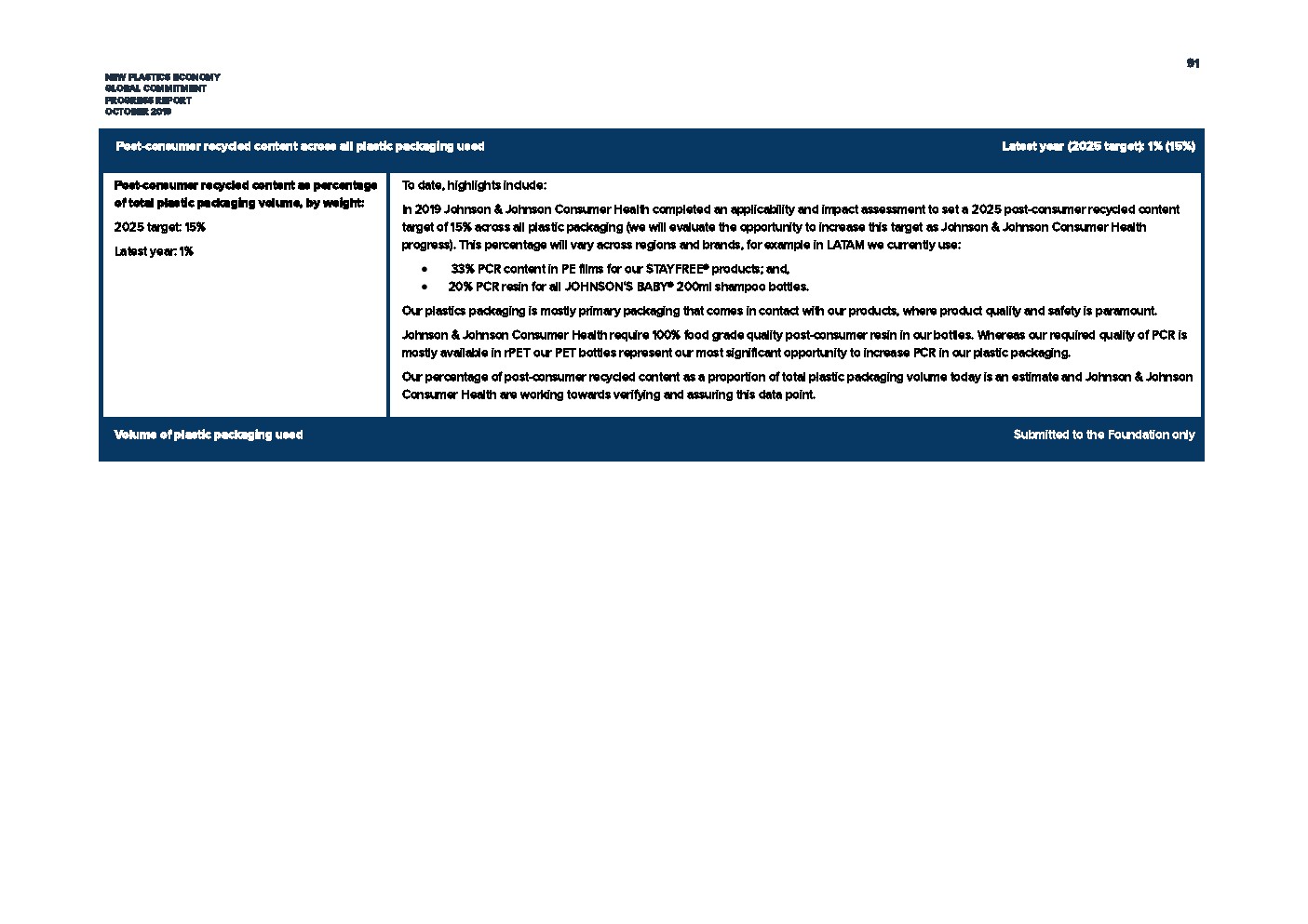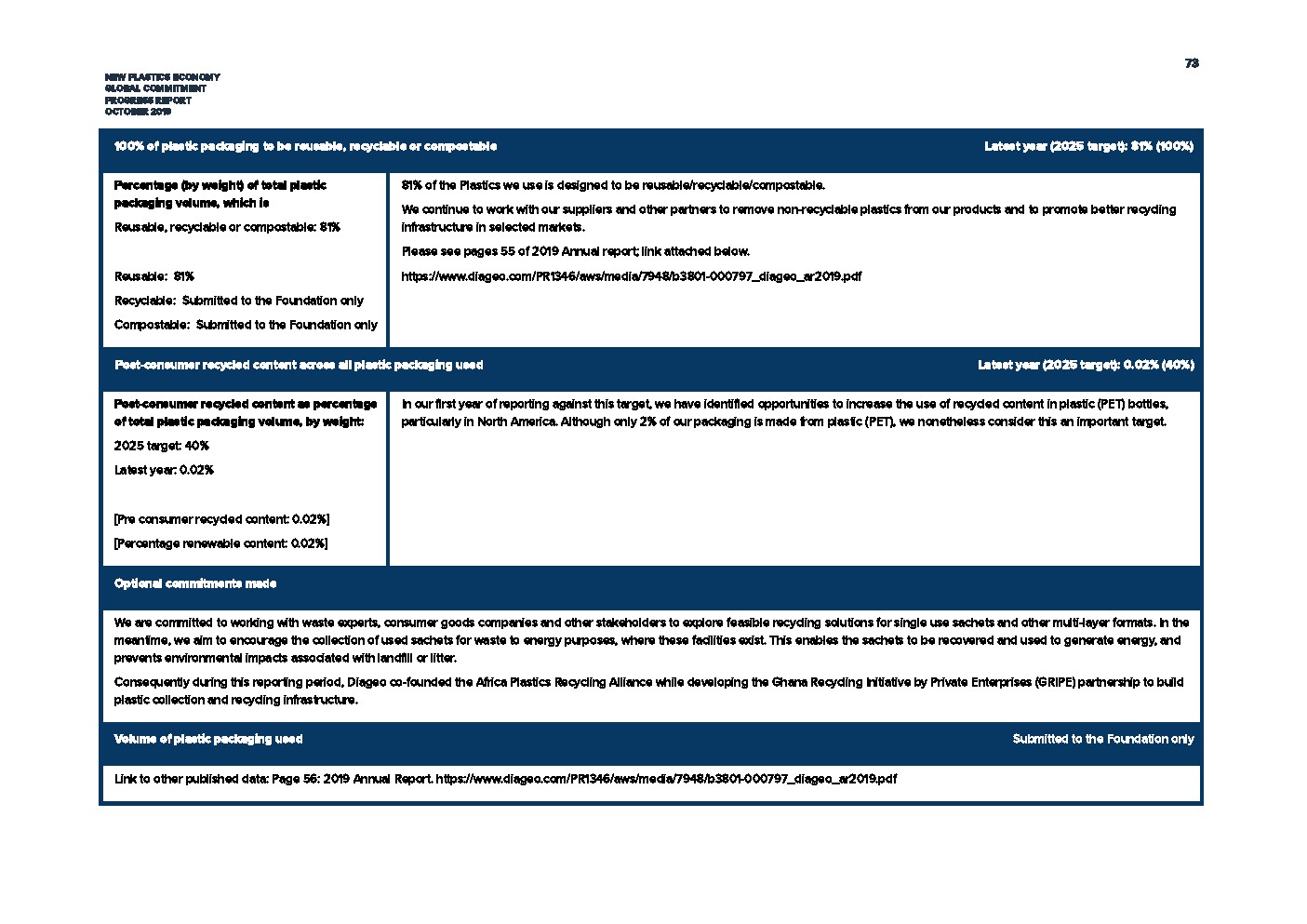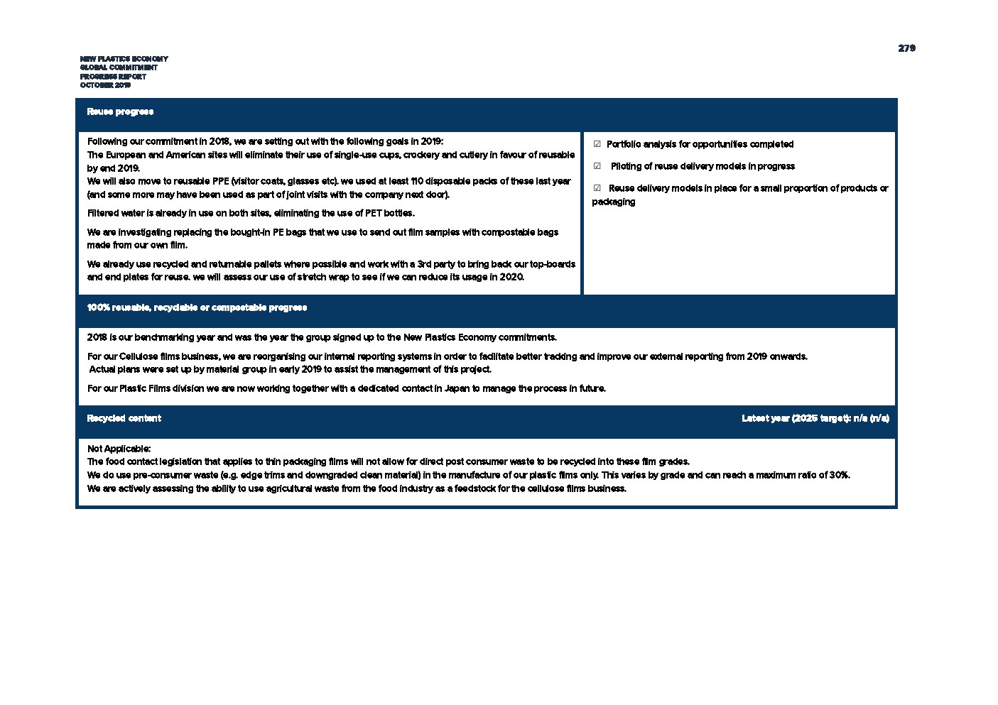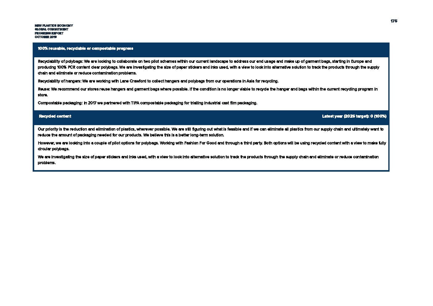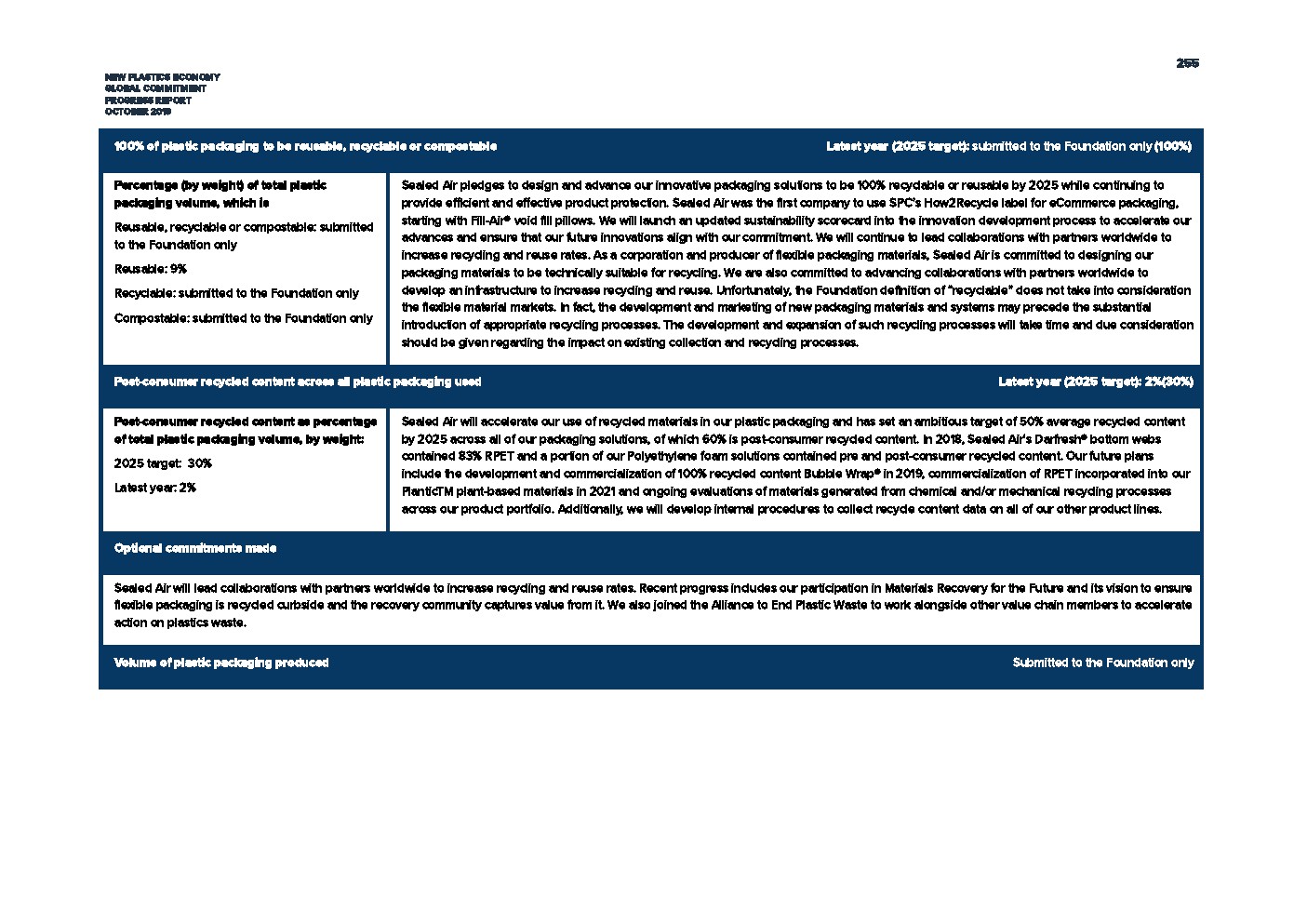 目前,60%的塑料包装是可重复使用、可回收或堆肥的。承诺计划在2025年实现100%可重复使用、可循环再造或可堆肥塑料包装。