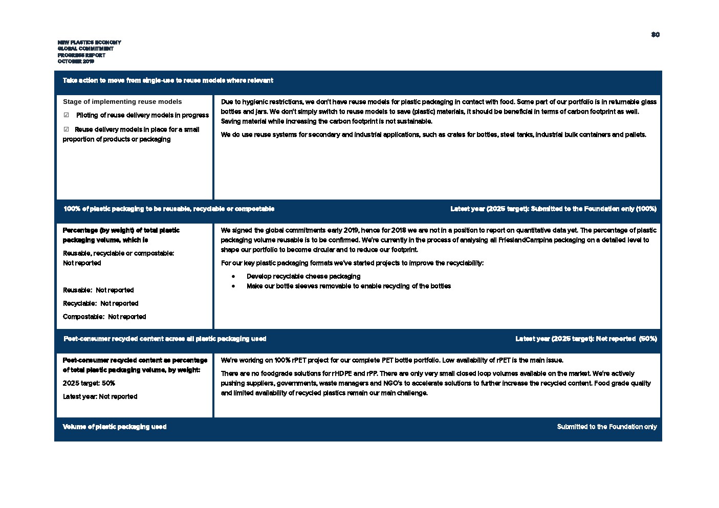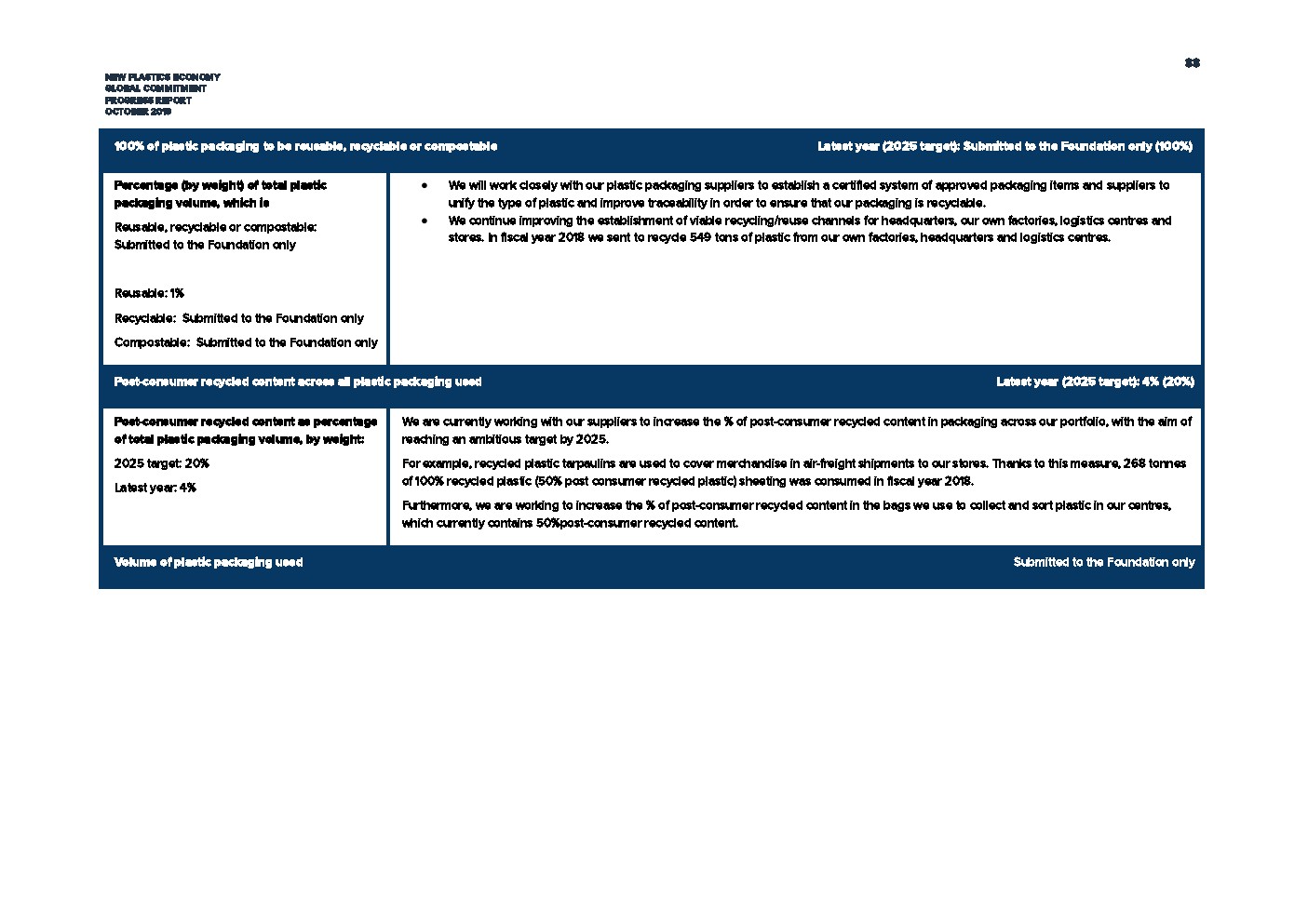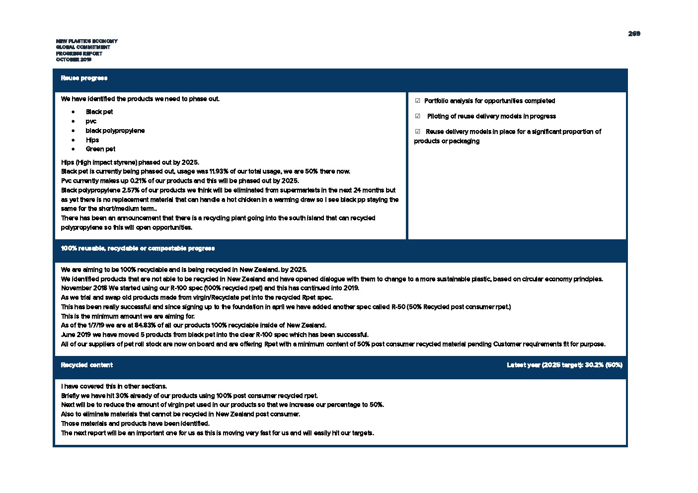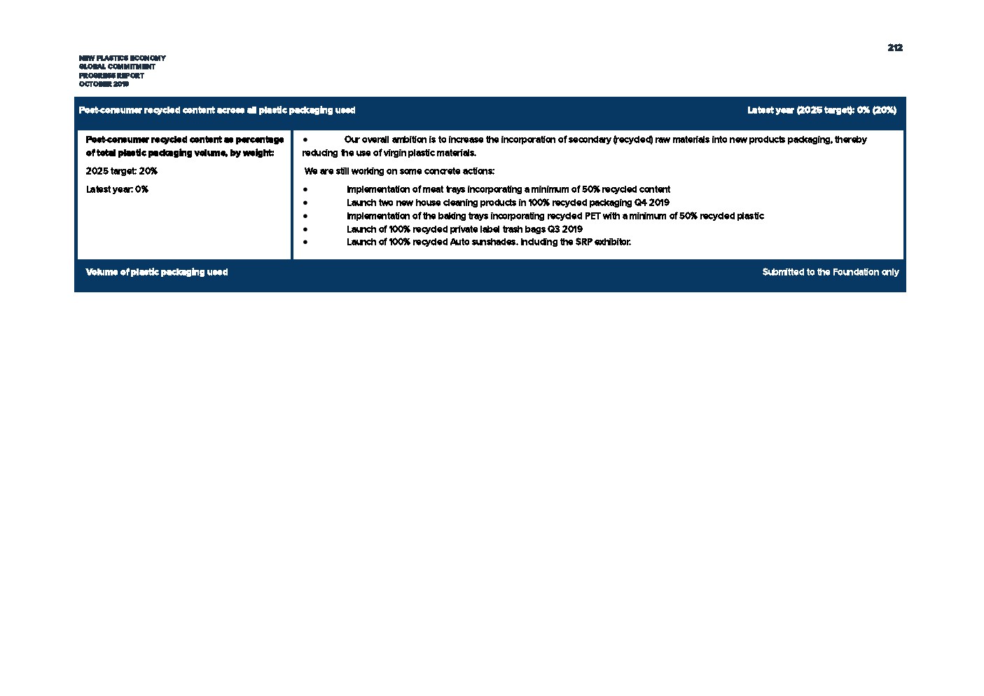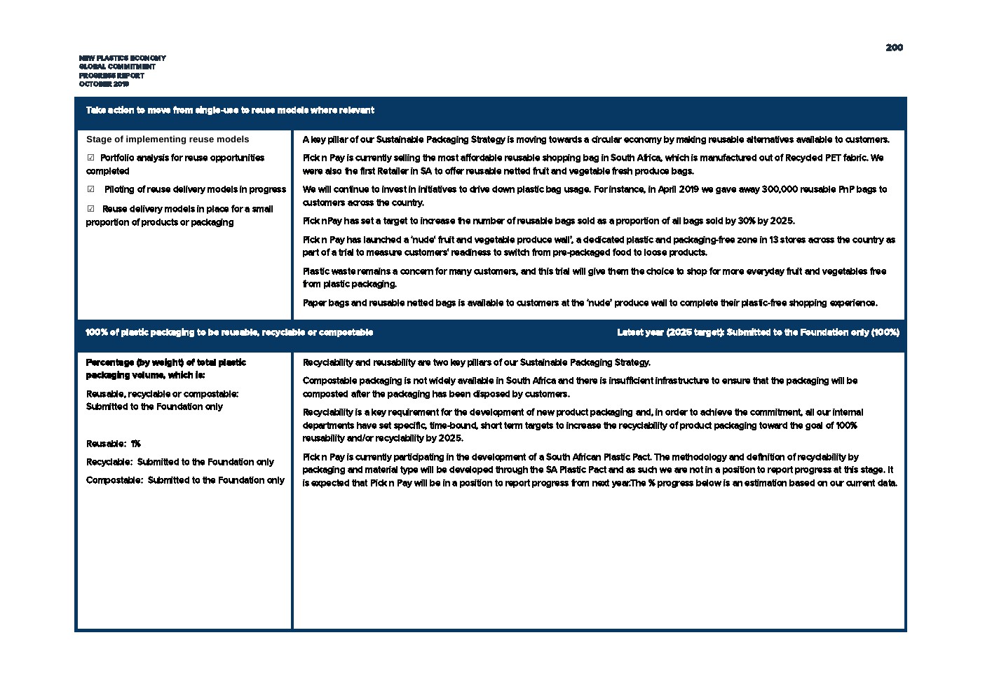 目前,60%的塑料包装是可重复使用、可回收或堆肥的。承诺计划在2025年实现100%可重复使用、可循环再造或可堆肥塑料包装。