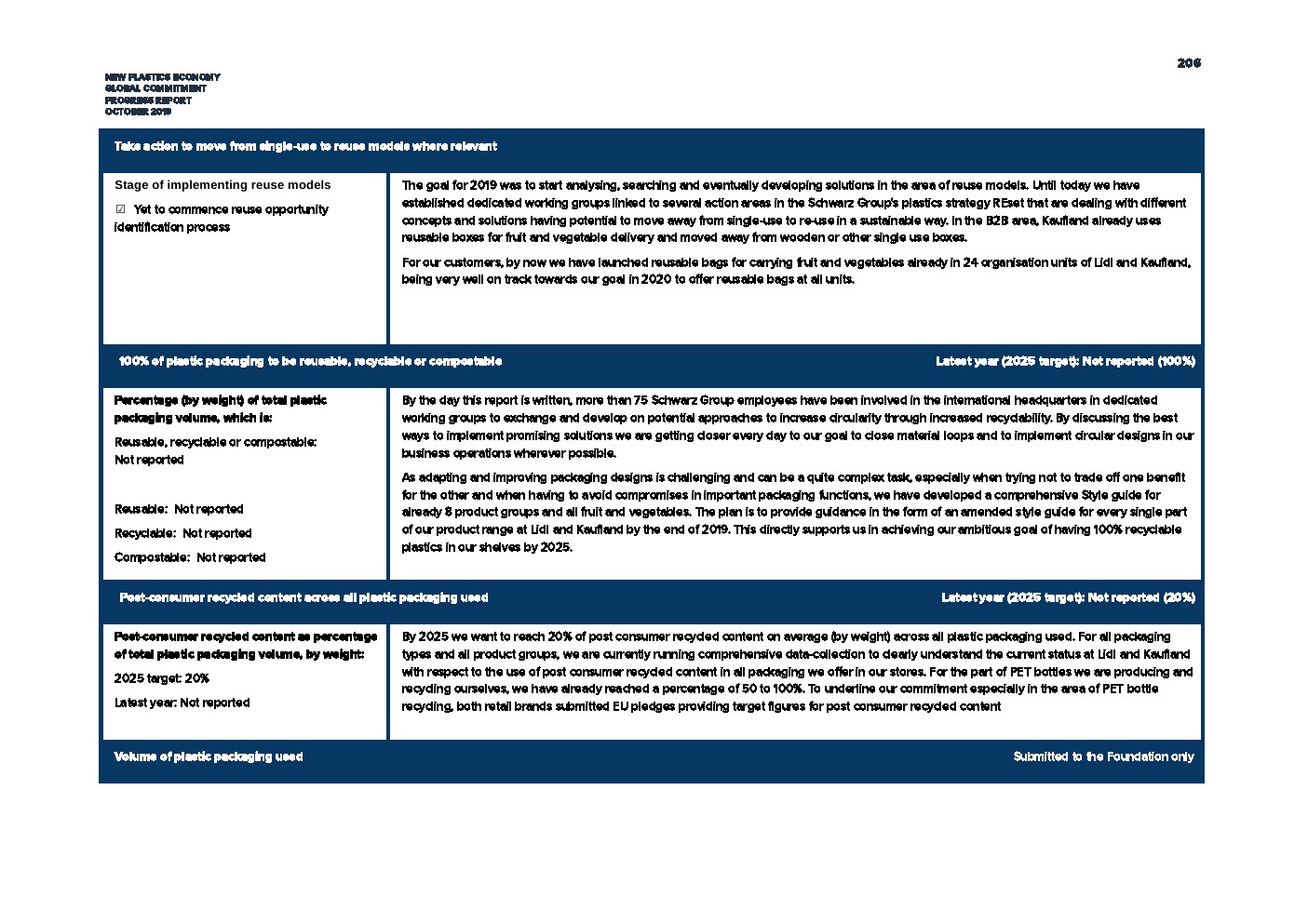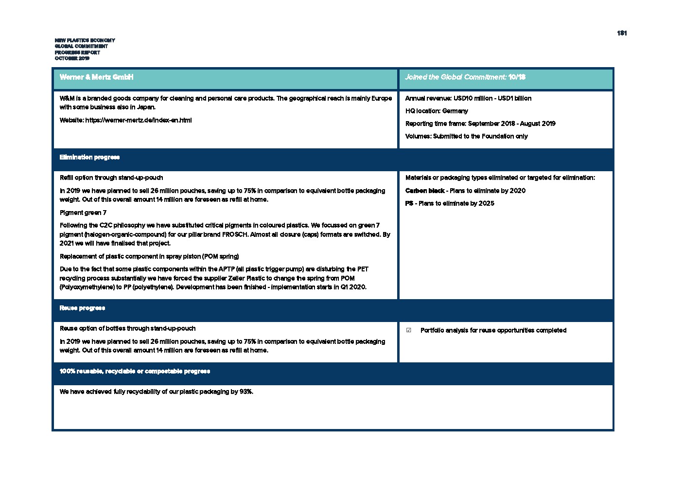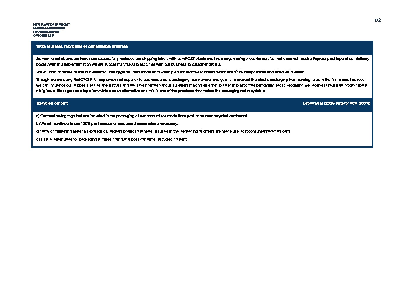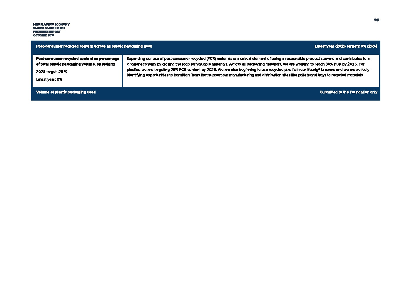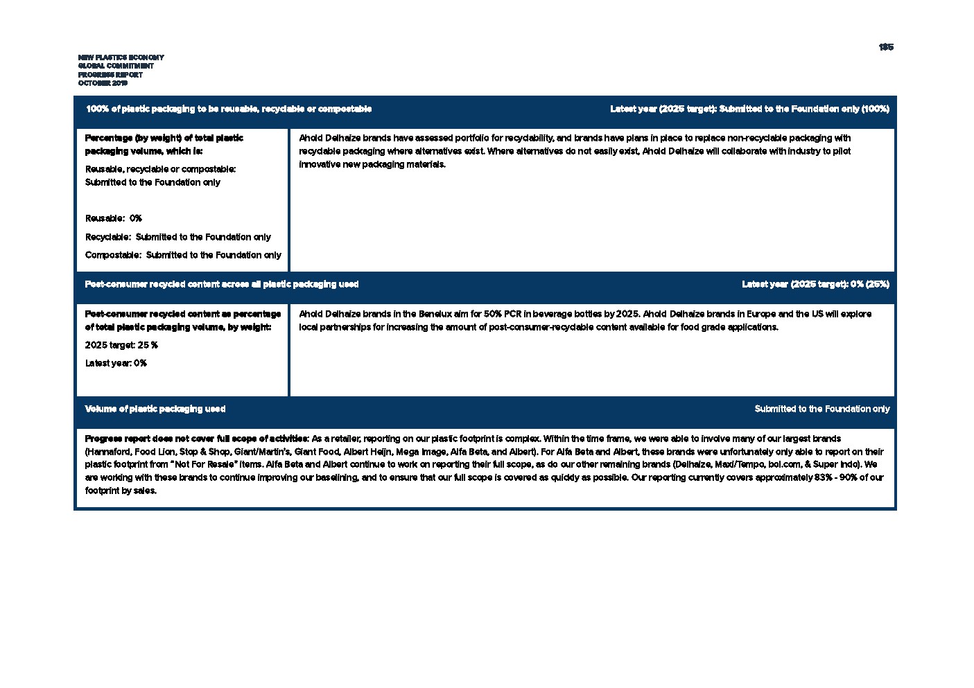 目前,60%的塑料包装是可重复使用、可回收或堆肥的。承诺计划在2025年实现100%可重复使用、可循环再造或可堆肥塑料包装。