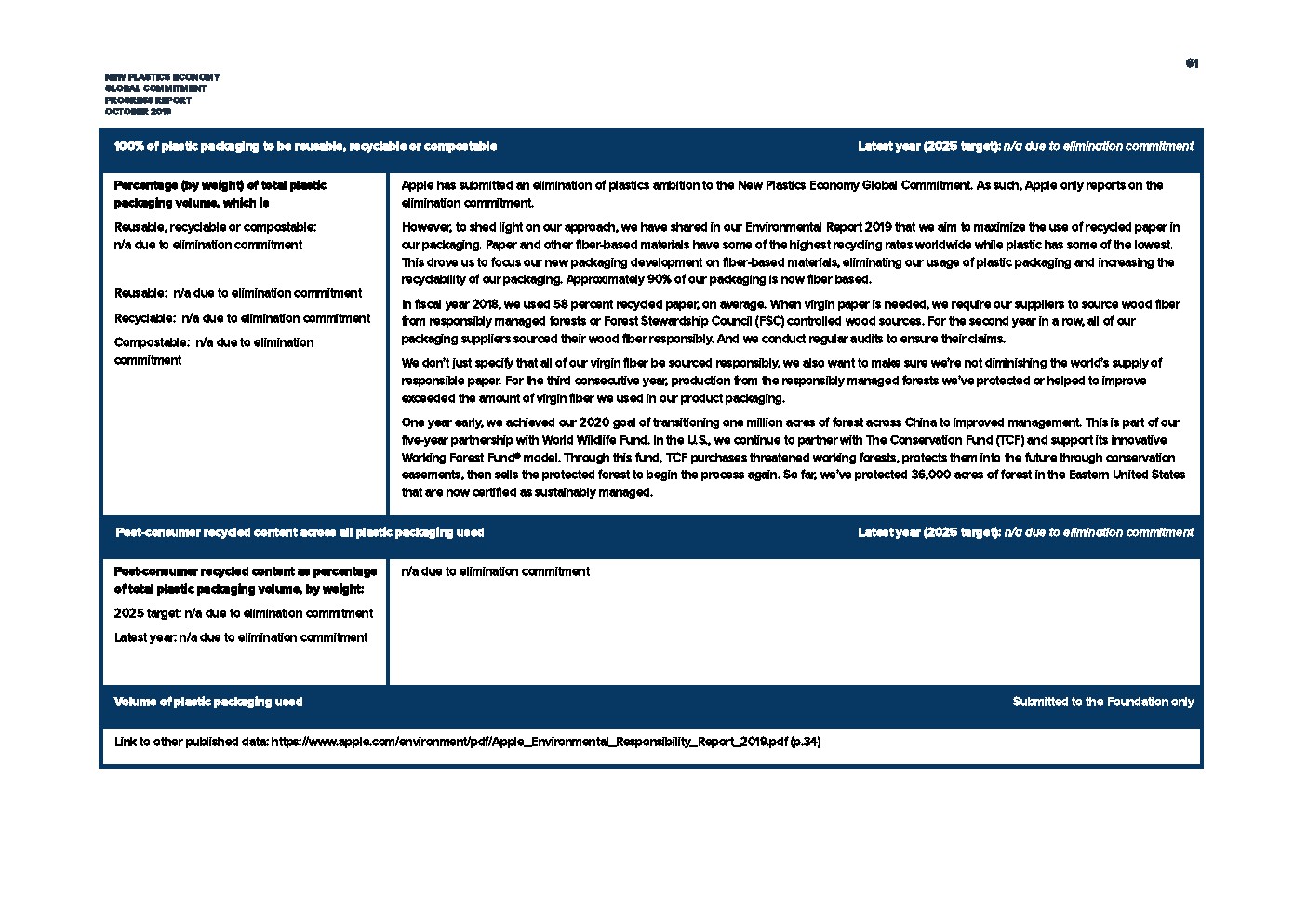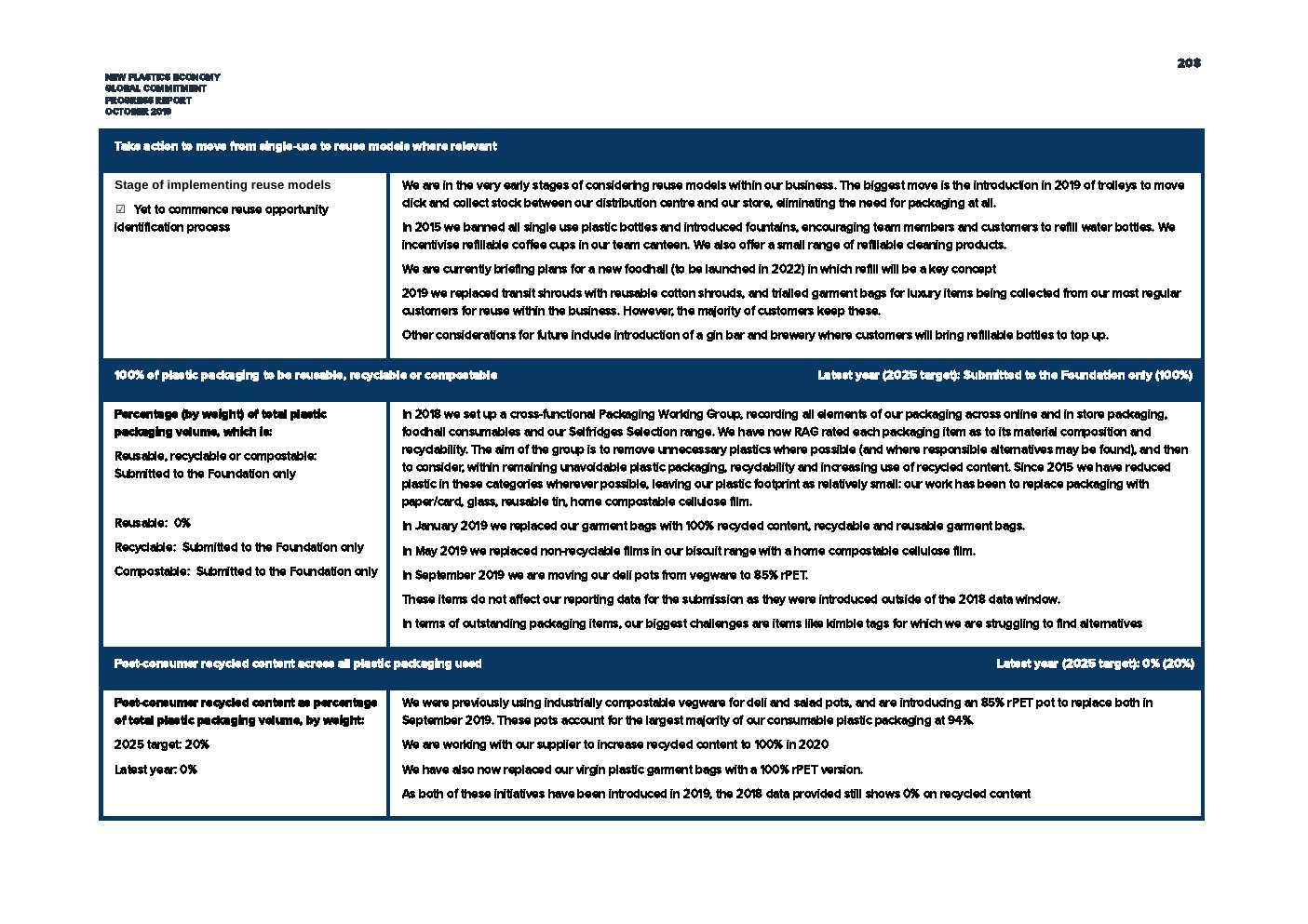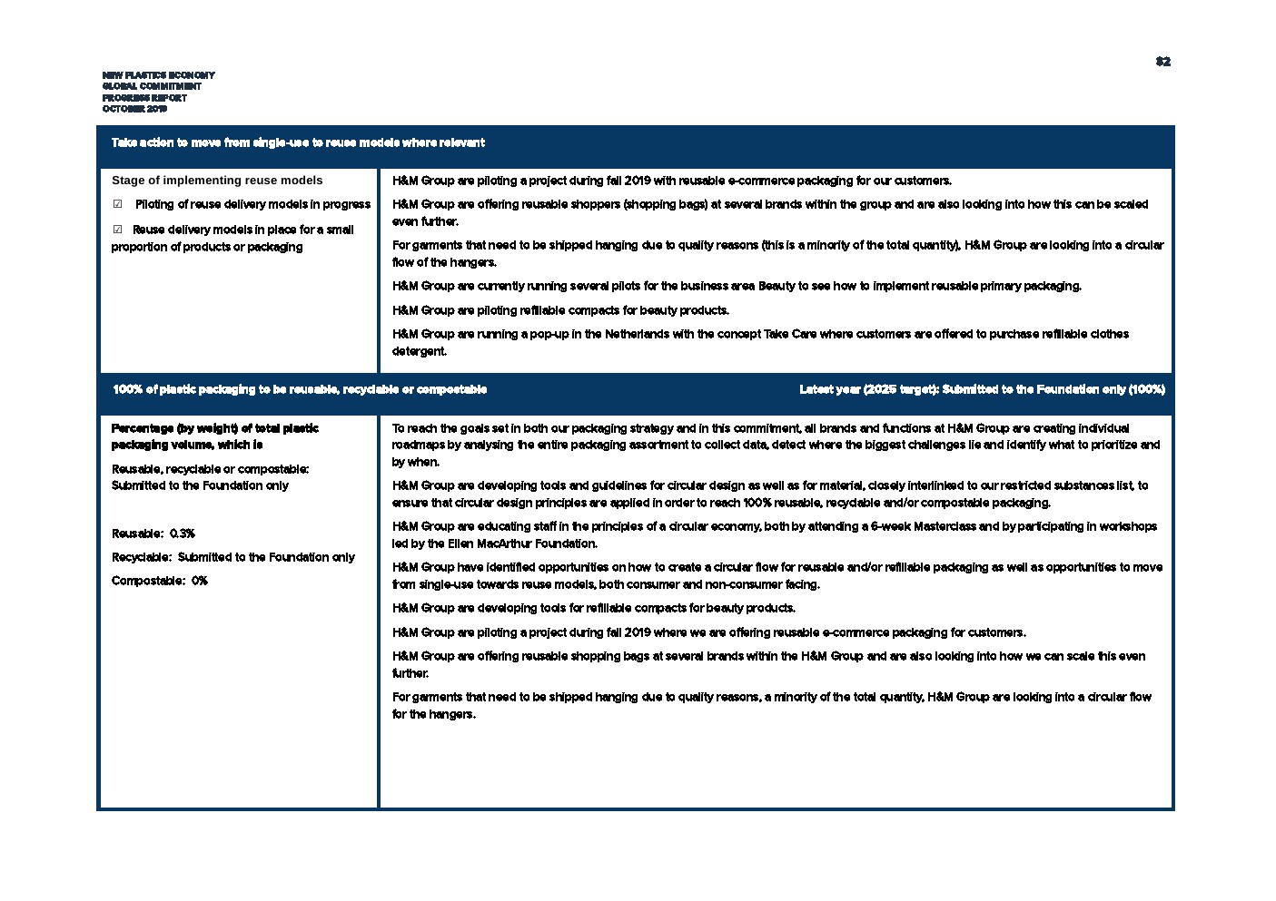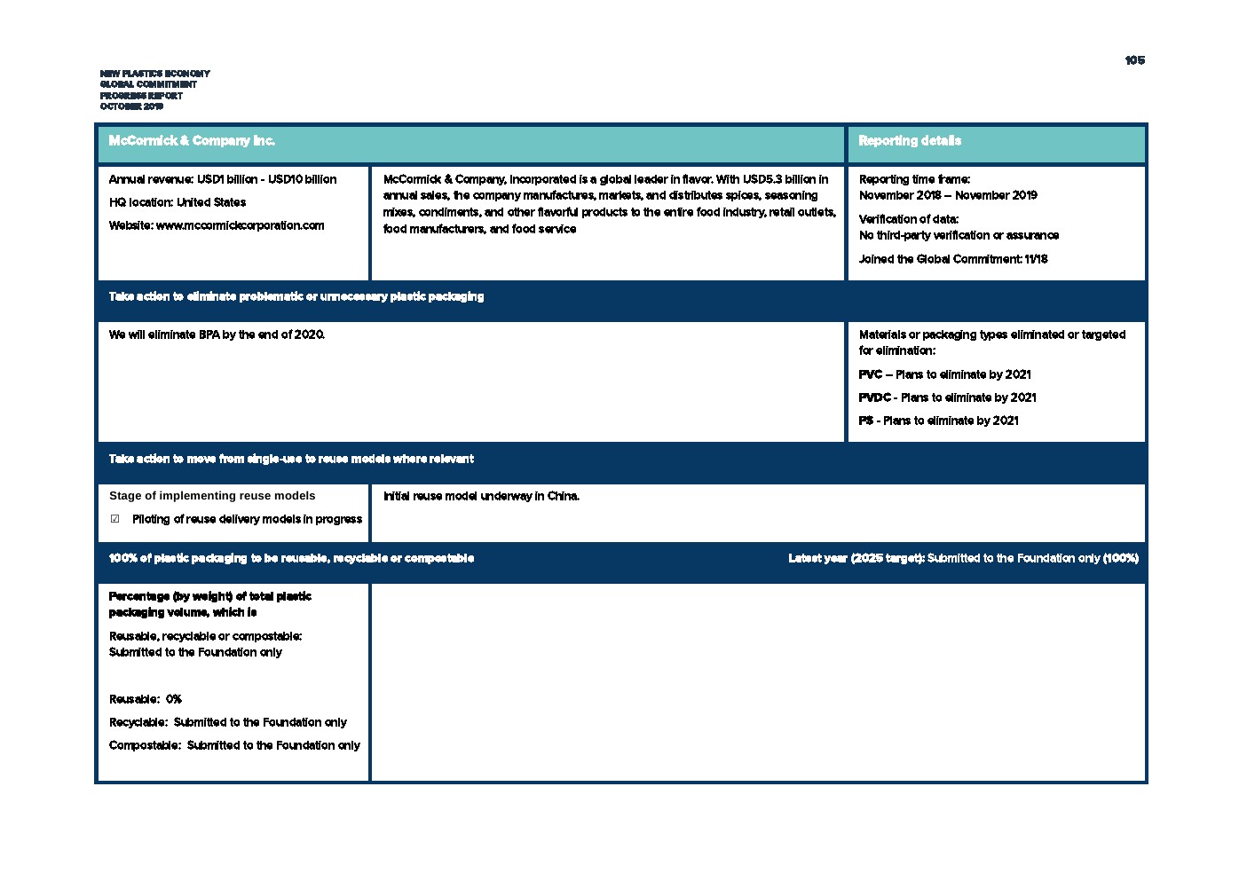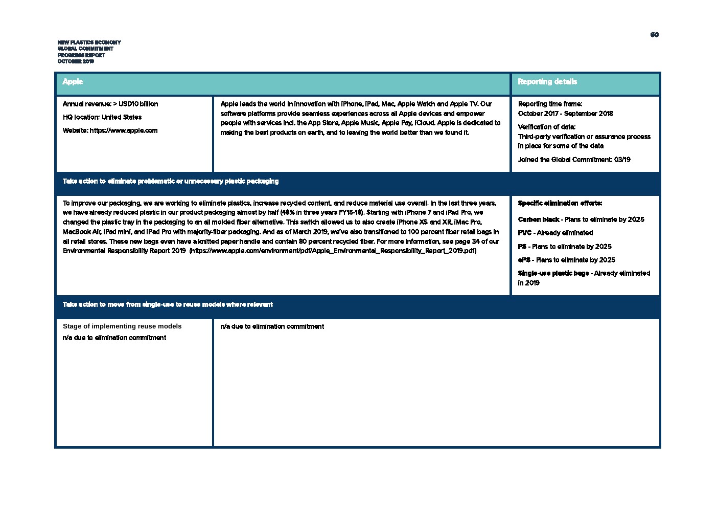 目前,60%的塑料包装是可重复使用、可回收或堆肥的。承诺计划在2025年实现100%可重复使用、可循环再造或可堆肥塑料包装。