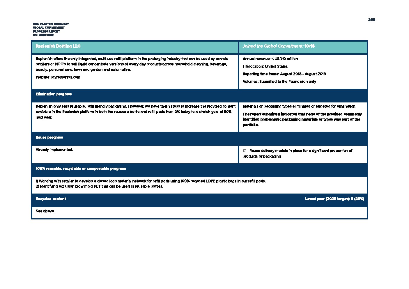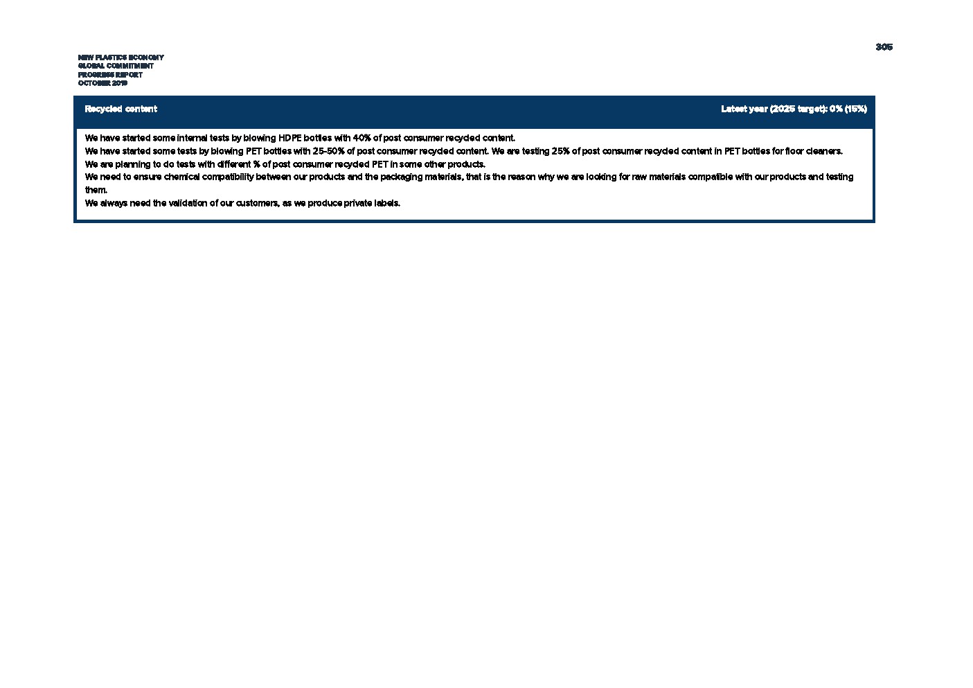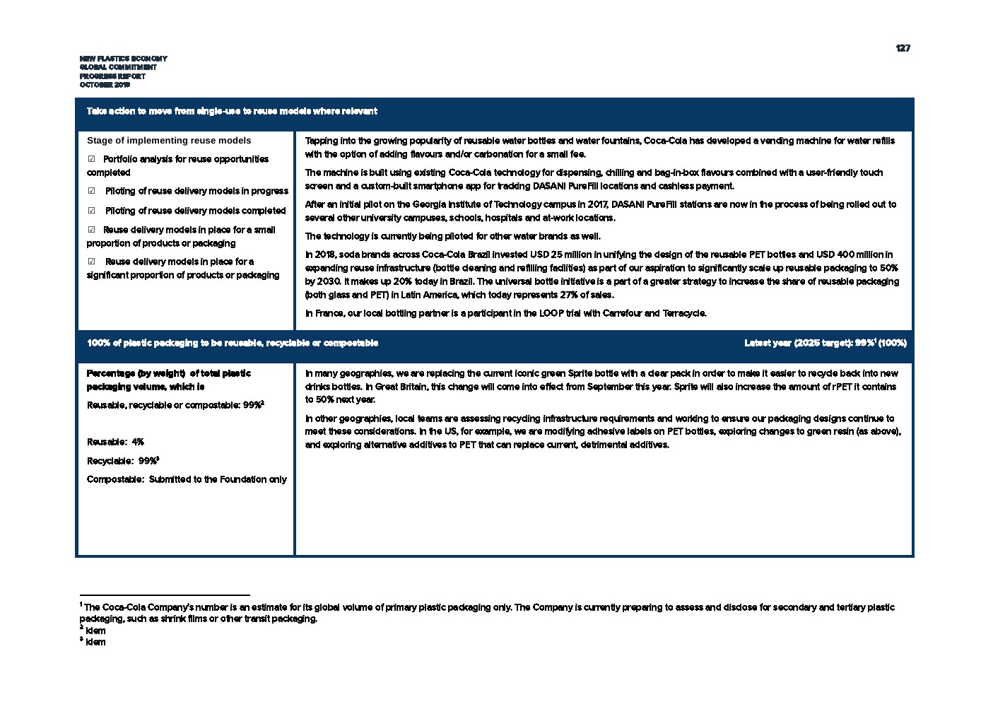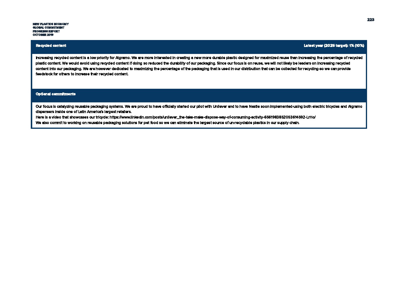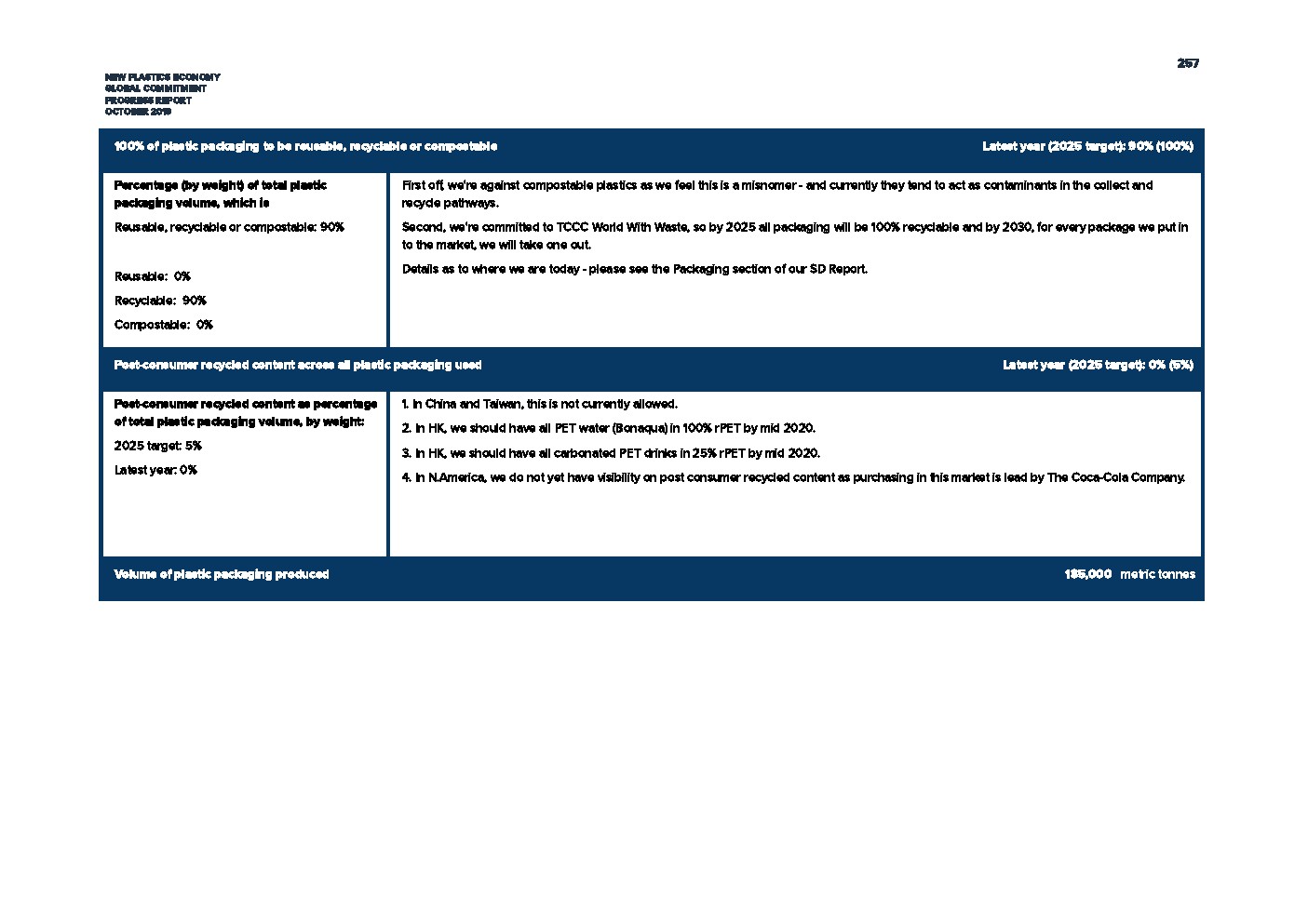 联合利华(50%)、玛氏公司(25%)和百事(20%)将2025年目标设定为减少在包装中纯塑料的使用量。包装商品公司和零售商承诺到2025年将其包装中的可回收成分平均提高22%。