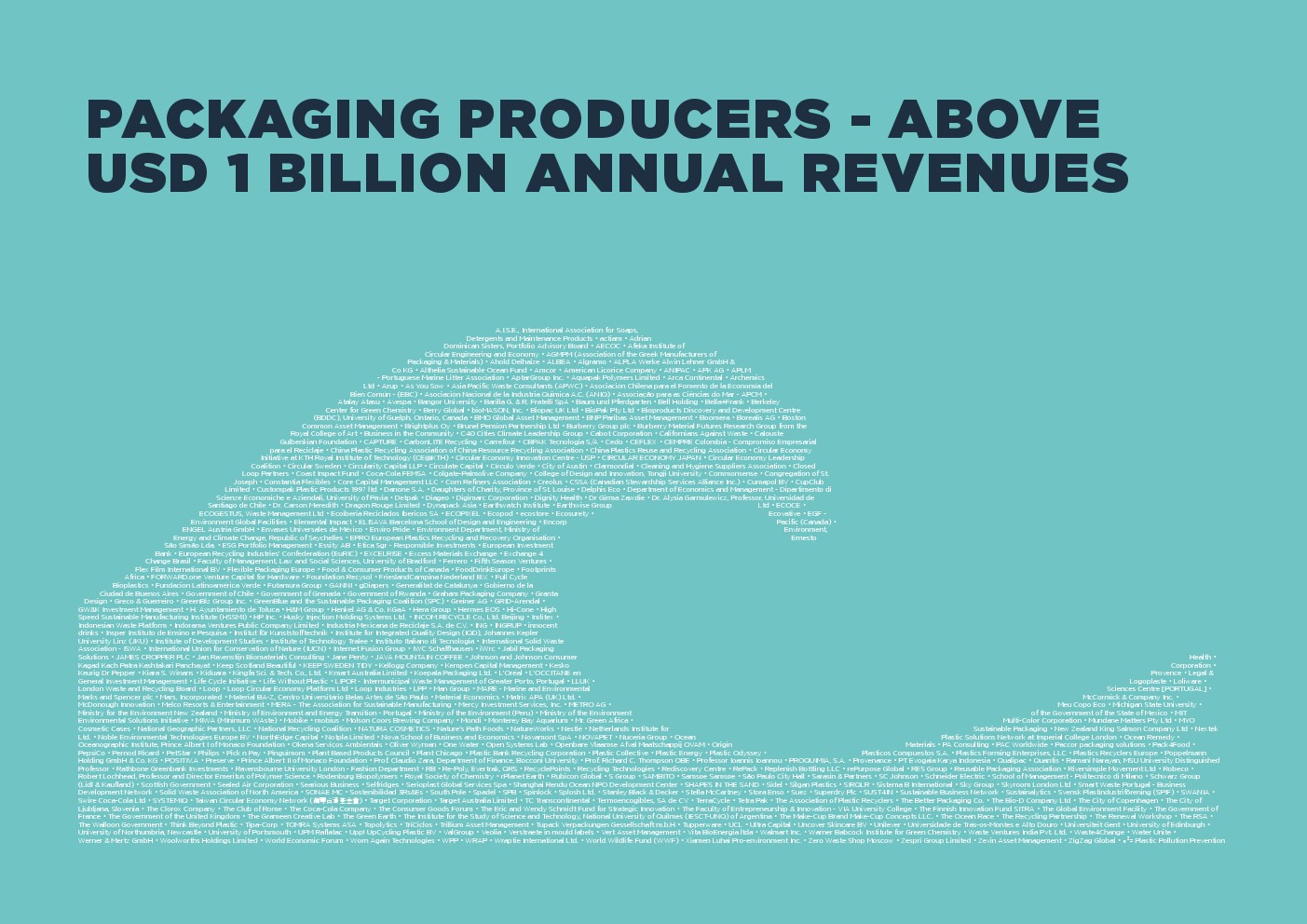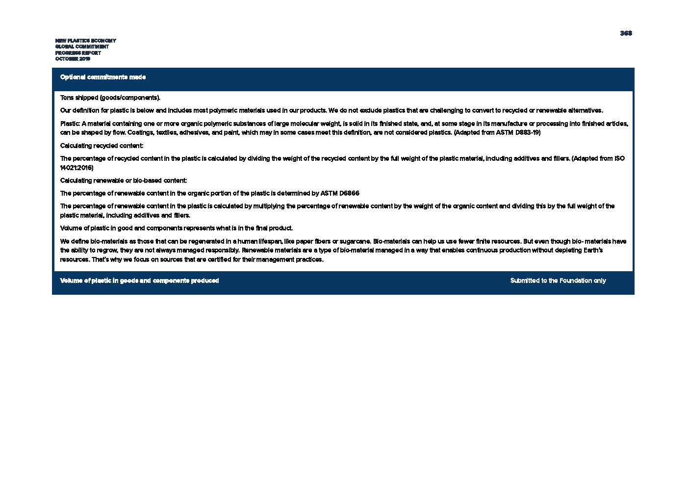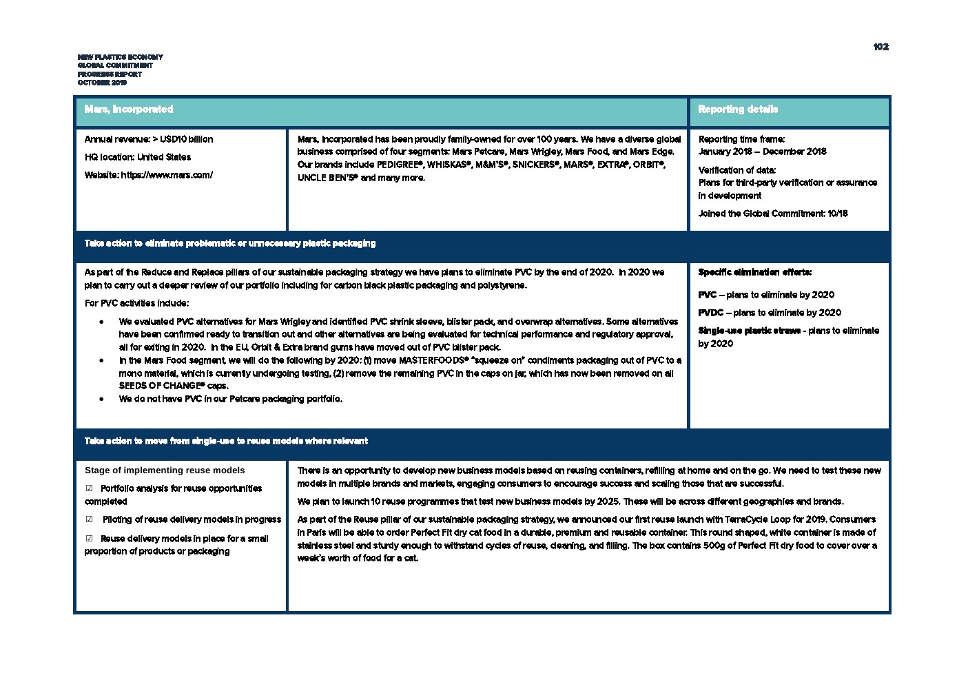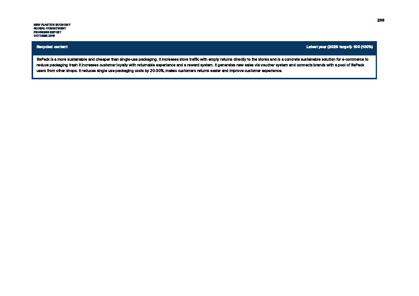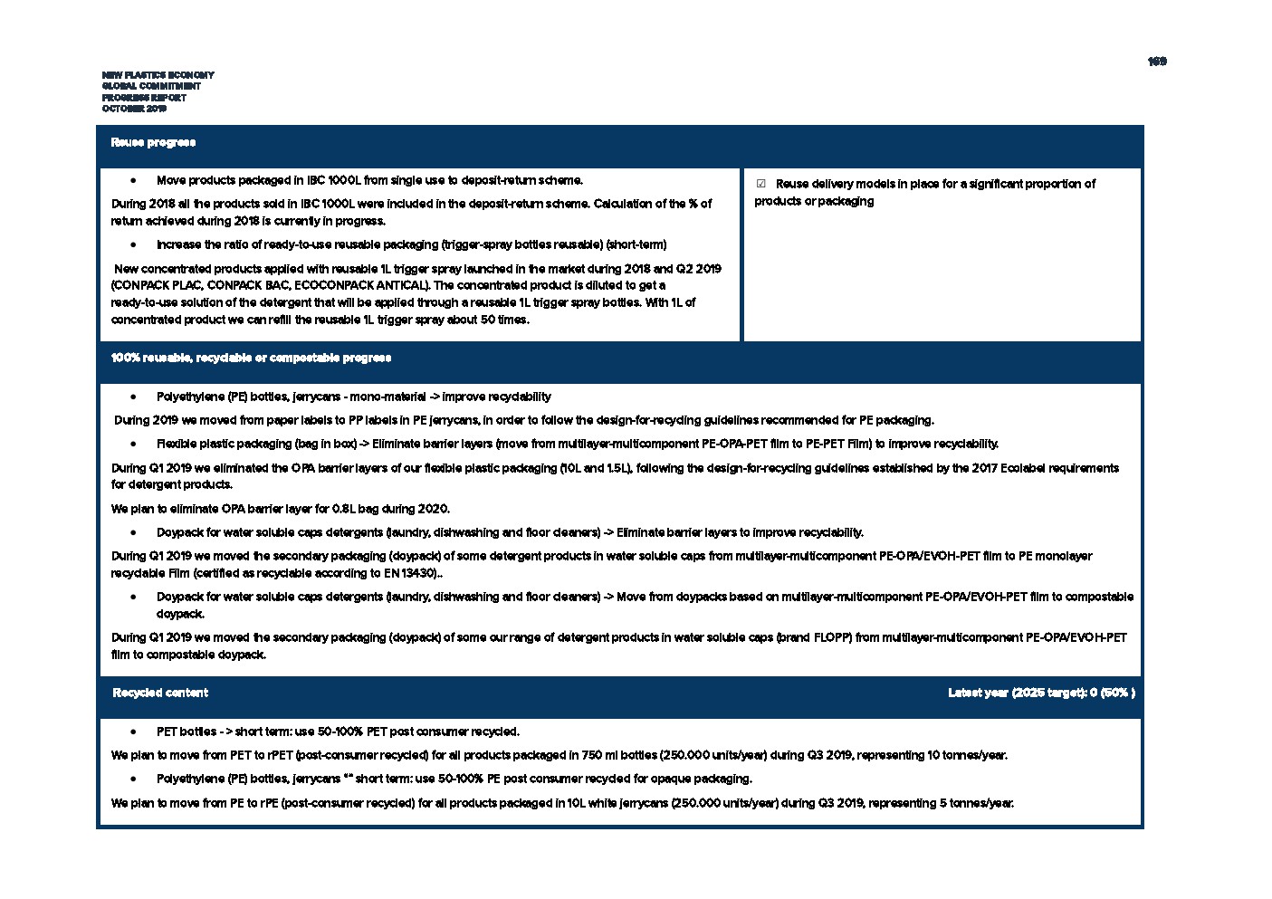 联合利华(50%)、玛氏公司(25%)和百事(20%)将2025年目标设定为减少在包装中纯塑料的使用量。包装商品公司和零售商承诺到2025年将其包装中的可回收成分平均提高22%。