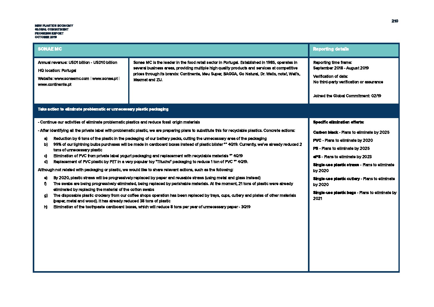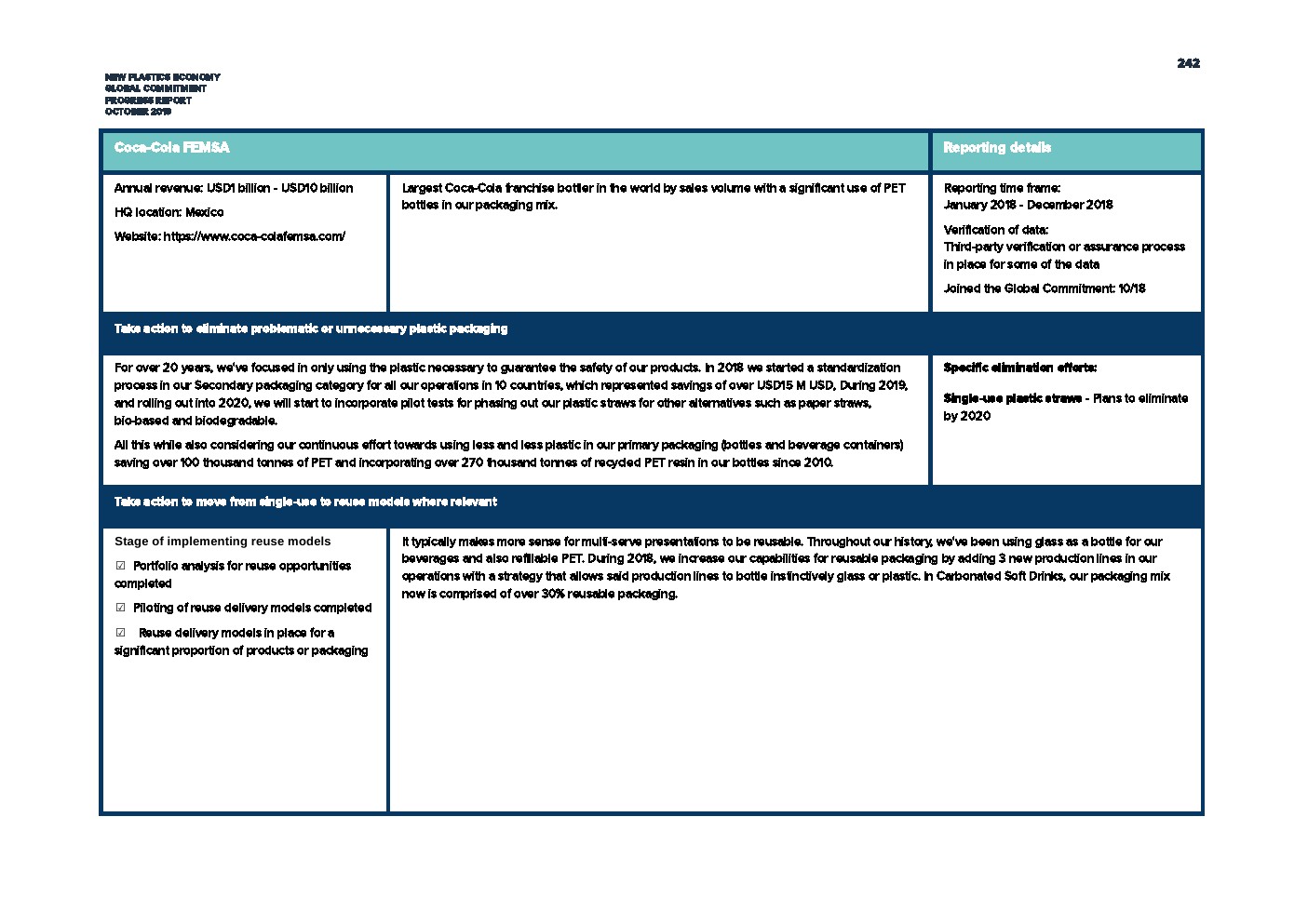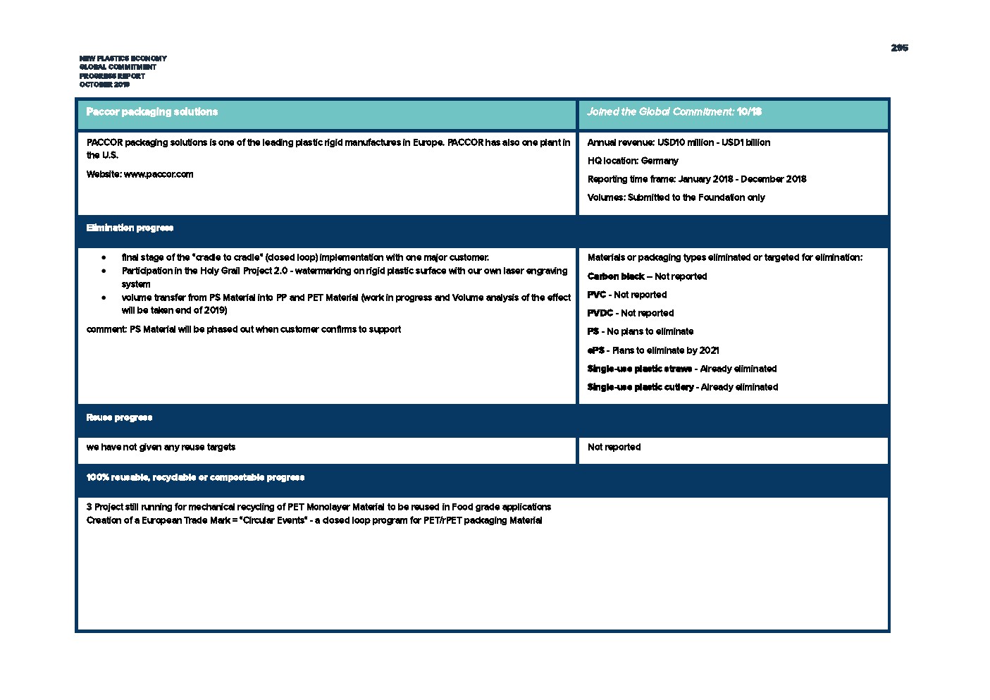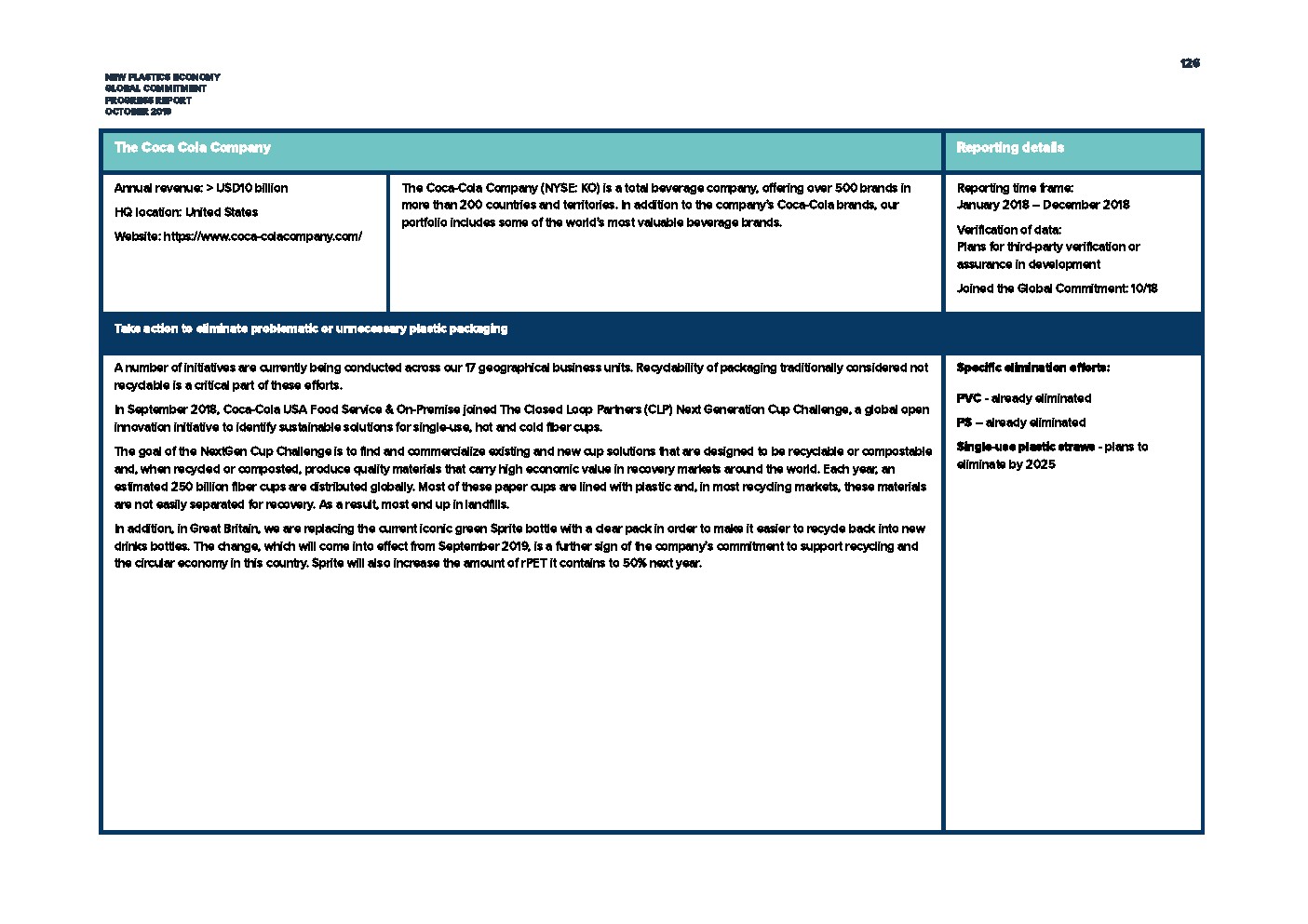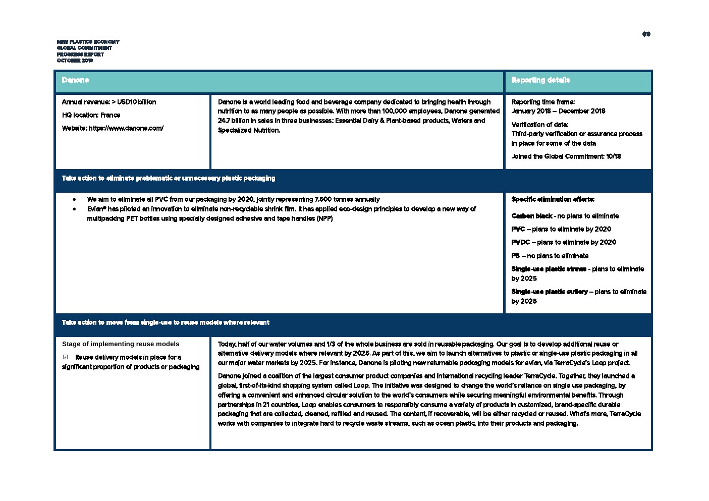 签署承诺的企业中有35家已经披露其塑料生产或使用的总量。达能、雀巢和可口可乐甚至提供了包装类型和塑料类型方面的数据。