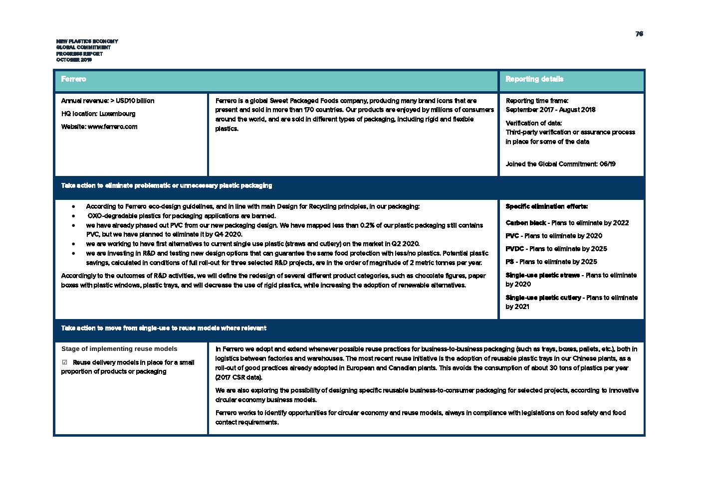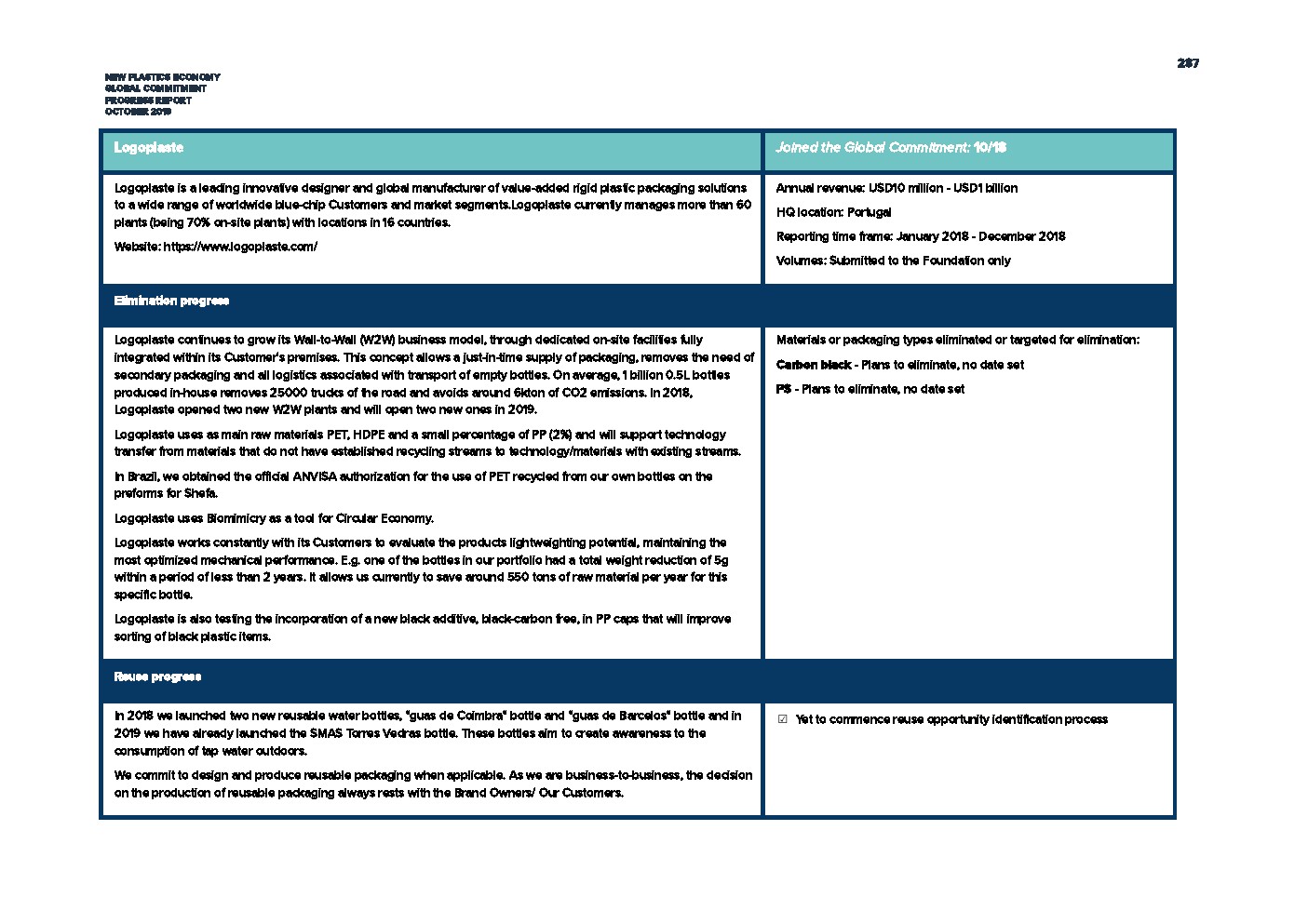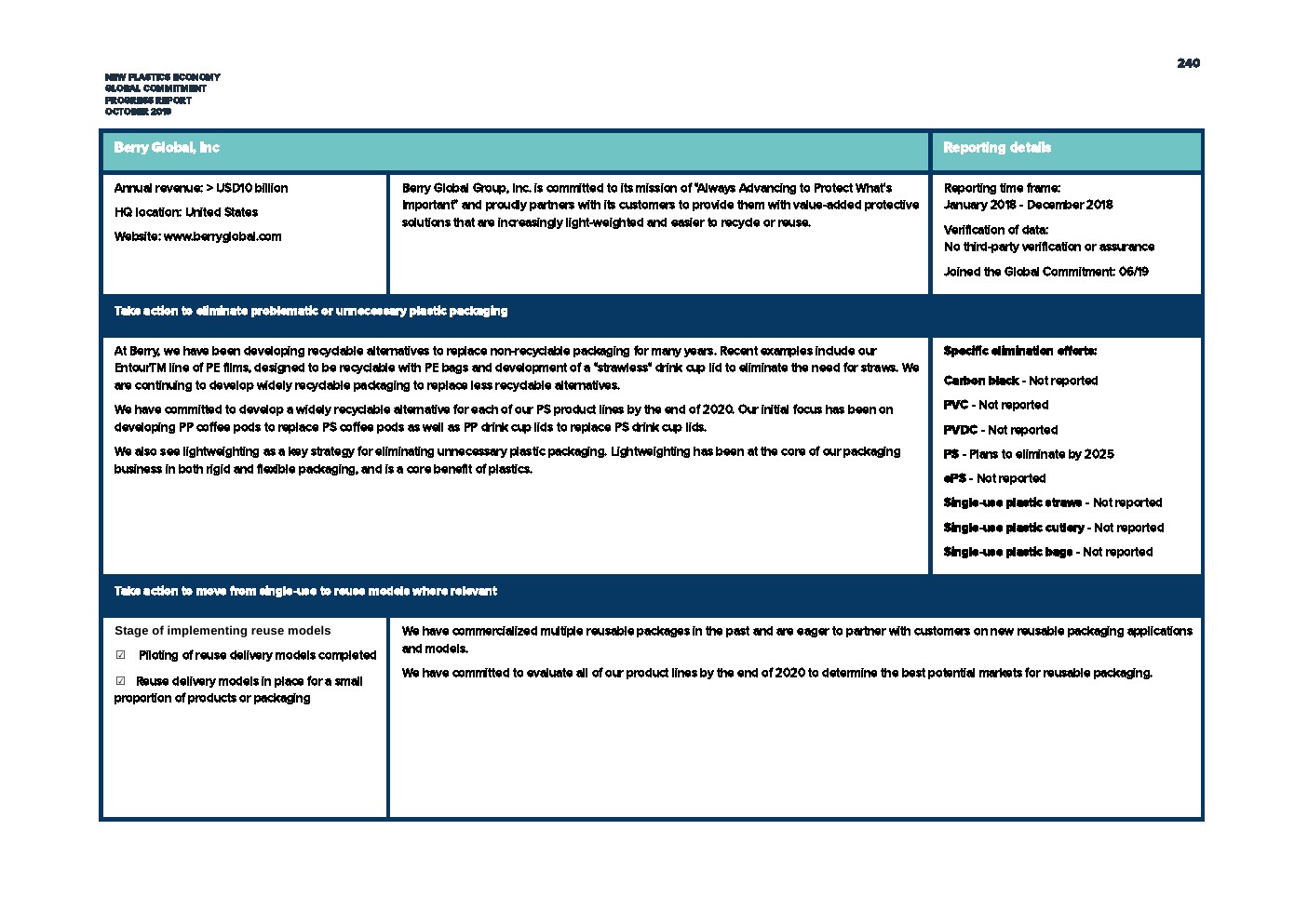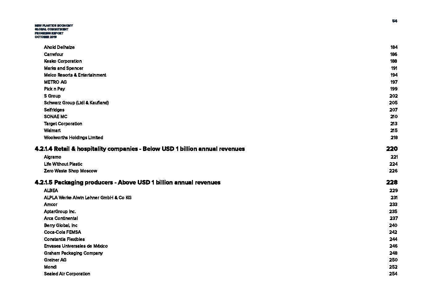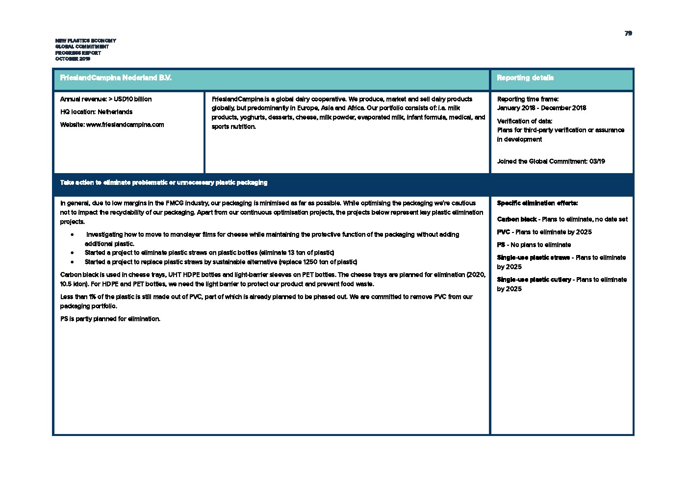 签署承诺的企业中有35家已经披露其塑料生产或使用的总量。达能、雀巢和可口可乐甚至提供了包装类型和塑料类型方面的数据。