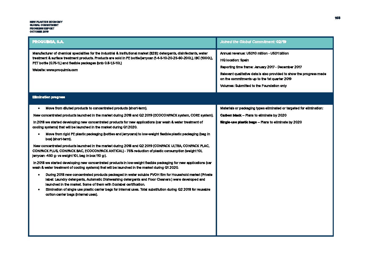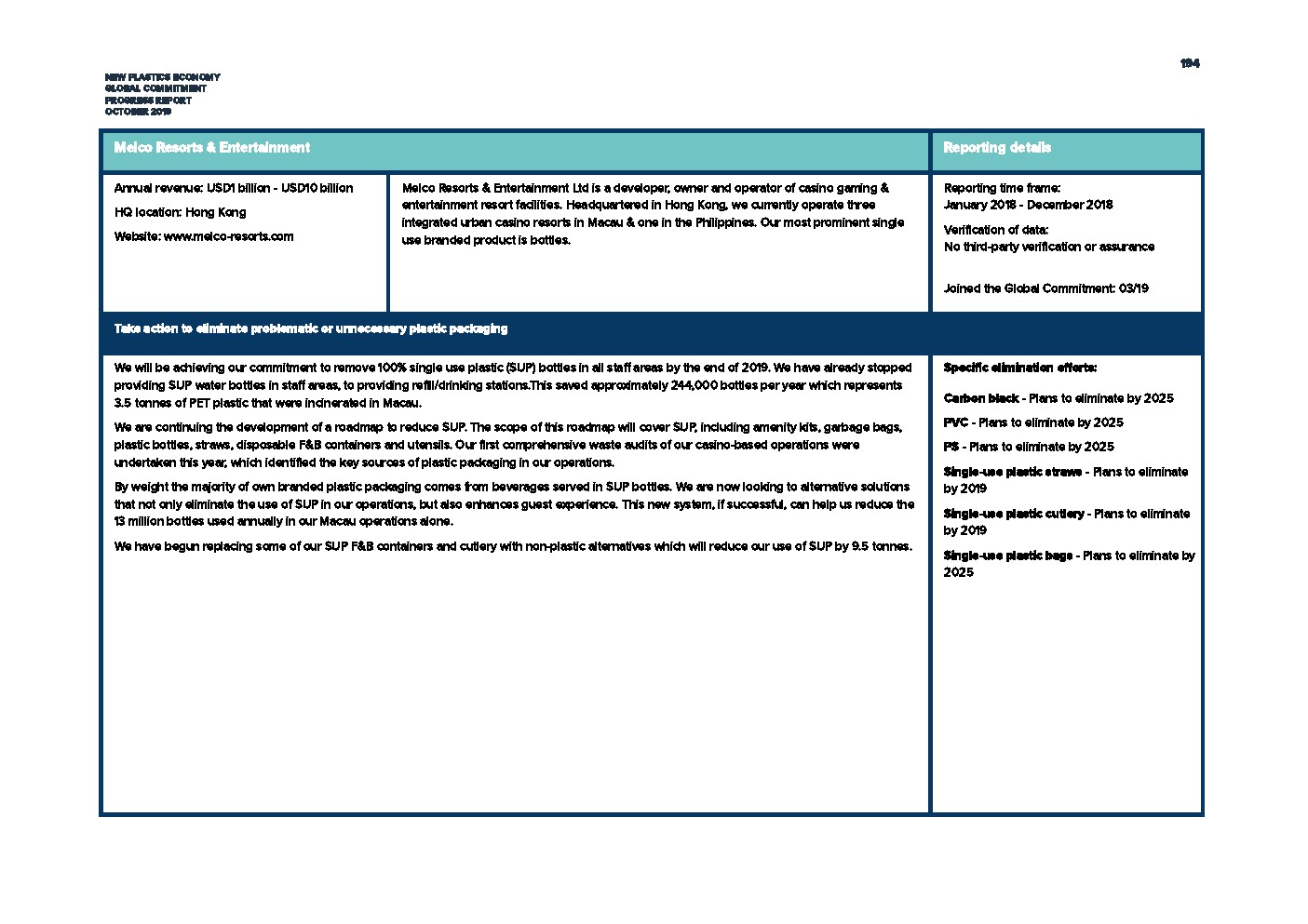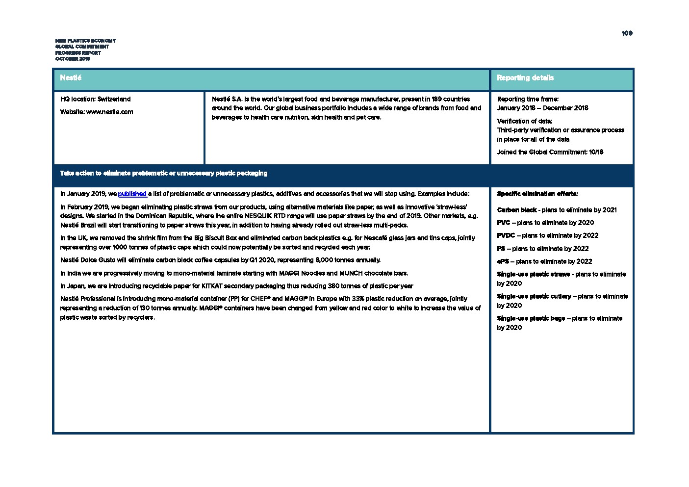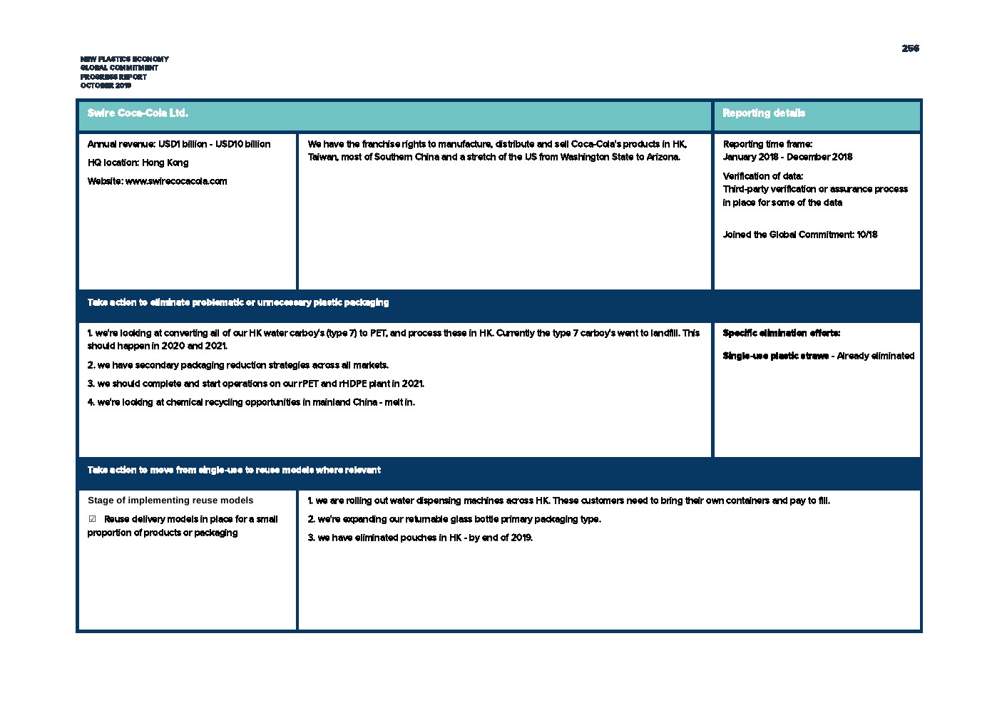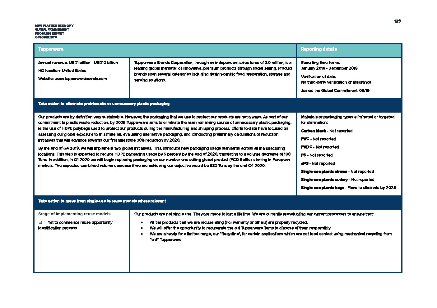 签署承诺的企业中有35家已经披露其塑料生产或使用的总量。达能、雀巢和可口可乐甚至提供了包装类型和塑料类型方面的数据。
