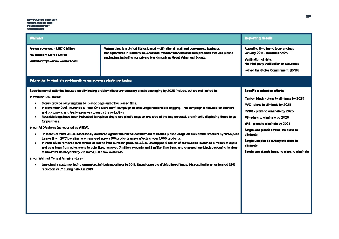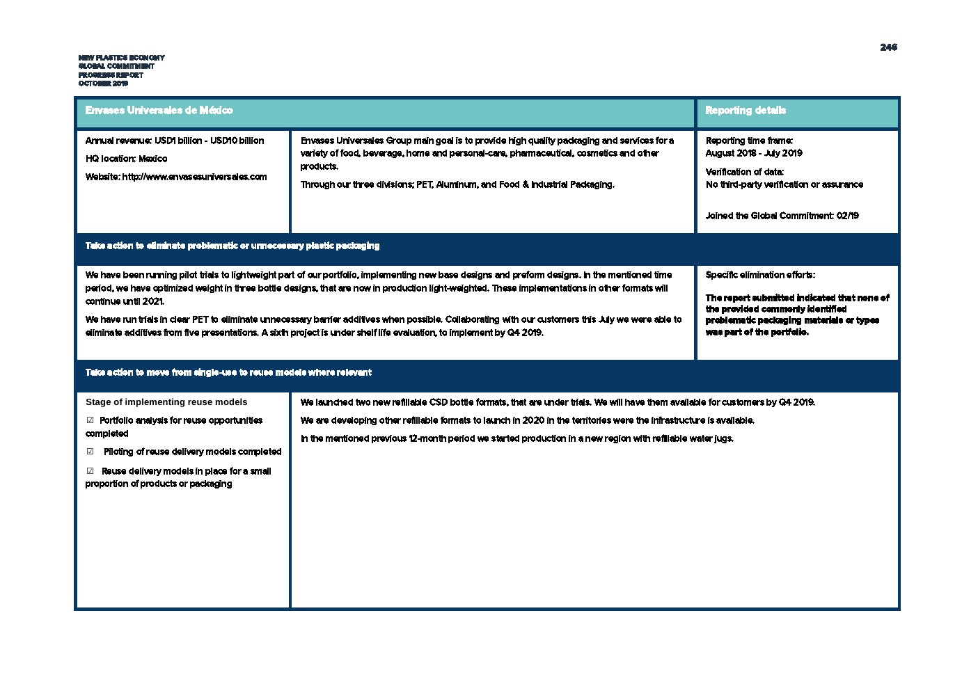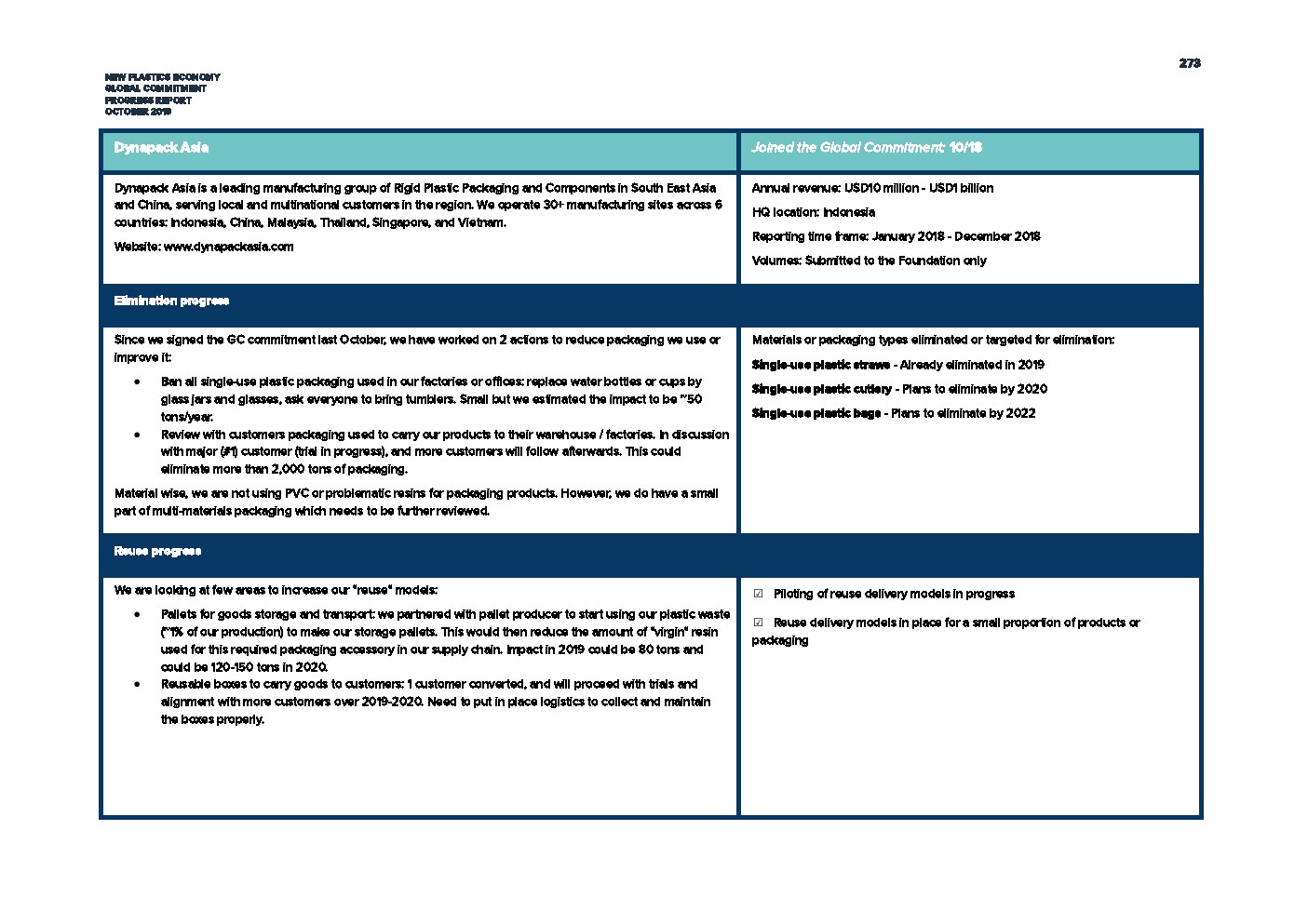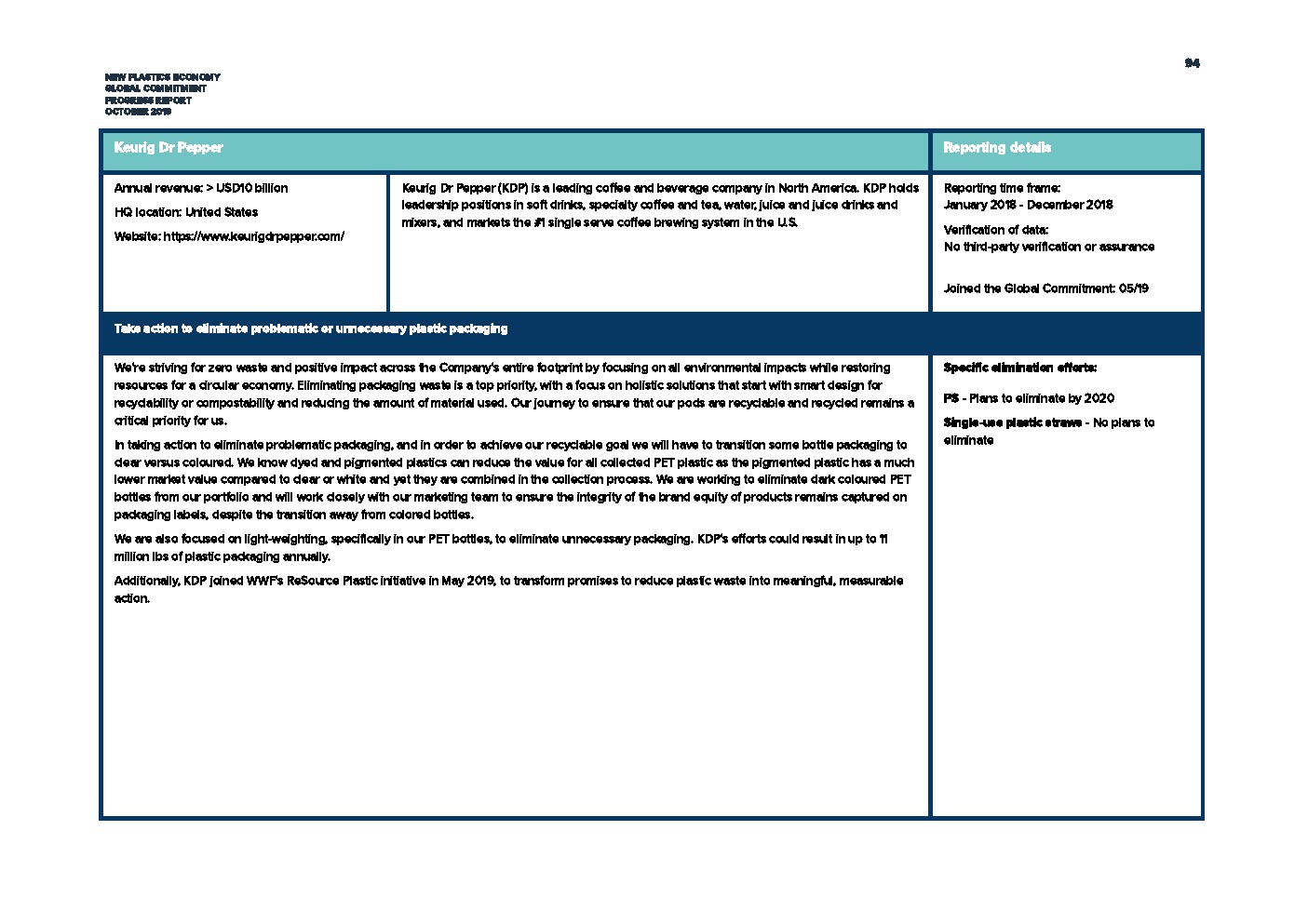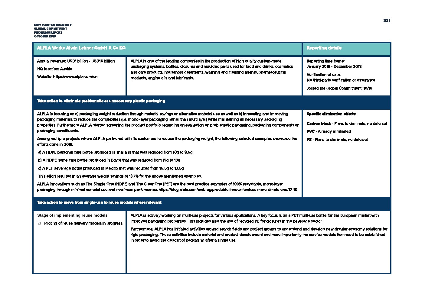 签署承诺的企业中有35家已经披露其塑料生产或使用的总量。达能、雀巢和可口可乐甚至提供了包装类型和塑料类型方面的数据。