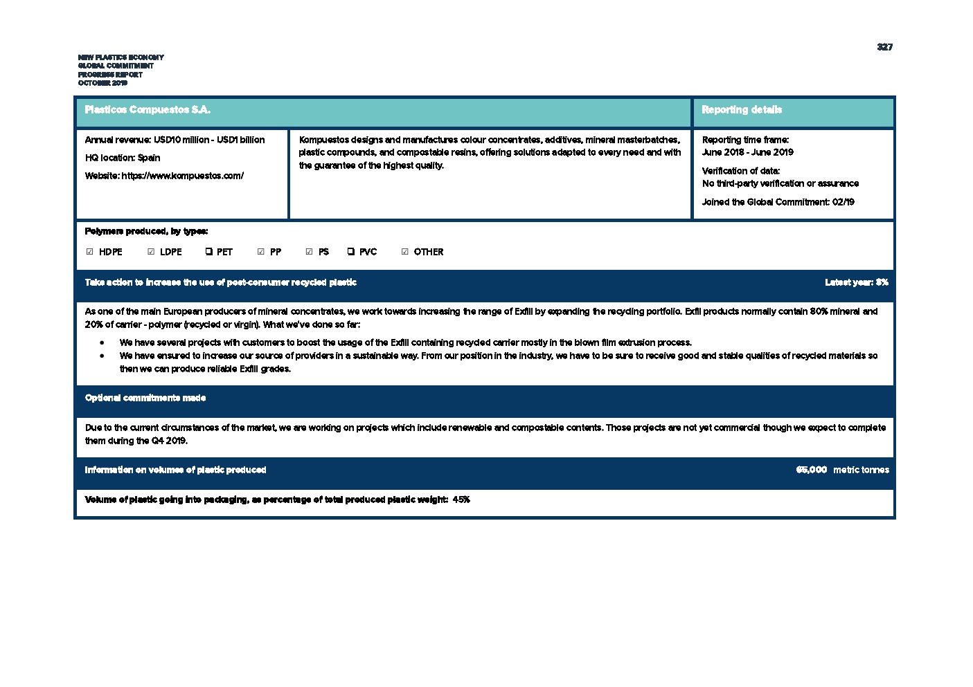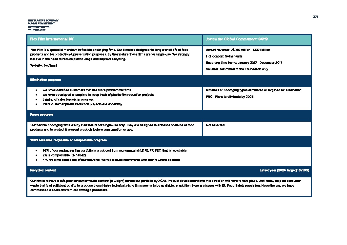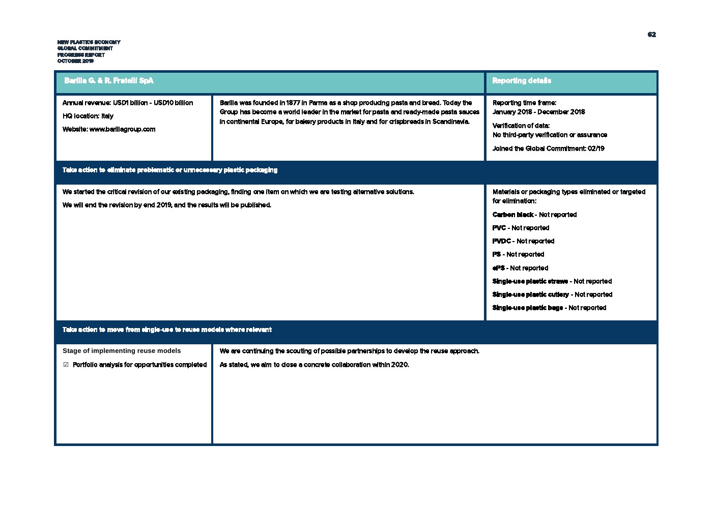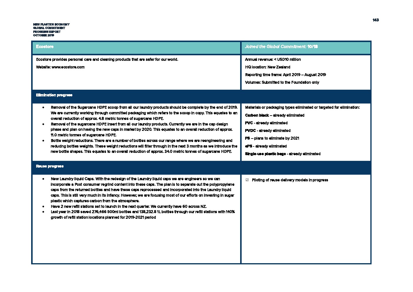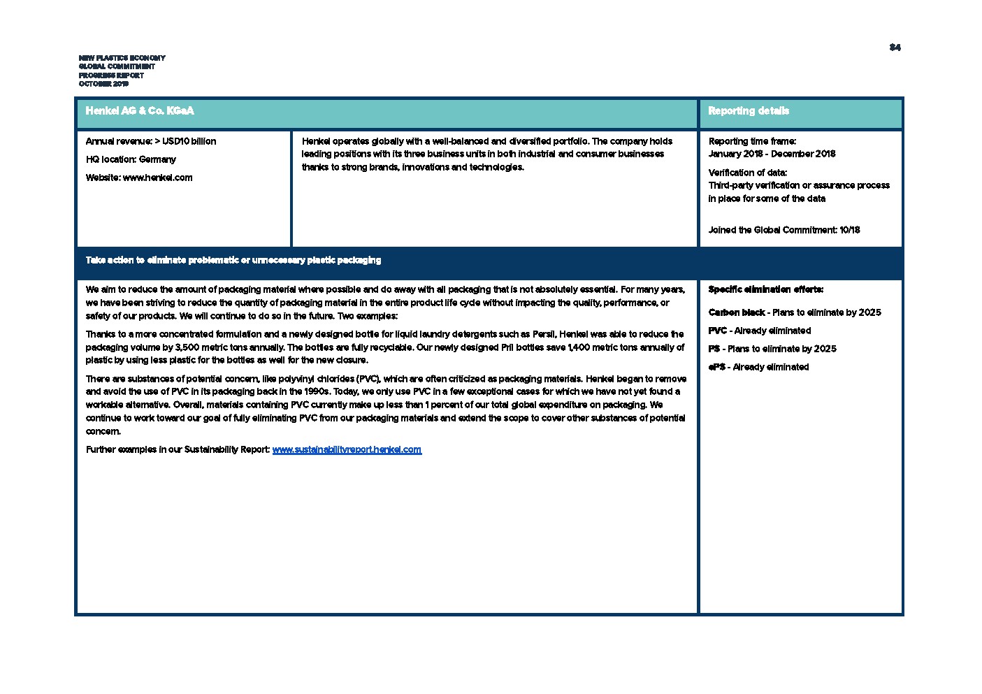 签署承诺的企业中有35家已经披露其塑料生产或使用的总量。达能、雀巢和可口可乐甚至提供了包装类型和塑料类型方面的数据。