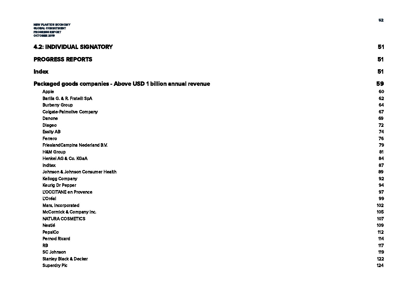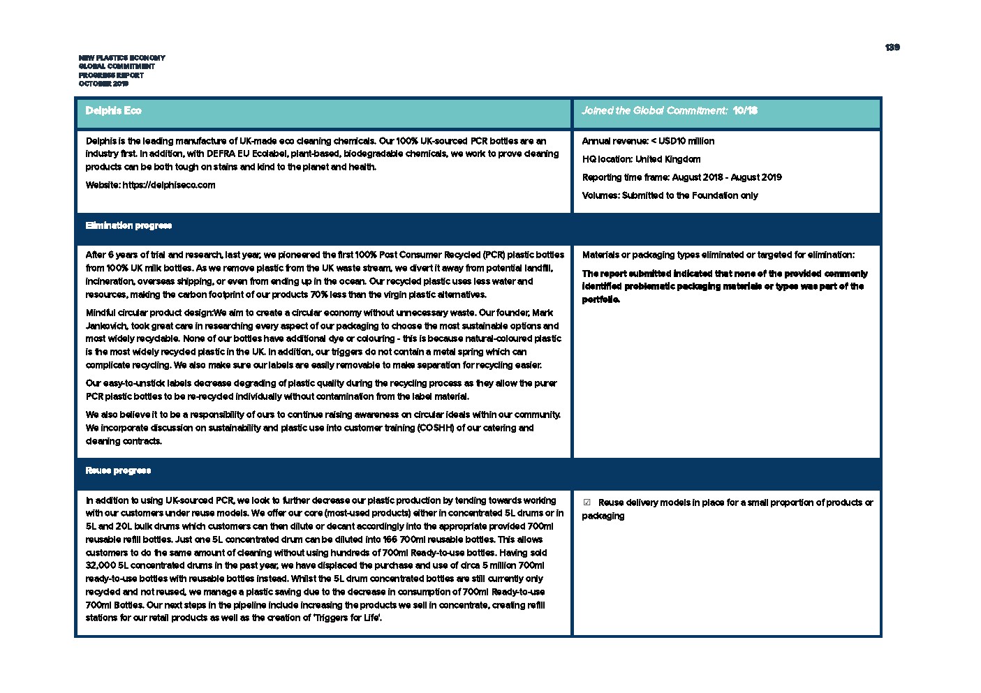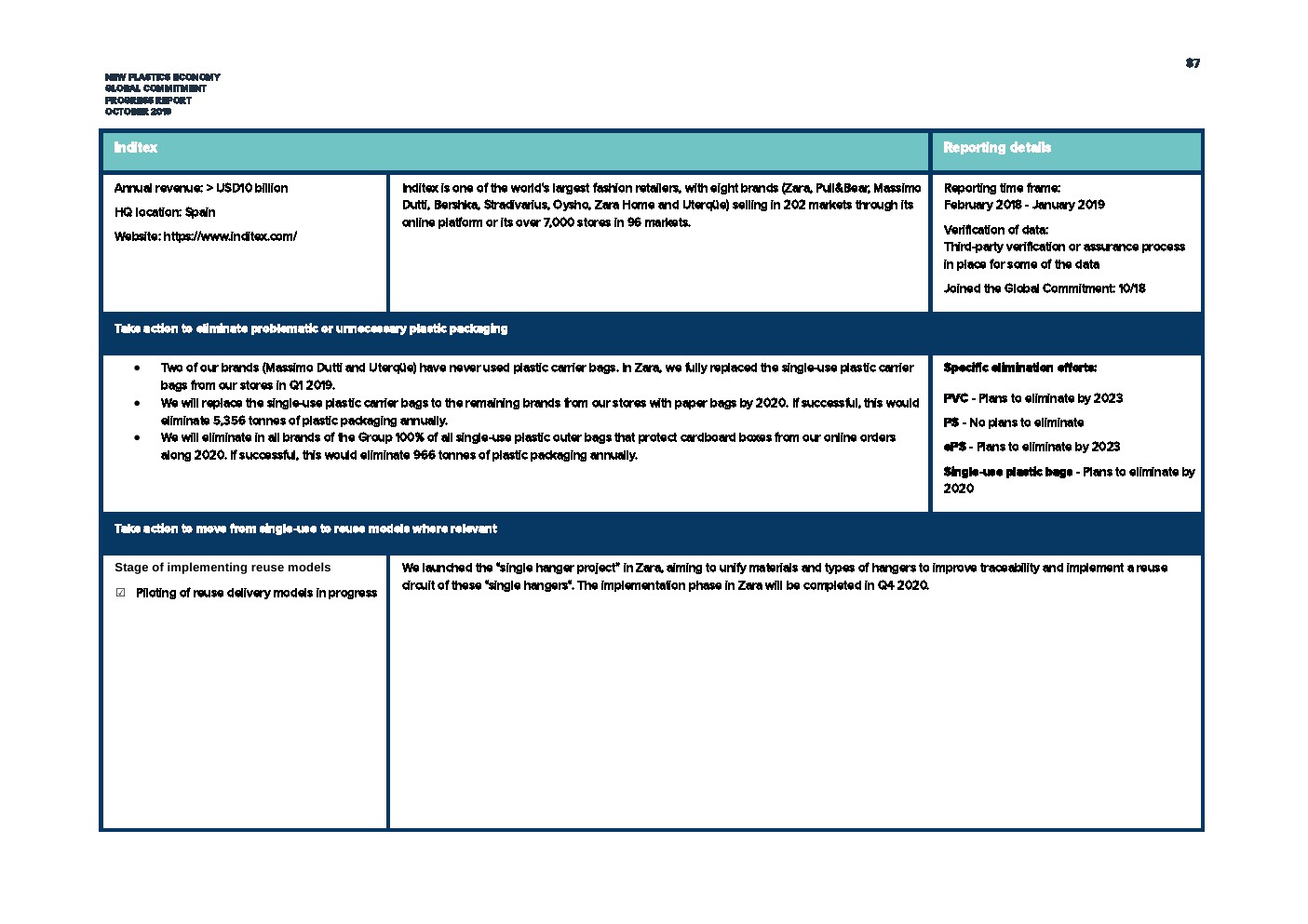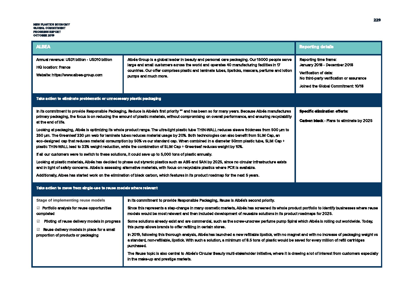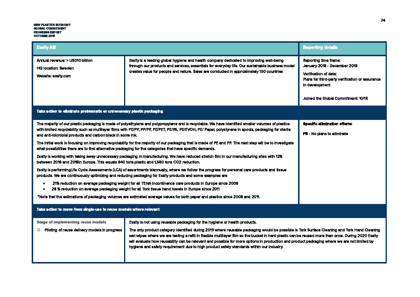 签署承诺的企业中有35家已经披露其塑料生产或使用的总量。达能、雀巢和可口可乐甚至提供了包装类型和塑料类型方面的数据。