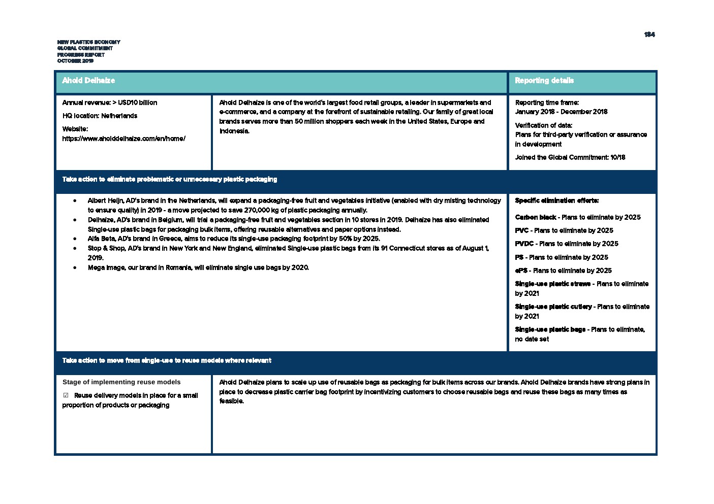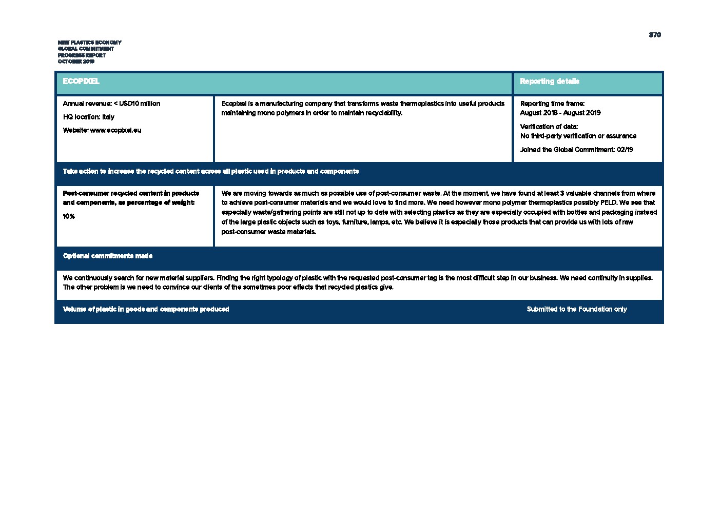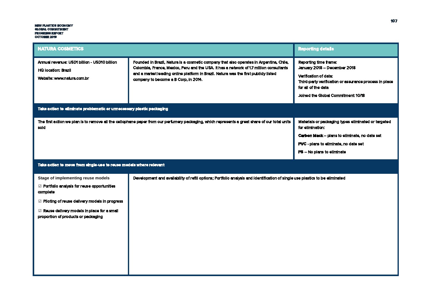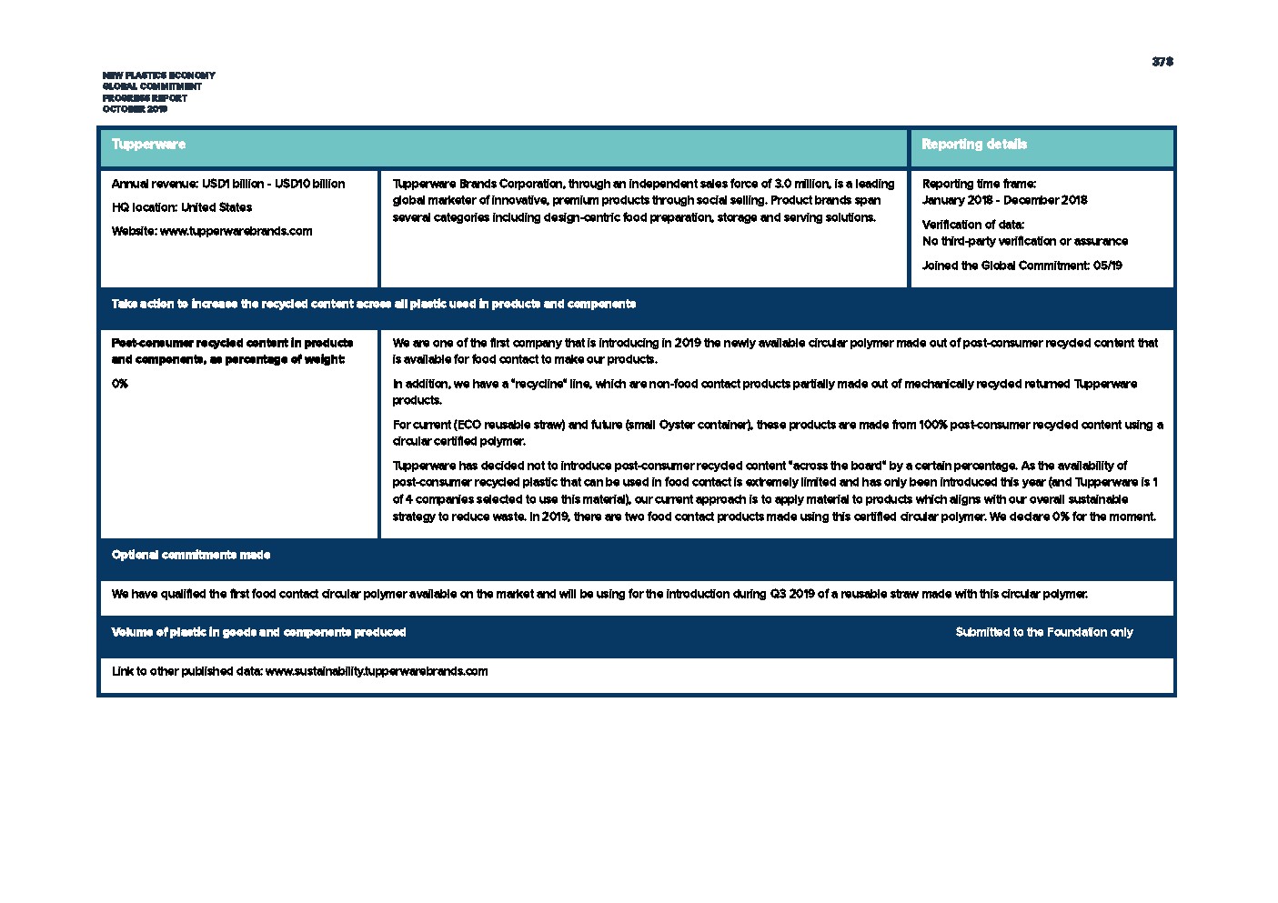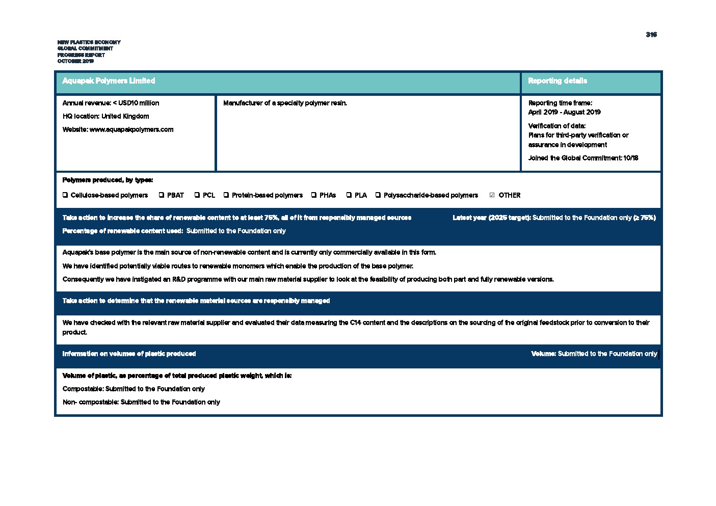 签署承诺的企业中有35家已经披露其塑料生产或使用的总量。达能、雀巢和可口可乐甚至提供了包装类型和塑料类型方面的数据。