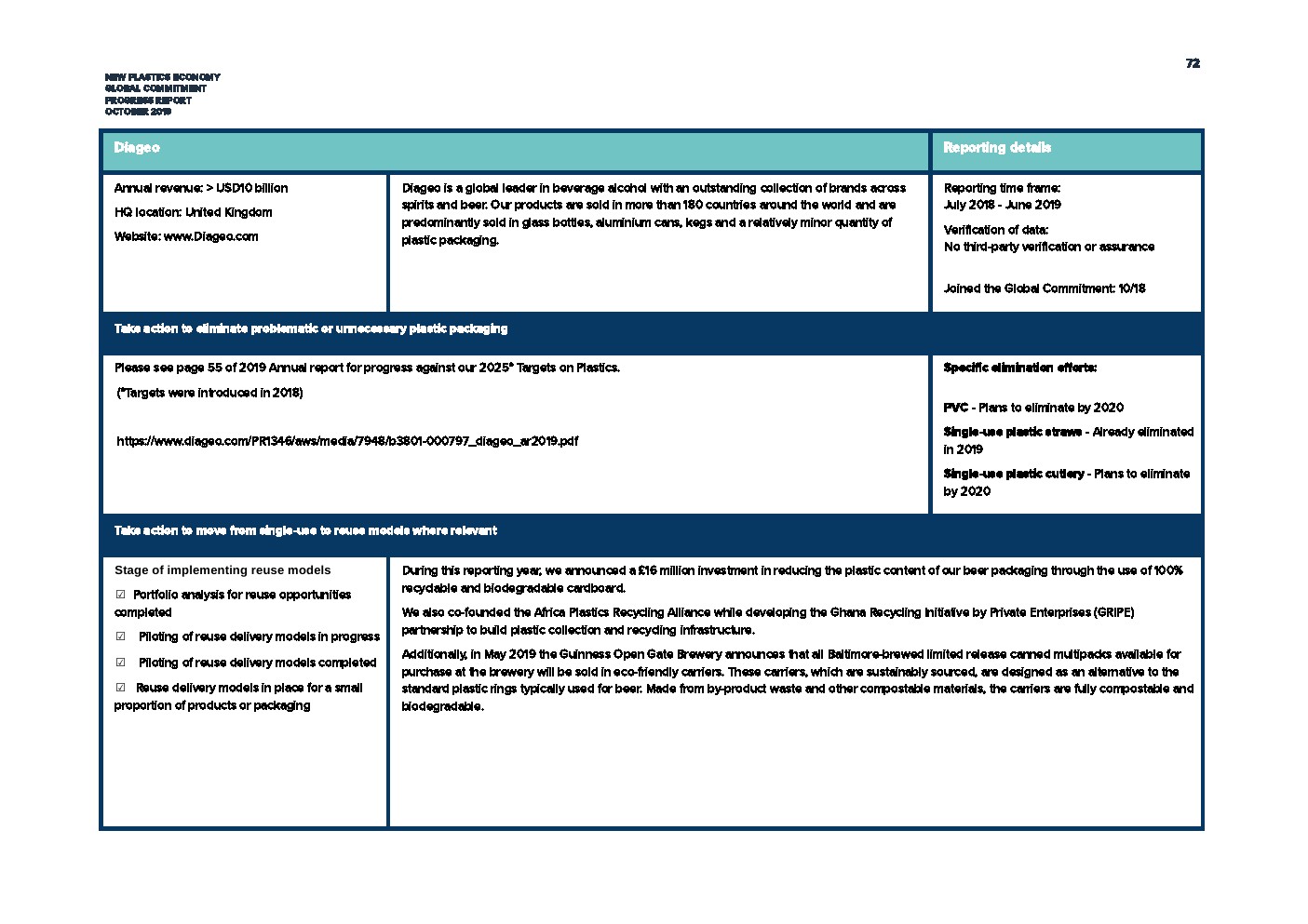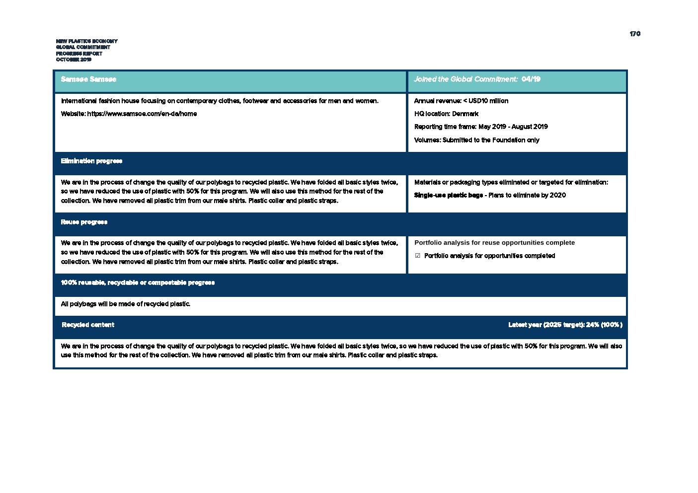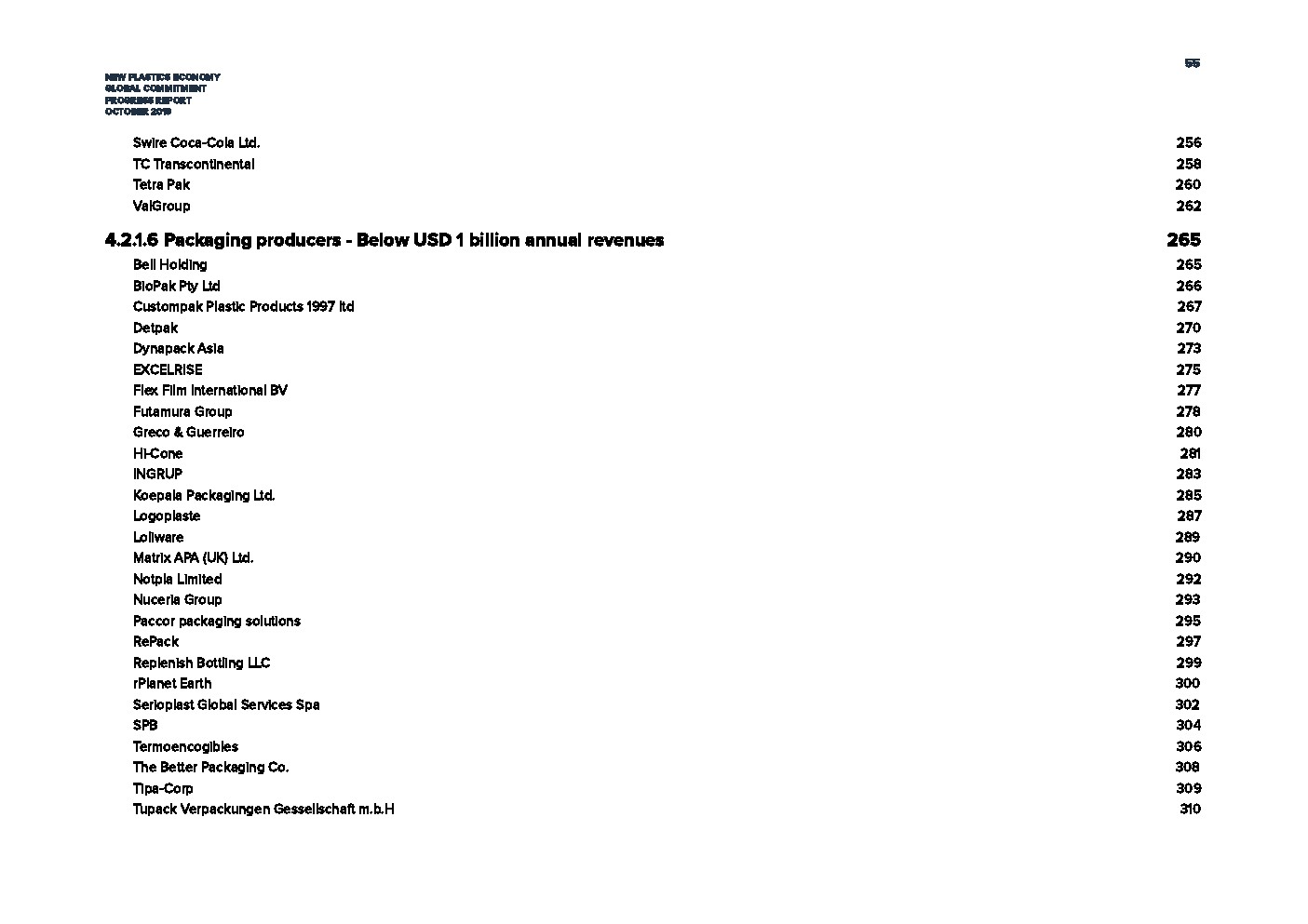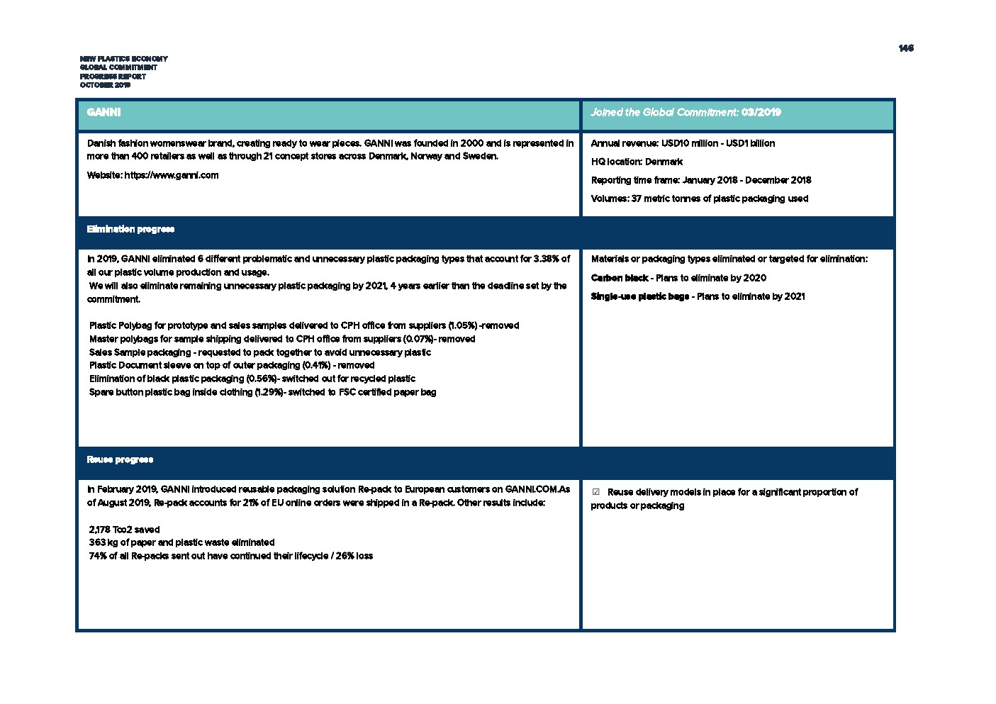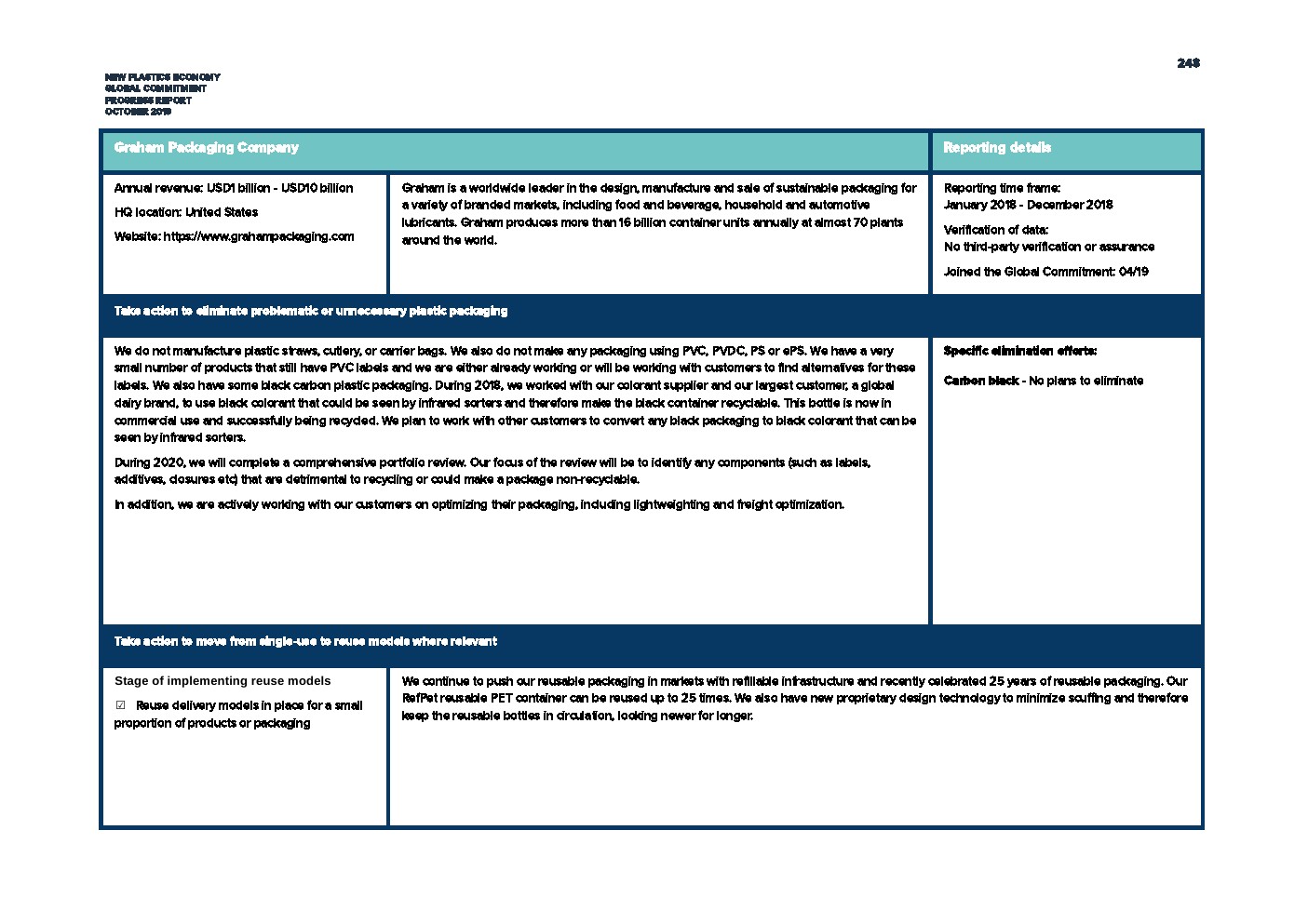签署承诺的企业中有35家已经披露其塑料生产或使用的总量。达能、雀巢和可口可乐甚至提供了包装类型和塑料类型方面的数据。