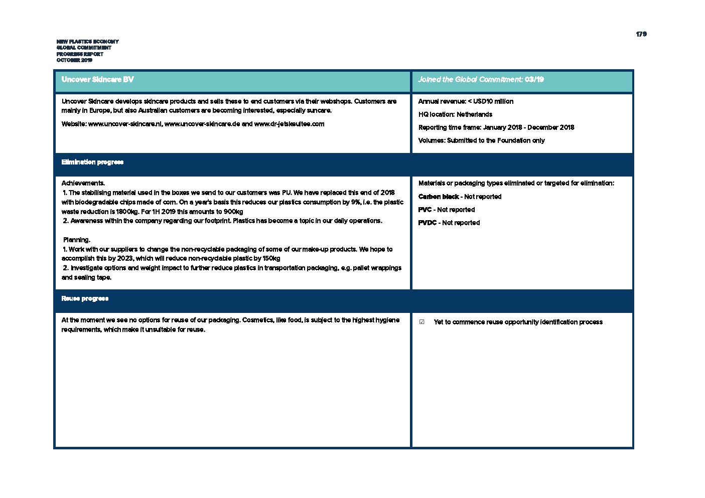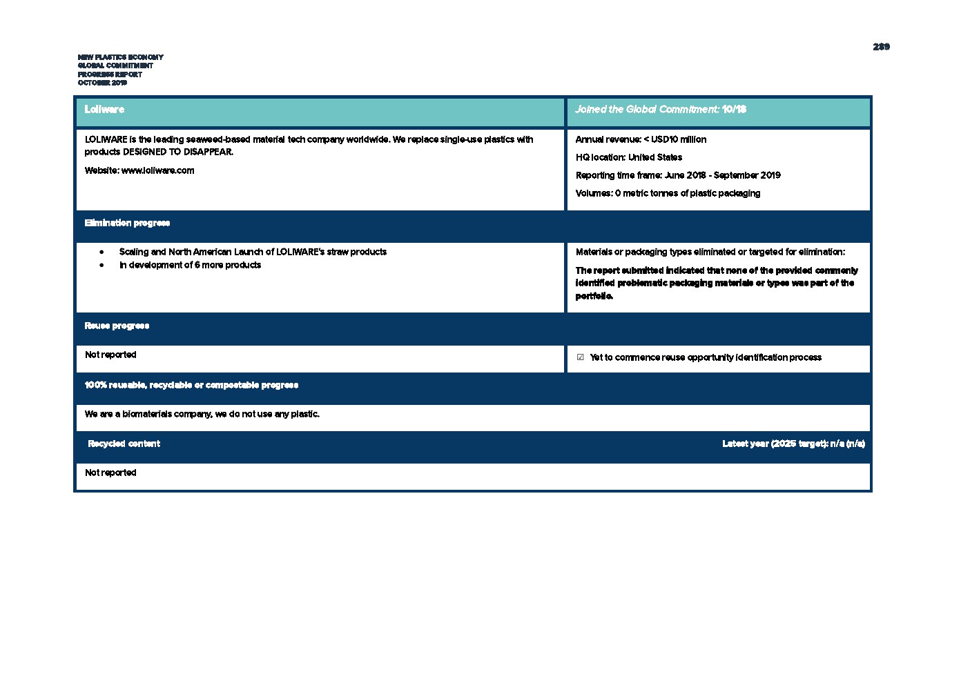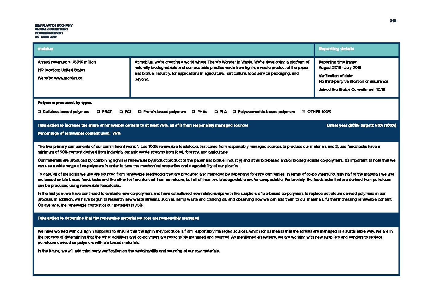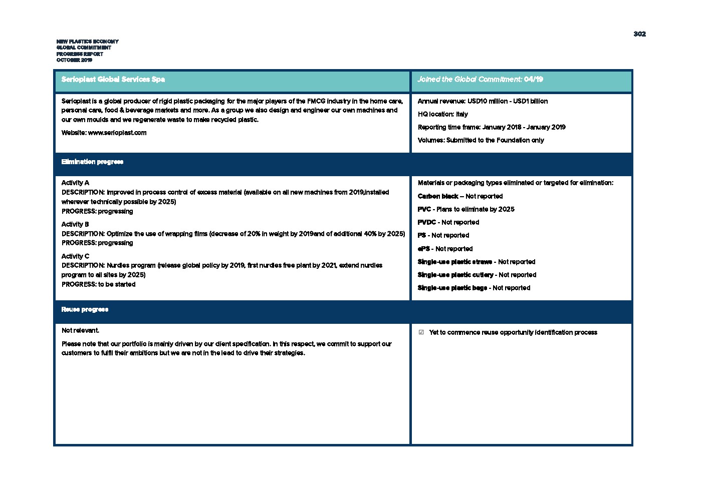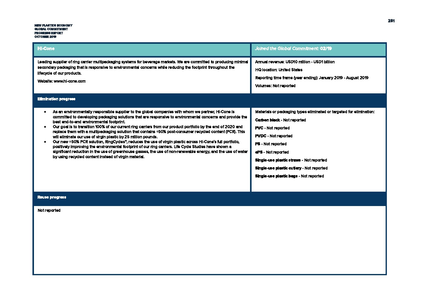 签署承诺的企业中有35家已经披露其塑料生产或使用的总量。达能、雀巢和可口可乐甚至提供了包装类型和塑料类型方面的数据。