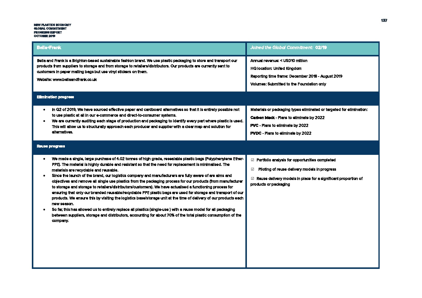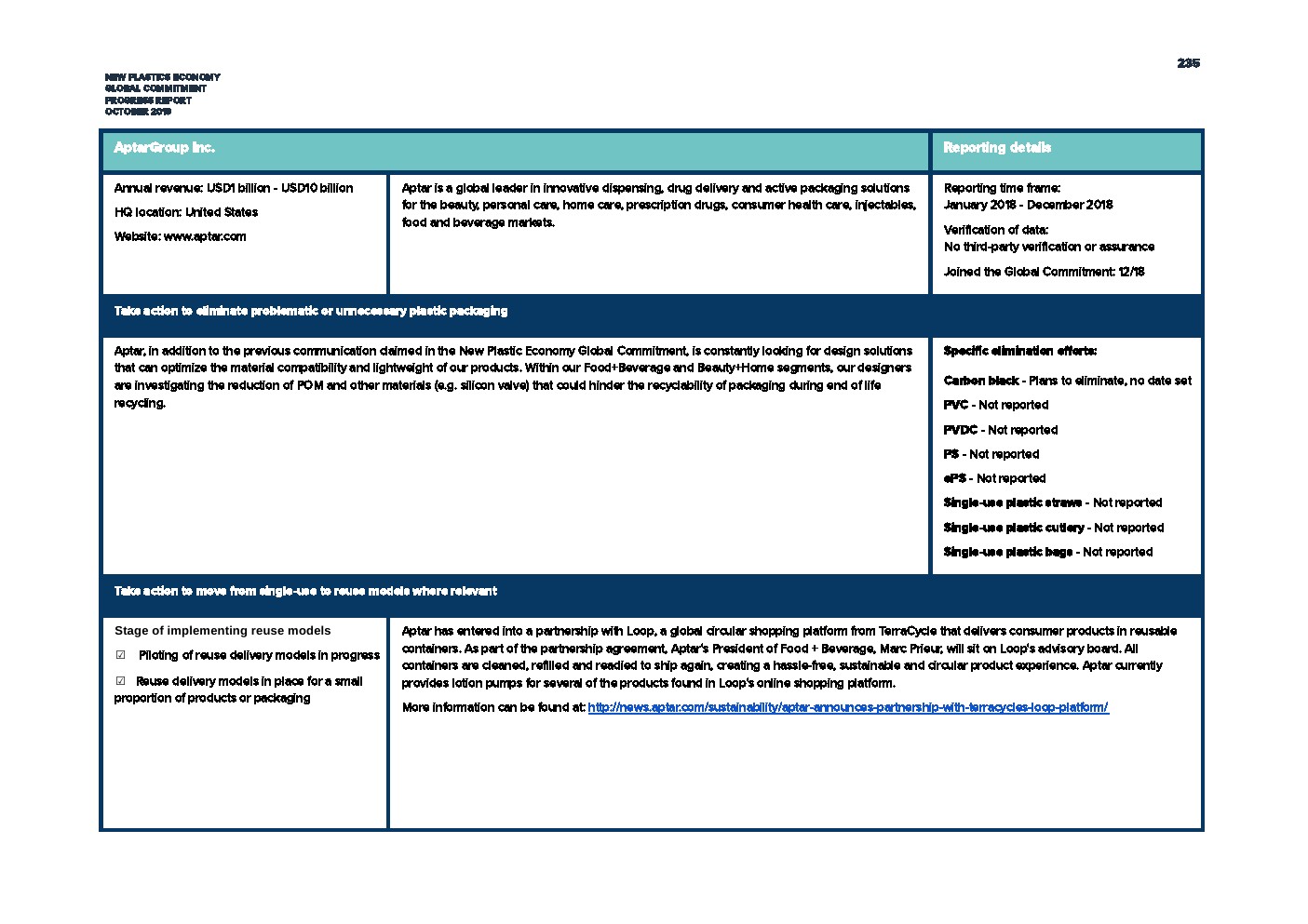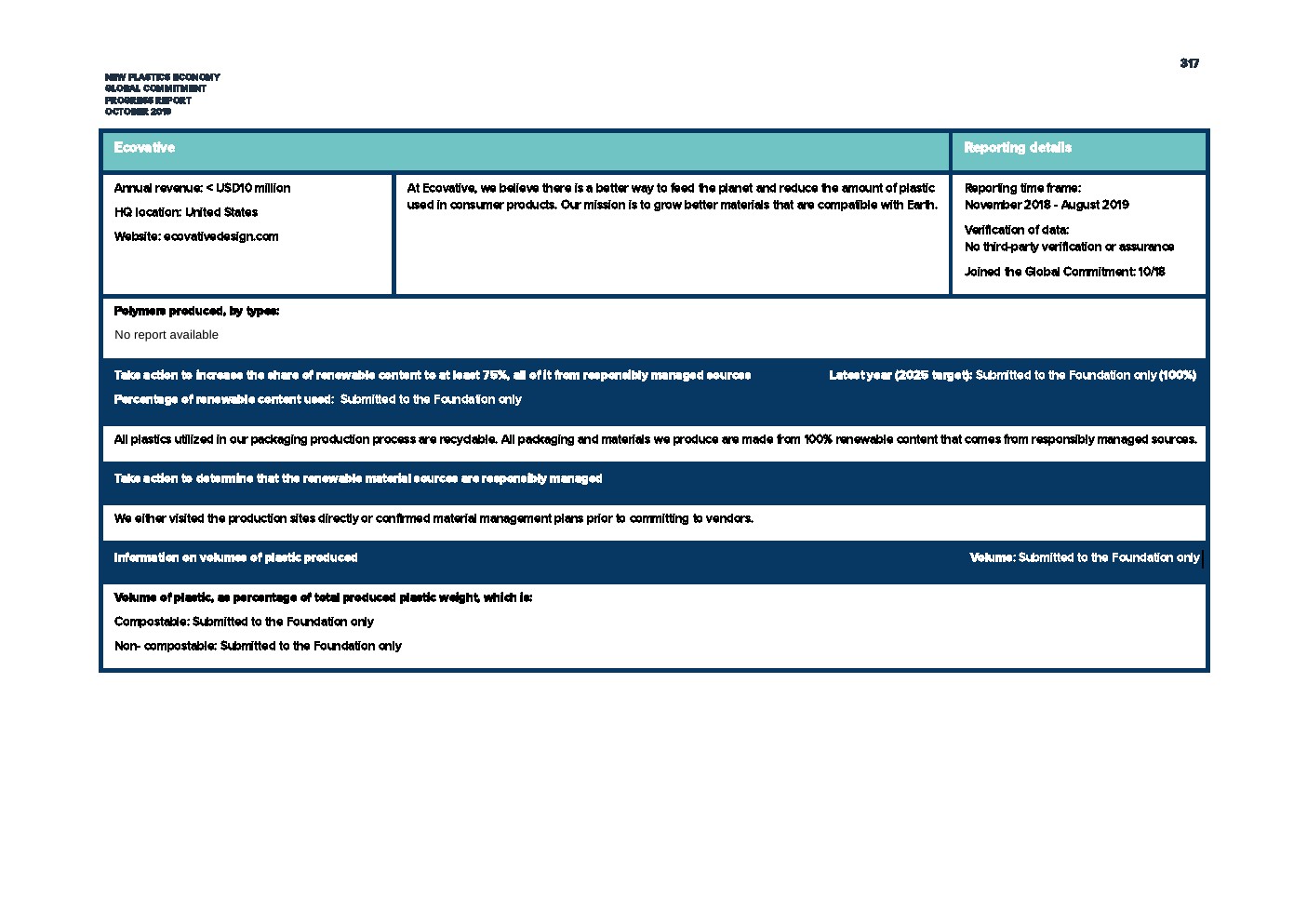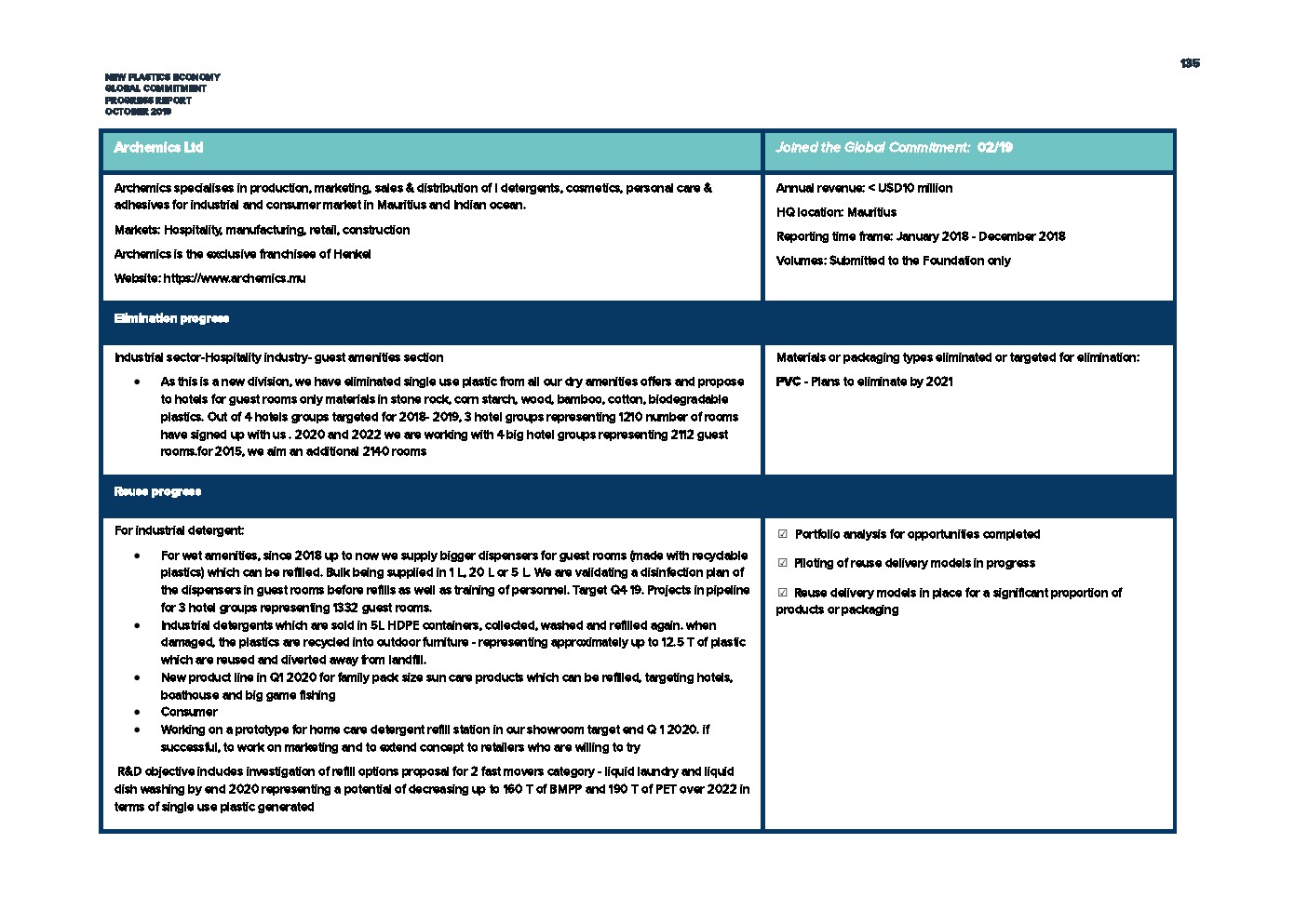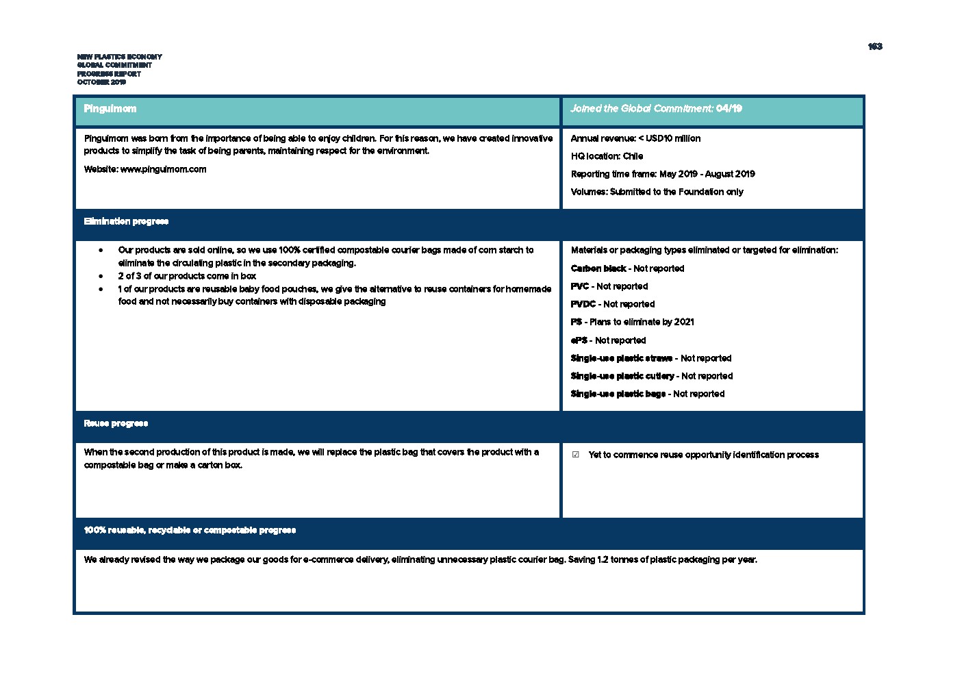 签署承诺的企业中有35家已经披露其塑料生产或使用的总量。达能、雀巢和可口可乐甚至提供了包装类型和塑料类型方面的数据。