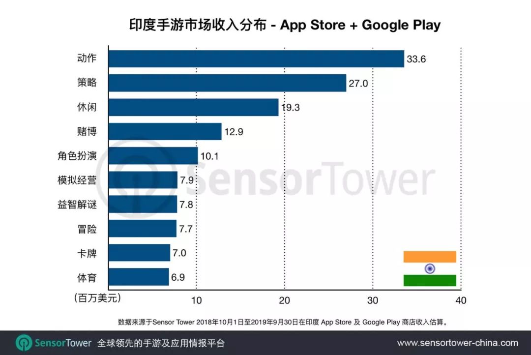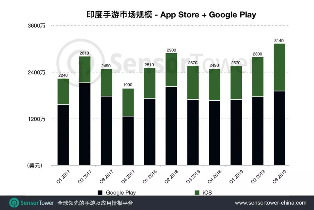 今年Q3,手游在印度 App Store 和 Google Play 的预估总收入为3100万美元,同比增长22.2%。今年前三个季度,当地手游总收入超过8500万美元,较去年前三个季度近8000万美元小幅增长6.2%。