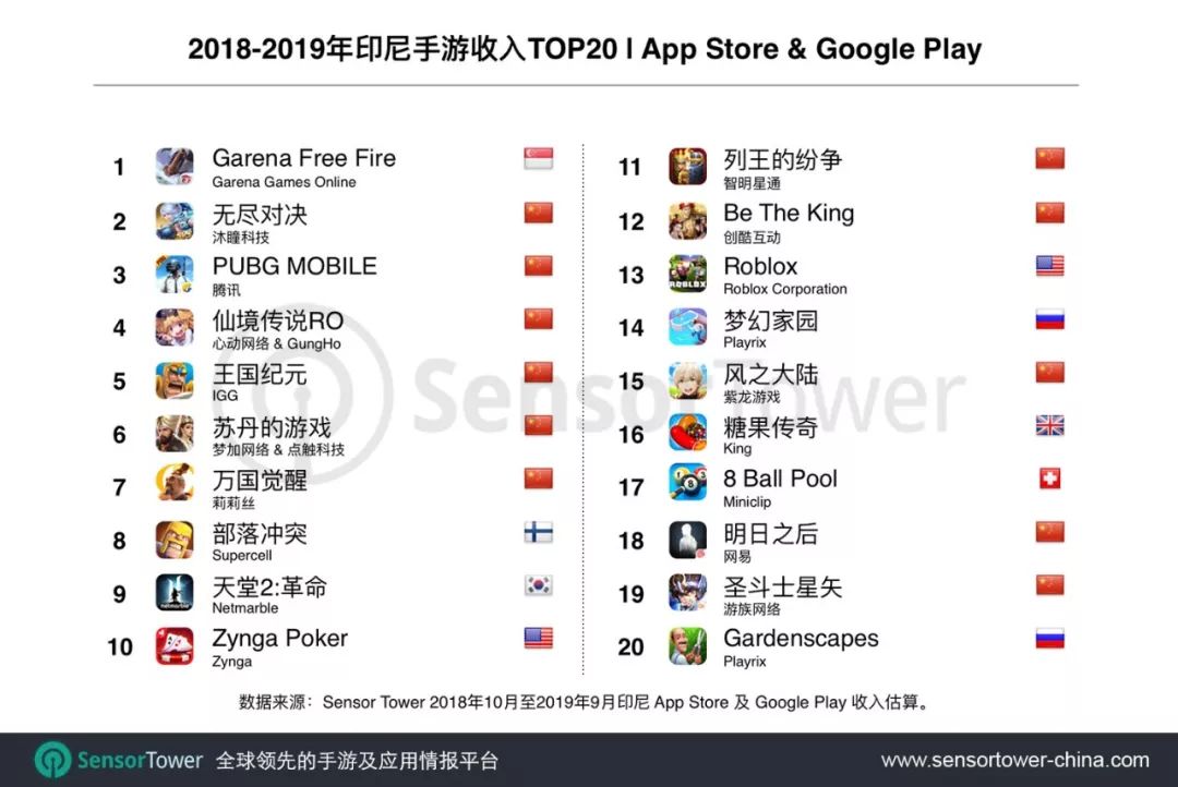 在下载榜和收入榜上,《Garena Free Fire》,《无尽对决》和《PUBG MOBILE》均分列第1至第3名,显示出印尼玩家对竞技手游的热爱。