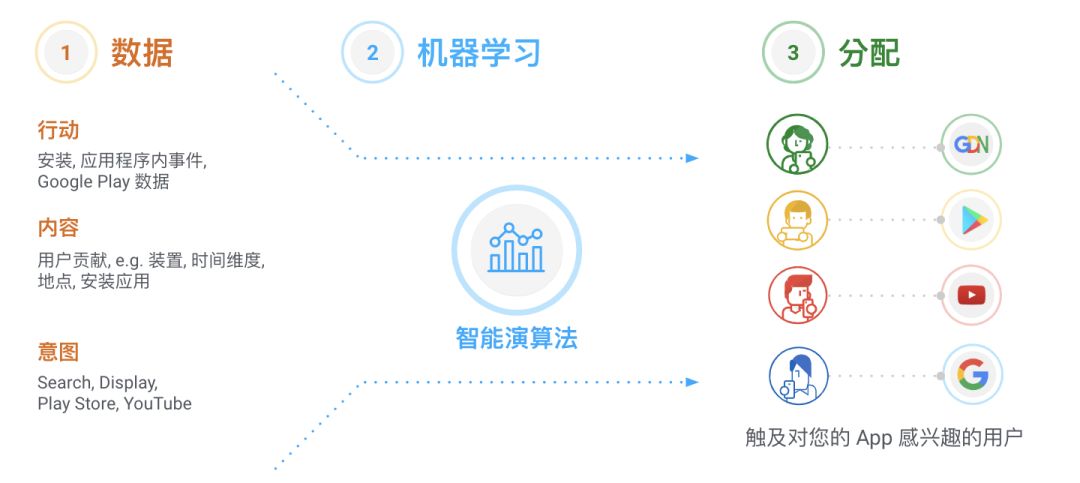 如果产品发布之后,你更倾向于获得初步用户数据来测试产品效果和优化,例如10 – 20 万用户量级,建议你采用 APP Campaigns 1.0 / 2.0 基础安装广告系列。这个功能的方向是让机器学习技术帮你找到最有可能安装产品的用户,CPI 的成本较低。