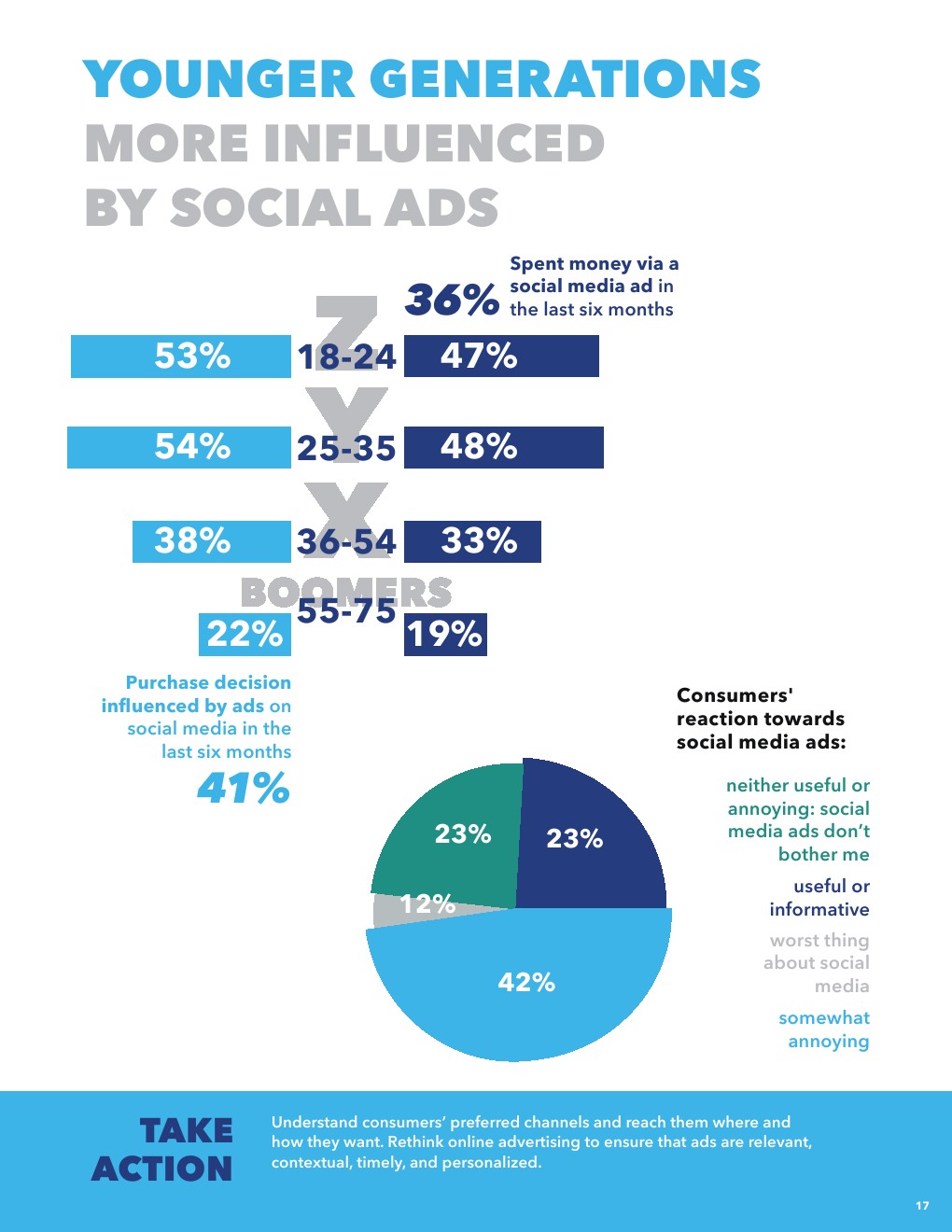 同样,超过一半的受访者也(53%)发现,当品牌根据他们最近在社交媒体上点赞的内容发布定向广告是有帮助的。一般来说,年轻人似乎特别容易接受有针对性的广告。