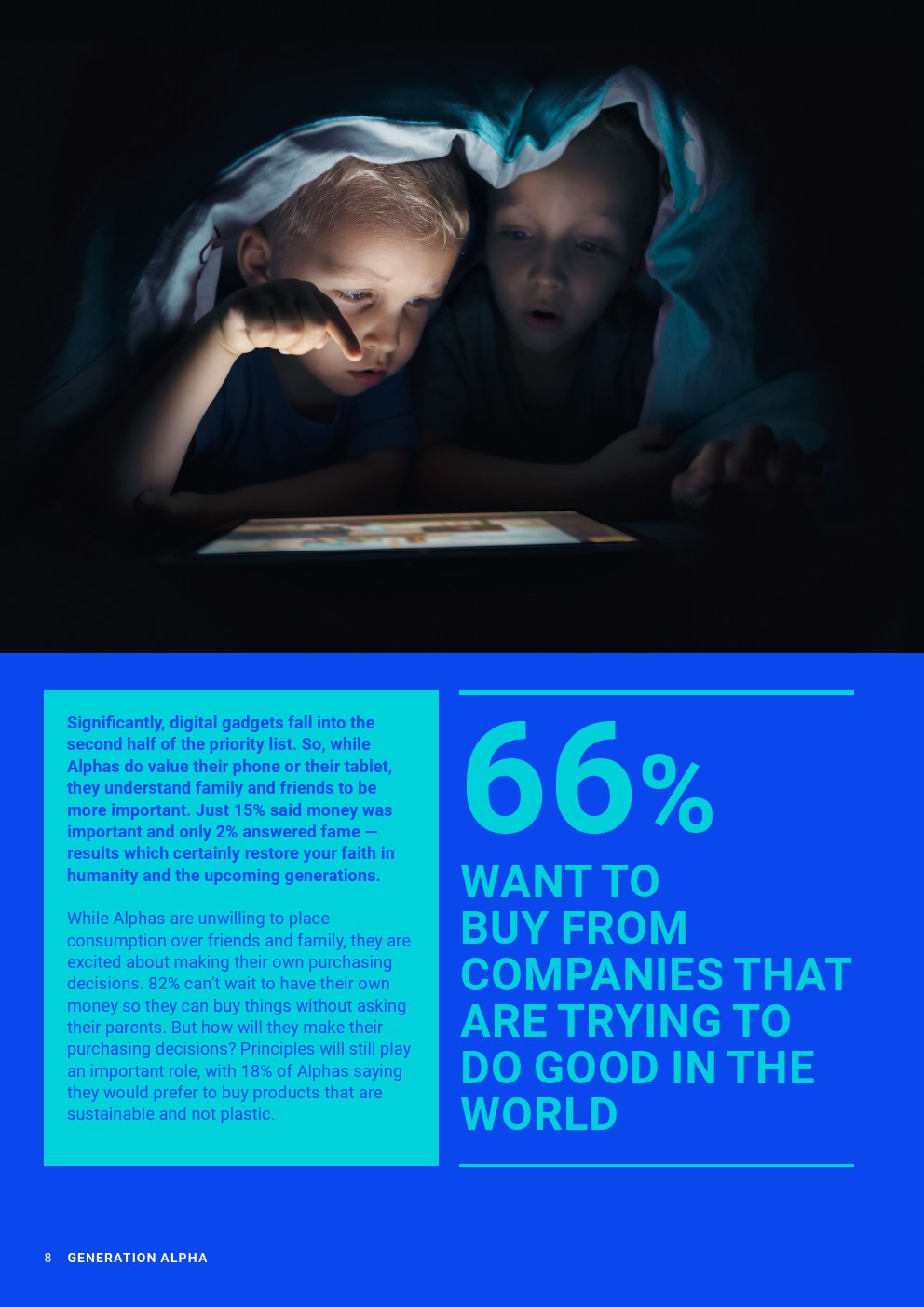 影响大多数被调查孩子(66%)的另一个因素是企业对世界的贡献。