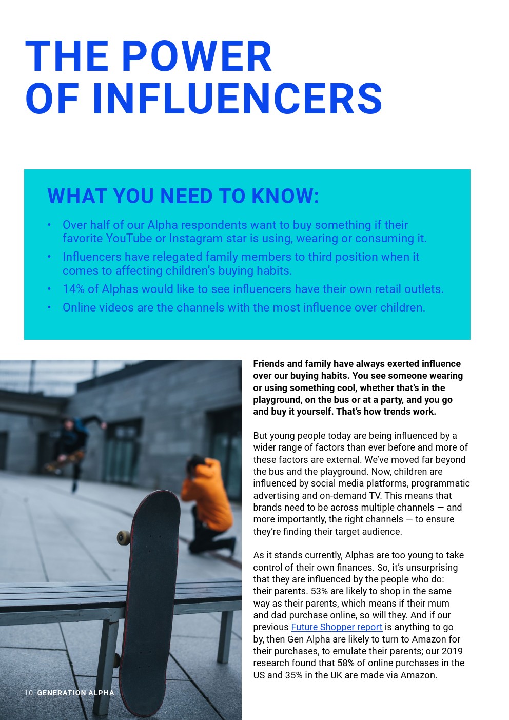 近几年,随着数字渠道发挥的作用越来越大,向孩子们投放广告的金额一直在稳步上升,这些数字渠道包括社交媒体。Wunderman Thompson最近对4000多名年龄在6-16岁之间的孩子进行的一项研究发现,意见领袖正在孩子中留下自己的印记。