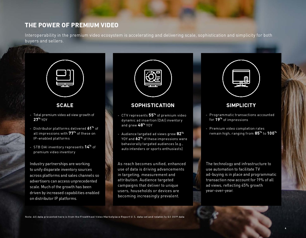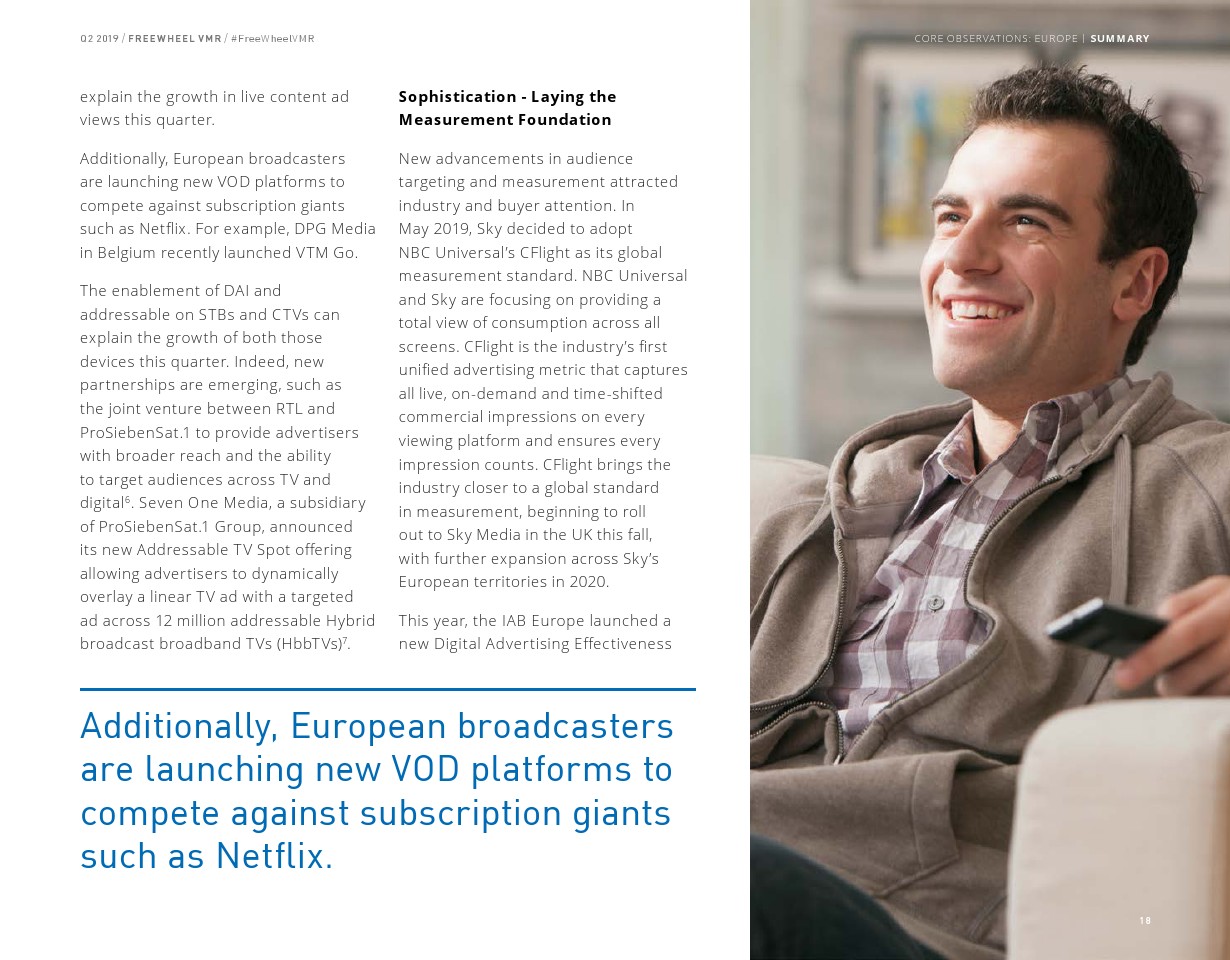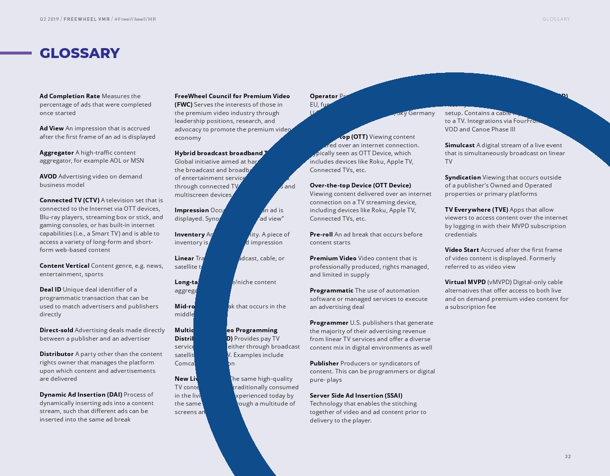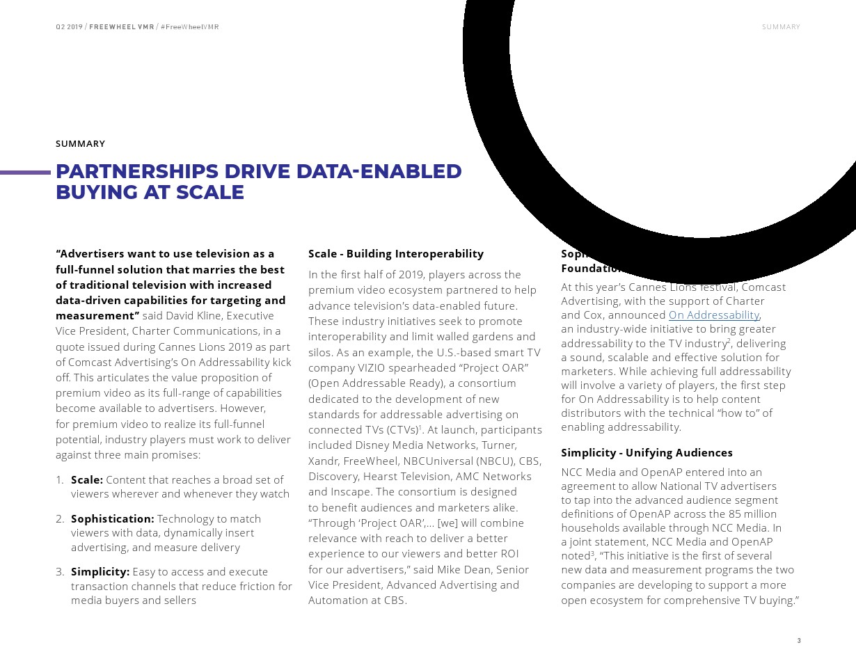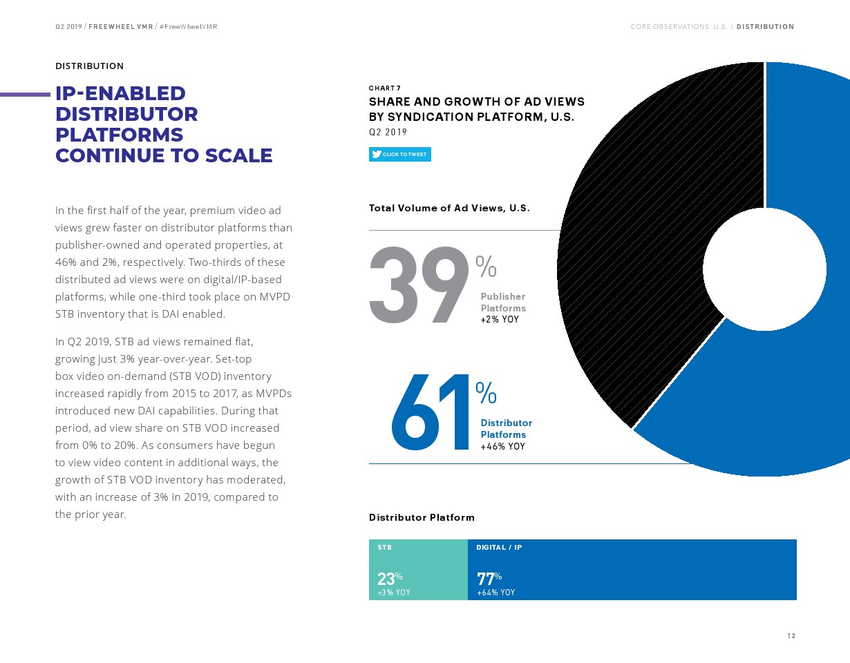 FreeWheel将受众定向广告定义为“使用唯一标识符向特定设备、家庭或用户发送的广告”,其占2019年第二季度美国广告浏览量的7%。以受众定向广告浏览量同比增长了82%,相比之下,内容定向广告浏览量同比增长了23%。