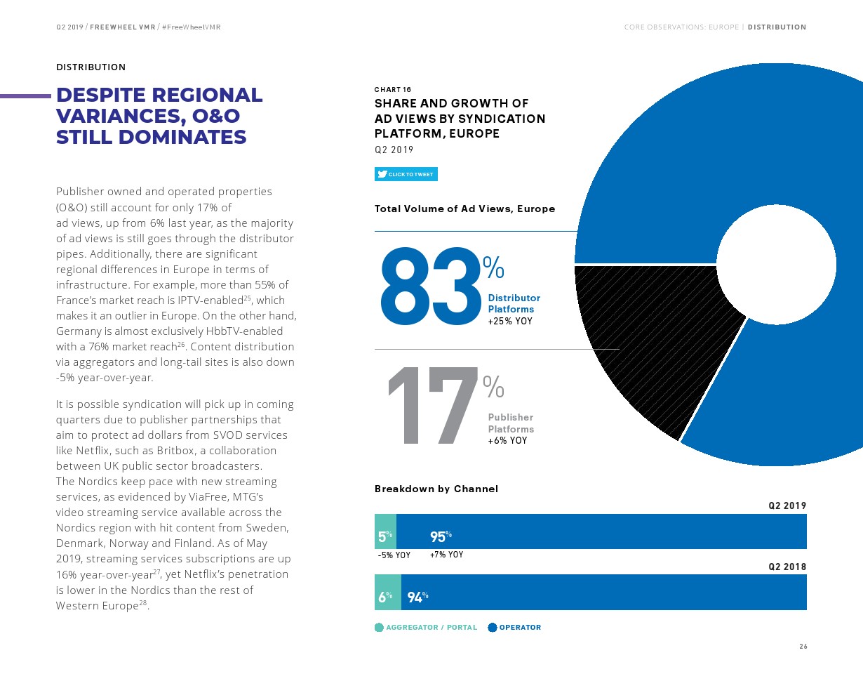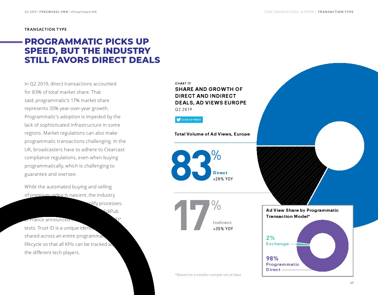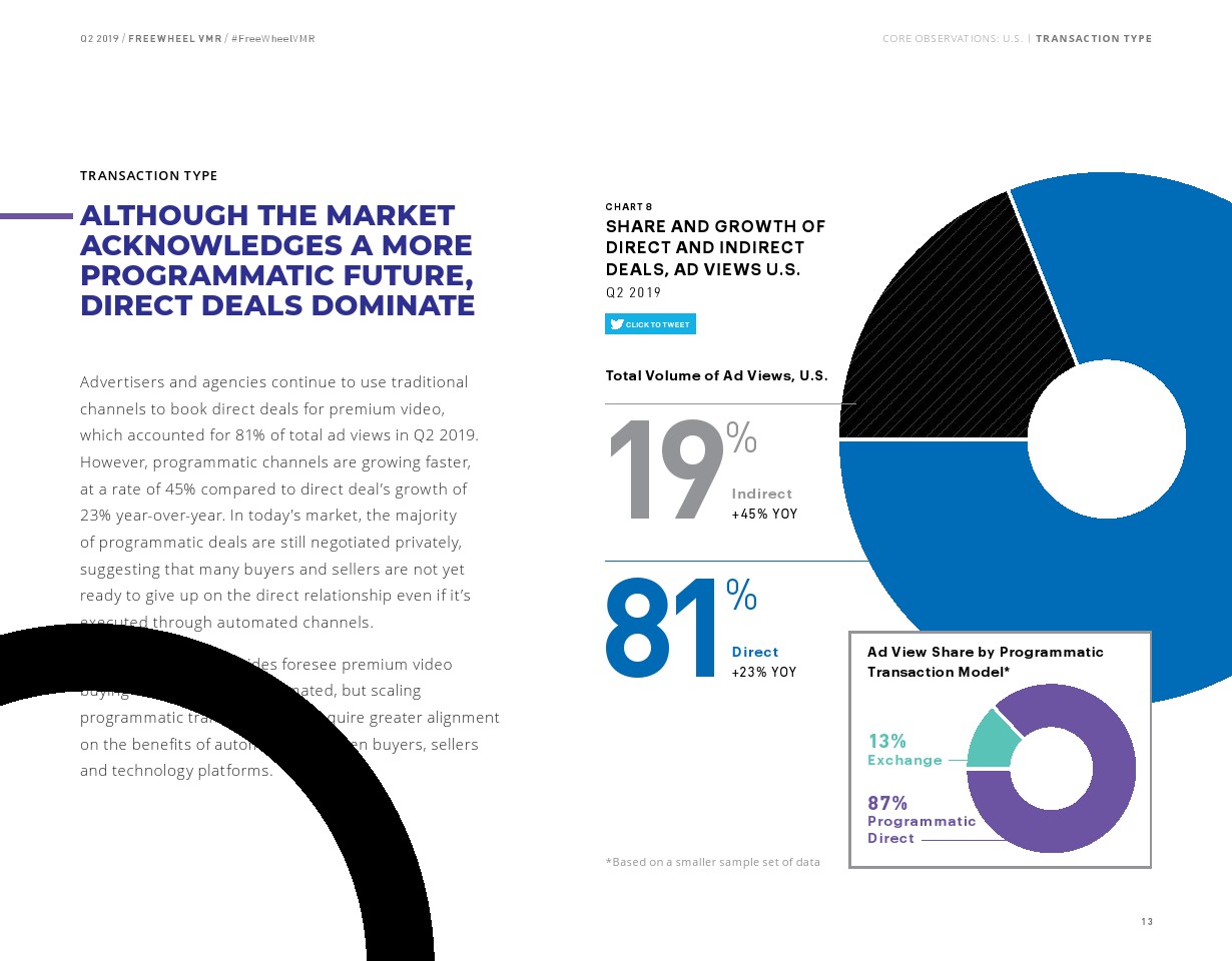 第二季度,虽然81%的优质视频广告浏览量是通过直接交易实现的,但通过节目渠道提供的视频广告浏览量增长速度是前者的两倍(45% vs 23%)。