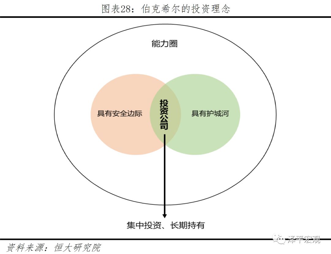 具体到标的选择,巴菲特首提并践行“护城河”理念。他将公司比作城堡,城堡的四周要有足够深的护城河,而且护城河中最好还有一群凶猛的鳄鱼或者食人鱼,让竞争者无法走进,形成一座坚不可摧的城堡。护城河可看作一种垄断资源,避免过度的市场竞争,赋予企业定价权,增厚利润。