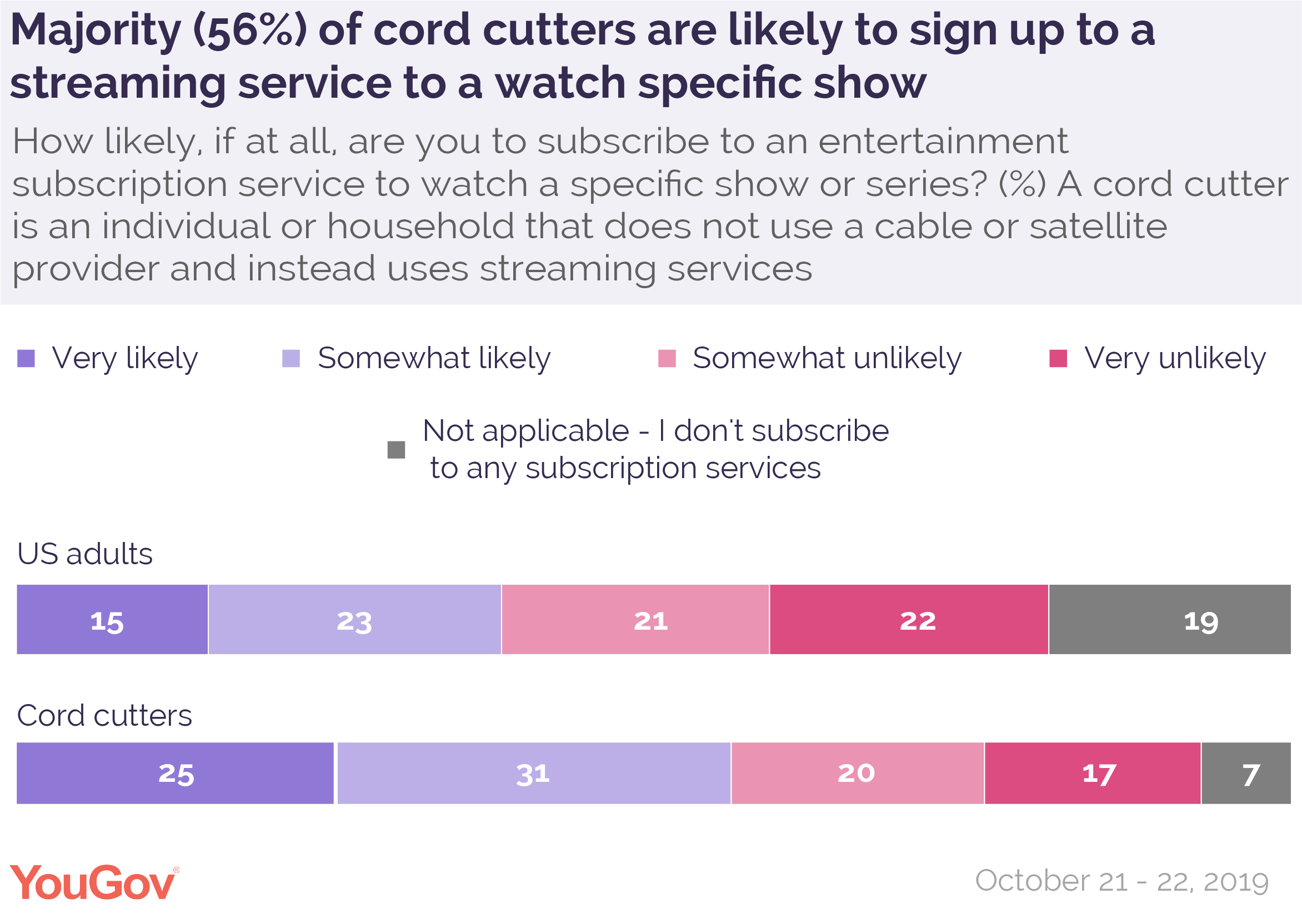根据YouGov的最新数据,超过一半的美国人(56%)已经订阅了1-3个流媒体服务。大约1/4的美国人(26%)准备添加新的订阅。