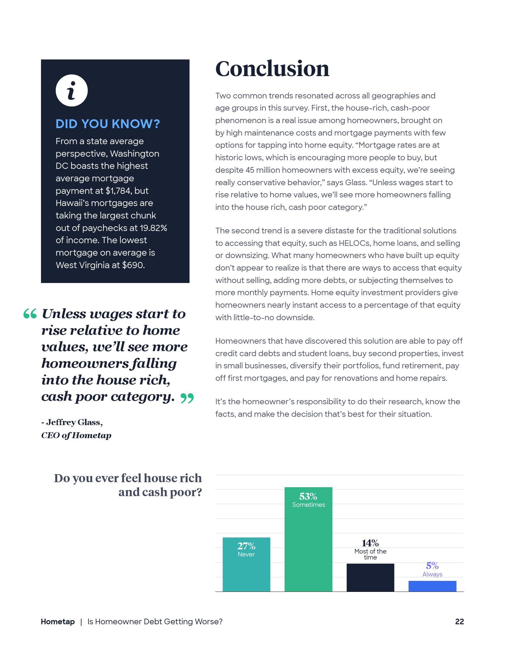 Hometap调查了675位房主,包括241位“千禧一代”房主,以研究高住房成本对他们的生活造成了多大影响。结果显示,73%的房主称至少部分时间感觉“有房没现金”。