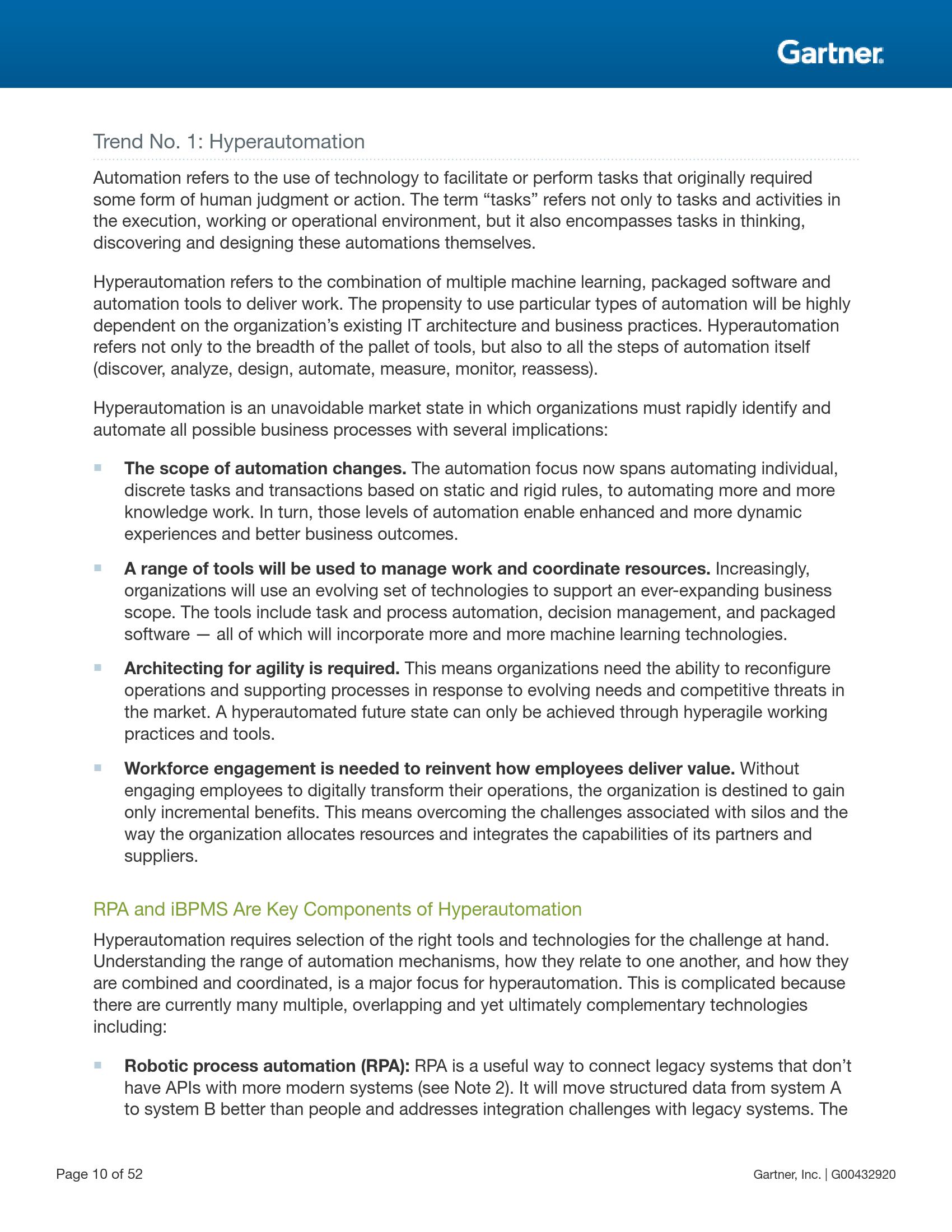 该趋势由机器人流程自动化(RPA)开始。但仅机器人流程自动化还称不上超自动化,它需要组合多种工具来帮助复制任务流程中人类所参与的部分。