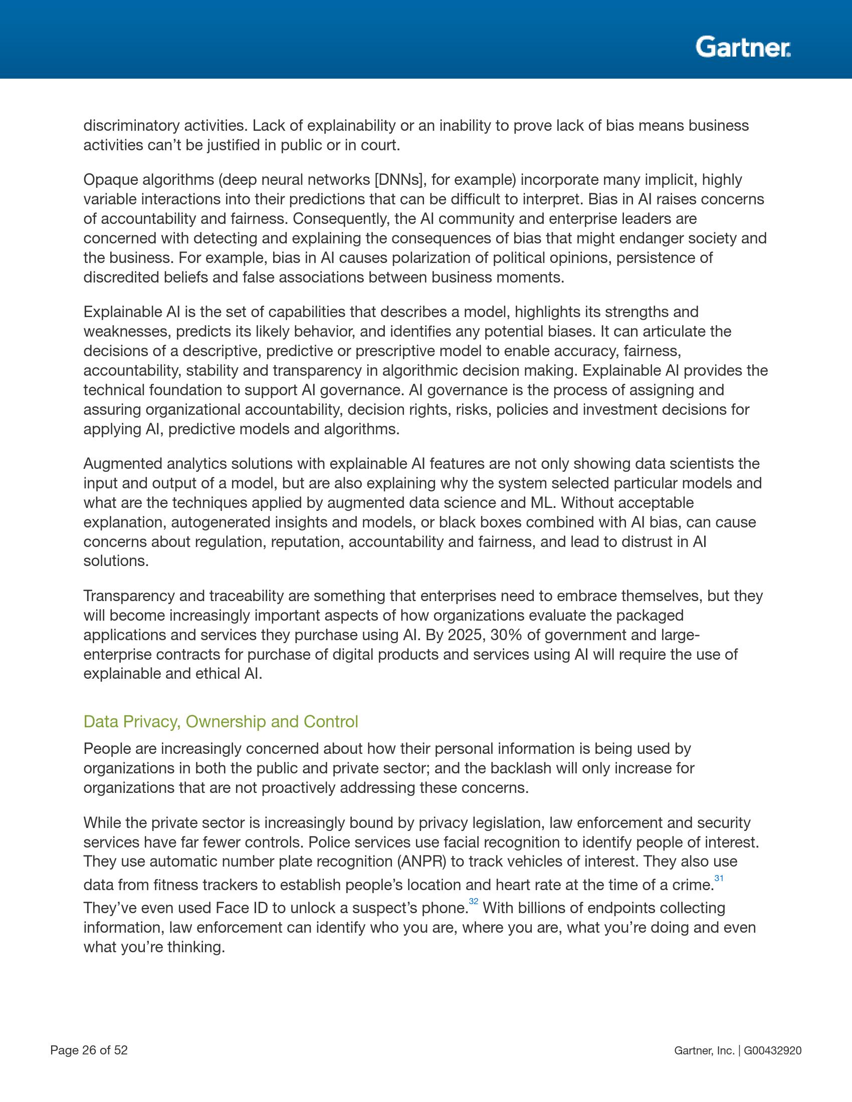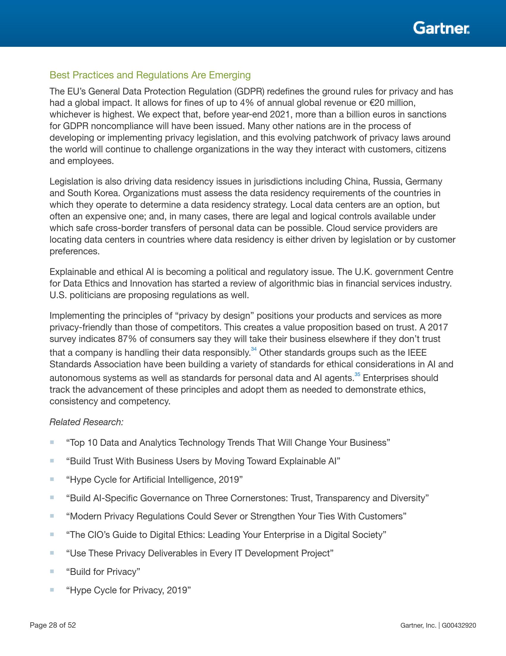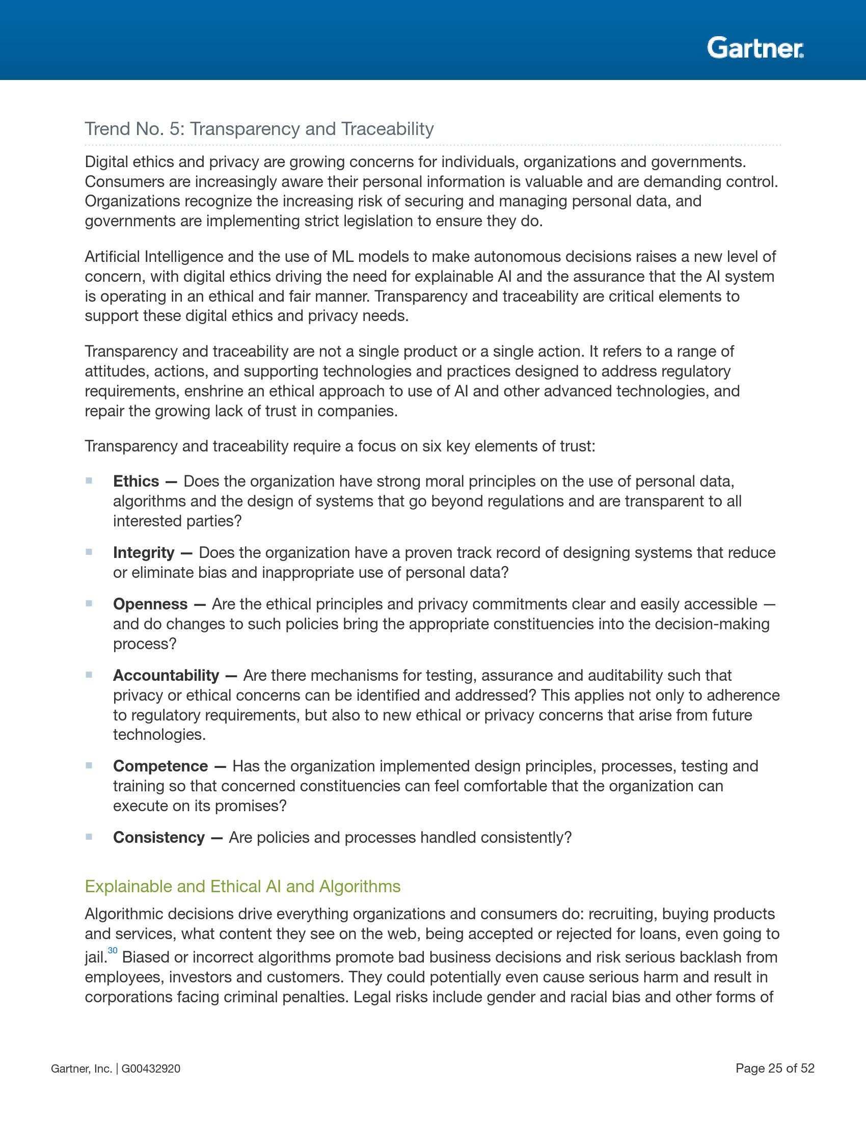 透明度与可追溯性指用于满足监管要求、维持使用人工智能和其他先进技术中所需遵守的道德规范以及恢复对企业机构信任缺失的态度、行动以及辅助技术与实际措施。企业机构在建立透明度与信誉措施时必须专注于三个领域:(1)人工智能与机器学习;(2)个人数据隐私、所有权与控制;(3)符合道德的设计。