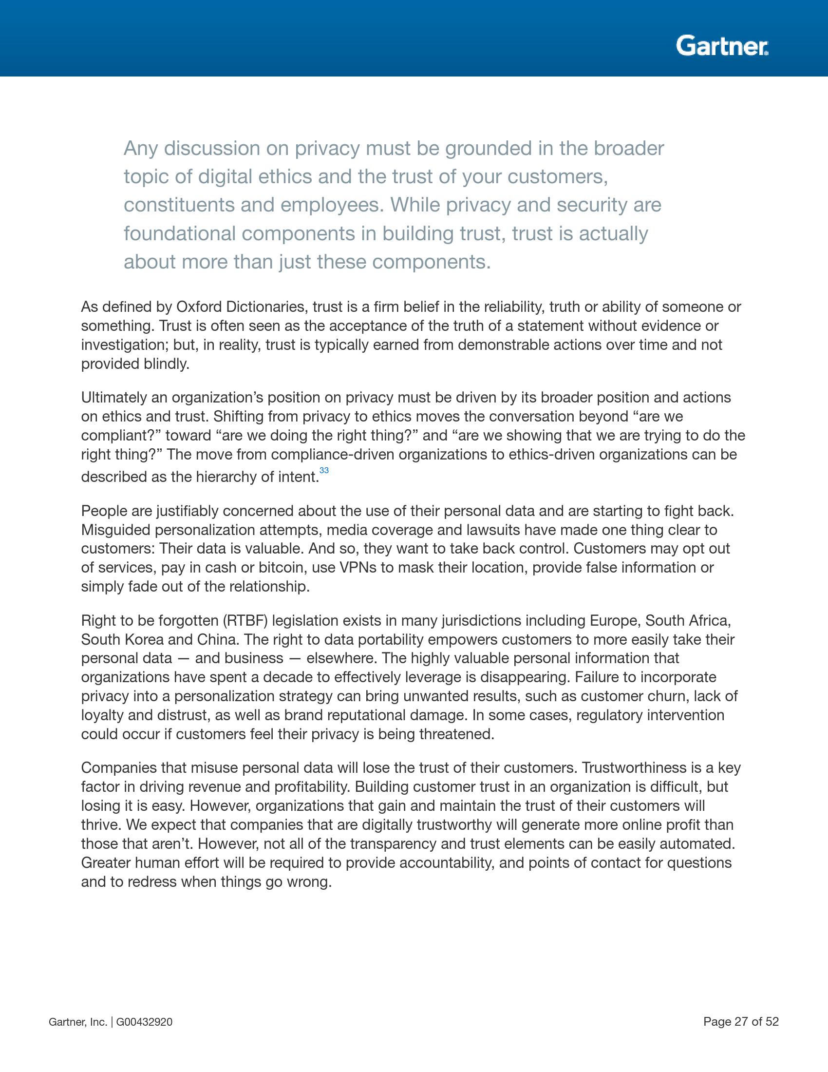 越来越多的消费者意识到其个人信息的价值并提出控制个人信息的要求。企业机构也认识到保护与管理个人数据的风险日益增加,而政府正在实施严格的法律法规确保企业机构做到这一点。透明度与可追溯性已成为支持此类数字道德与隐私需求的关键要素。