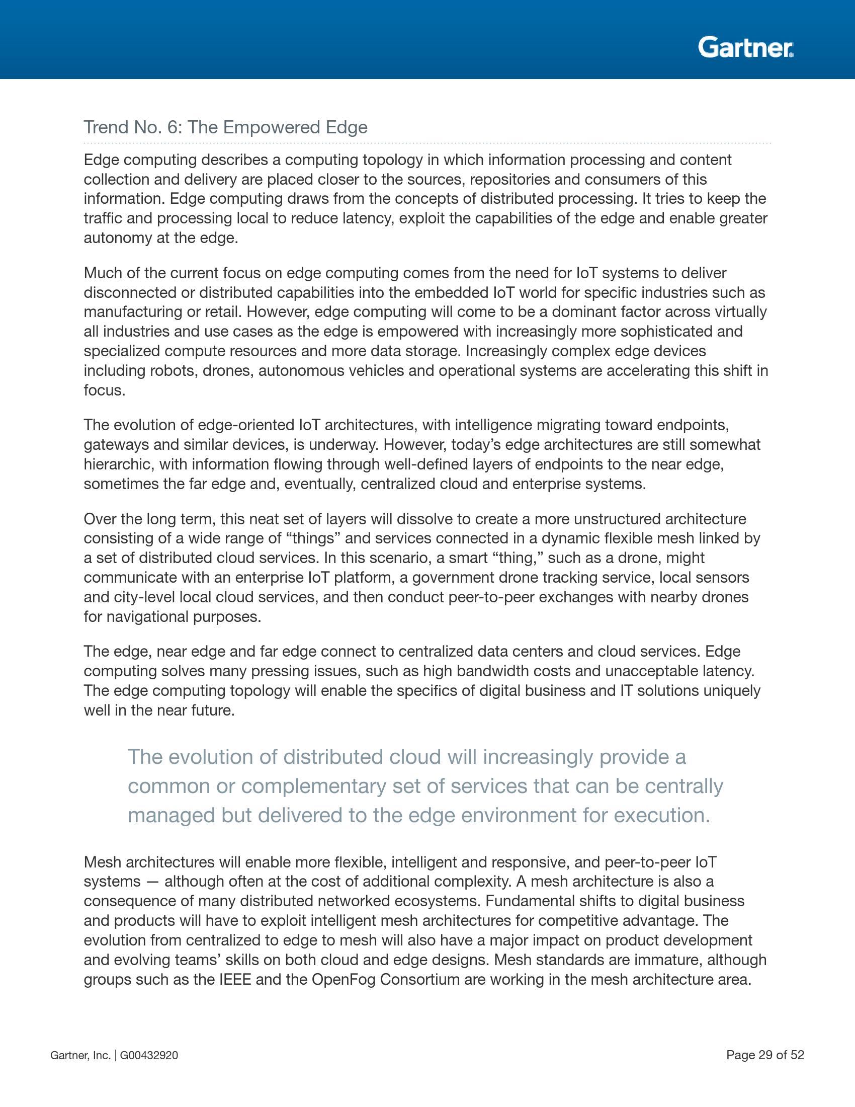 Burke先生表示:“目前,边缘计算主要关注的是在制造、零售等特定行业中嵌入式物联网系统提供的离线或分布式能力。但随着边缘被赋予越来越成熟和专业的计算资源及越来越多的数据存储,边缘计算将成为几乎每个行业和应用的主导要素。机器人、无人机、自动驾驶汽车及可操作系统等复杂的边缘设备将加快这一转变。”
